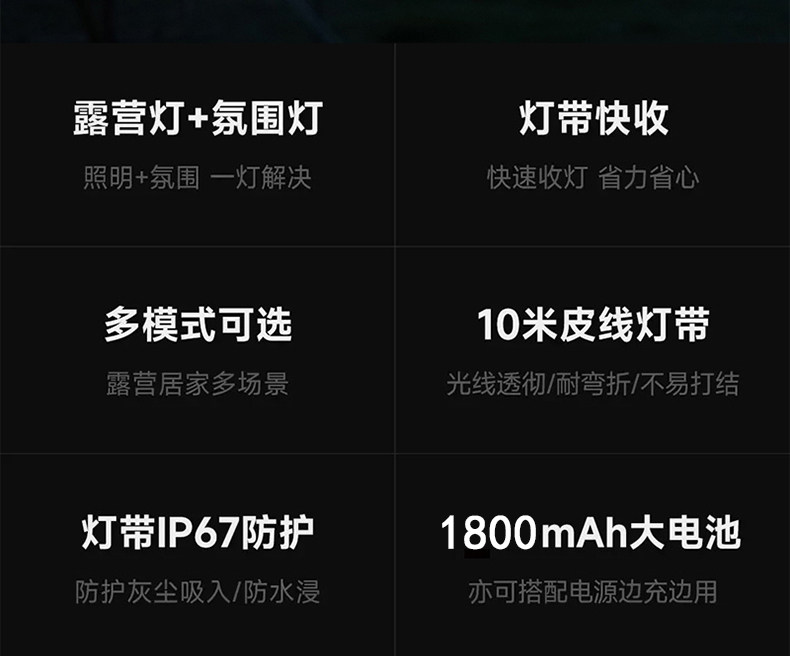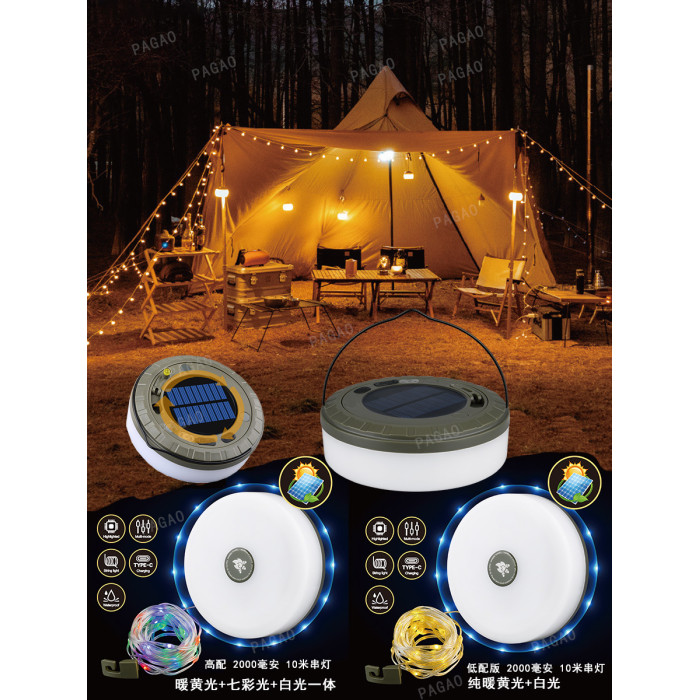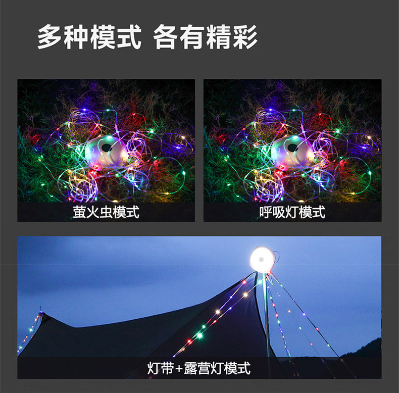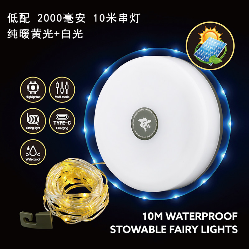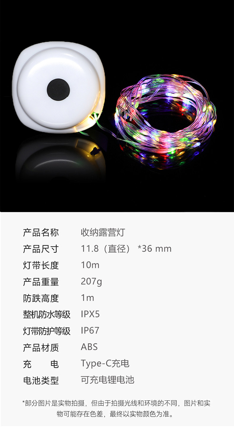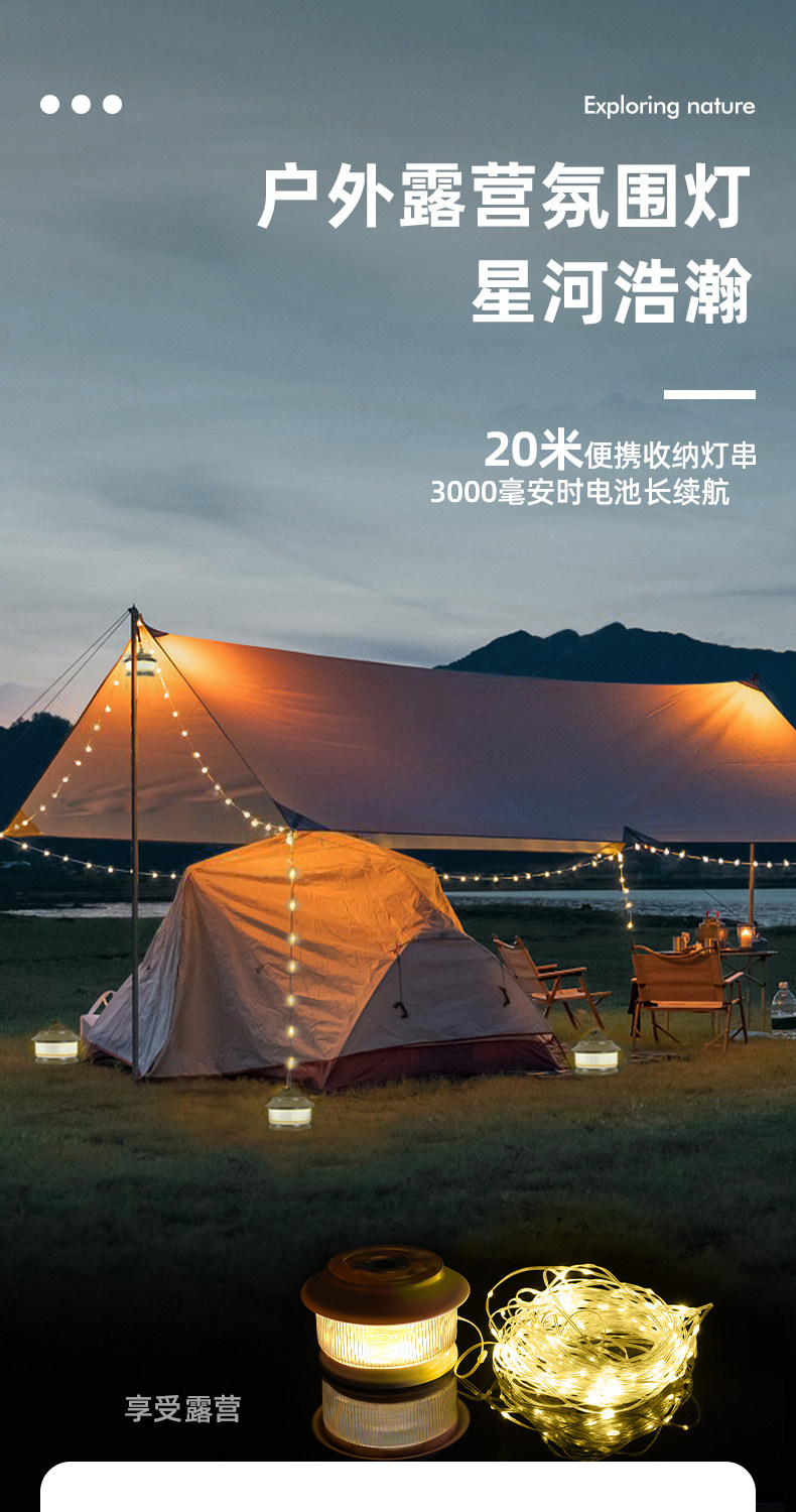 戶外太陽能USB充電天幕裝飾小串燈營地燈帶帳篷氛圍燈收納卷尺燈
