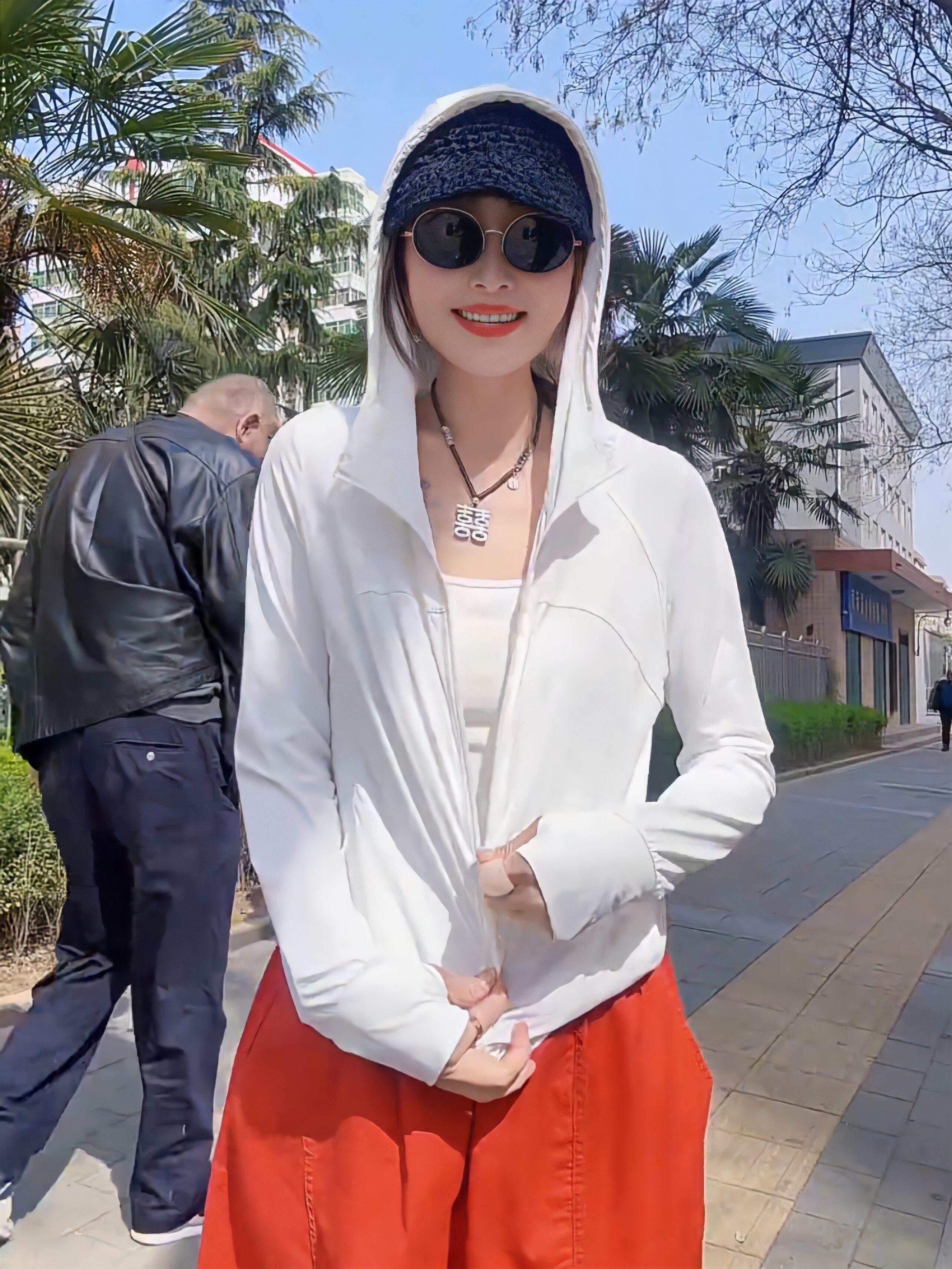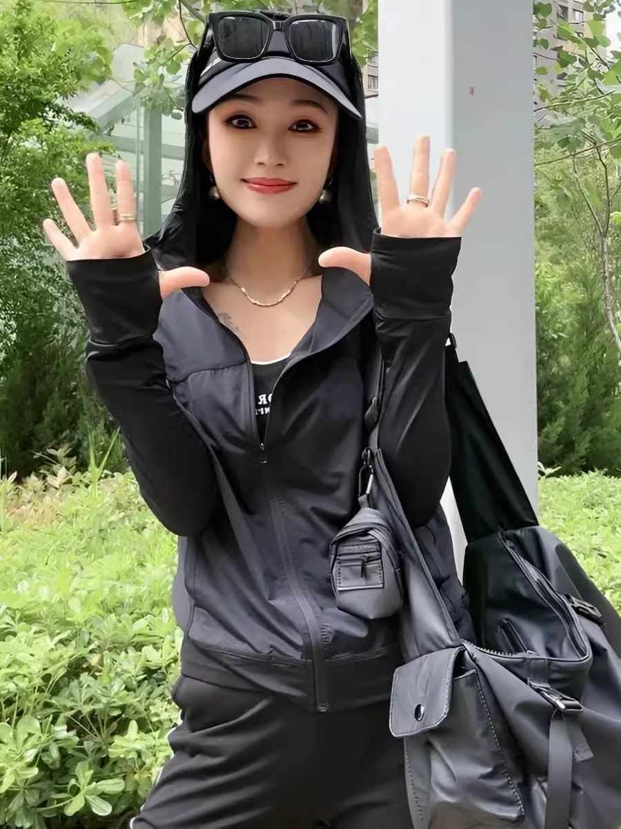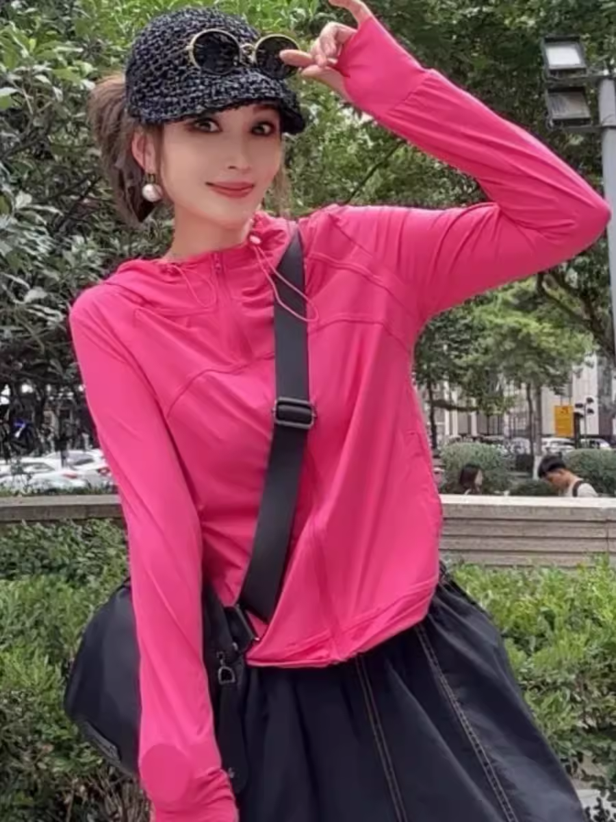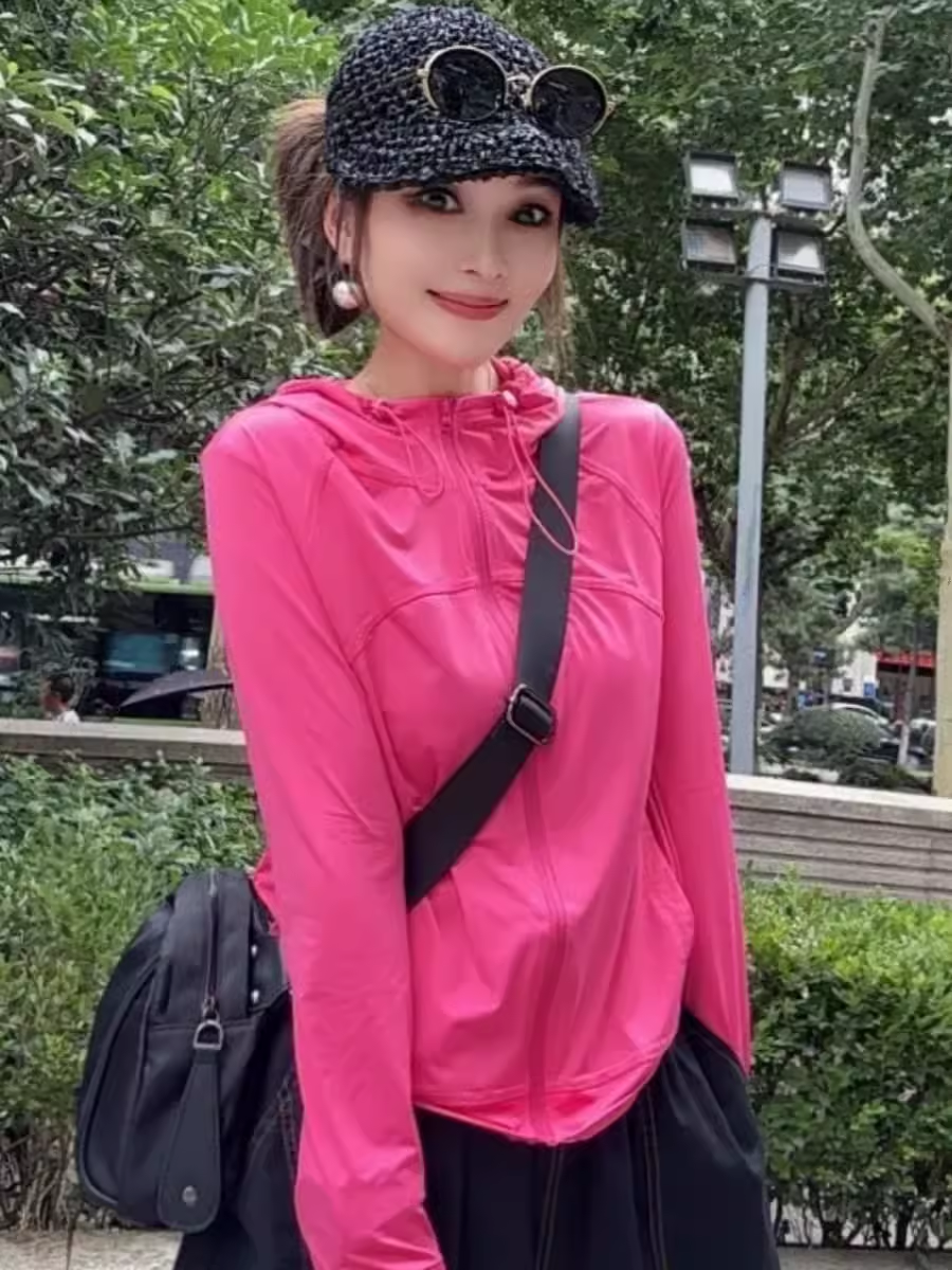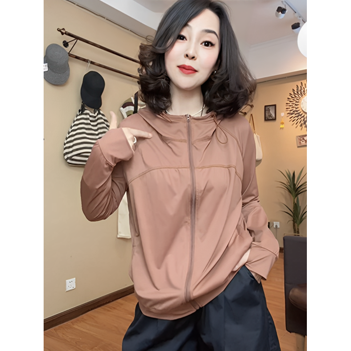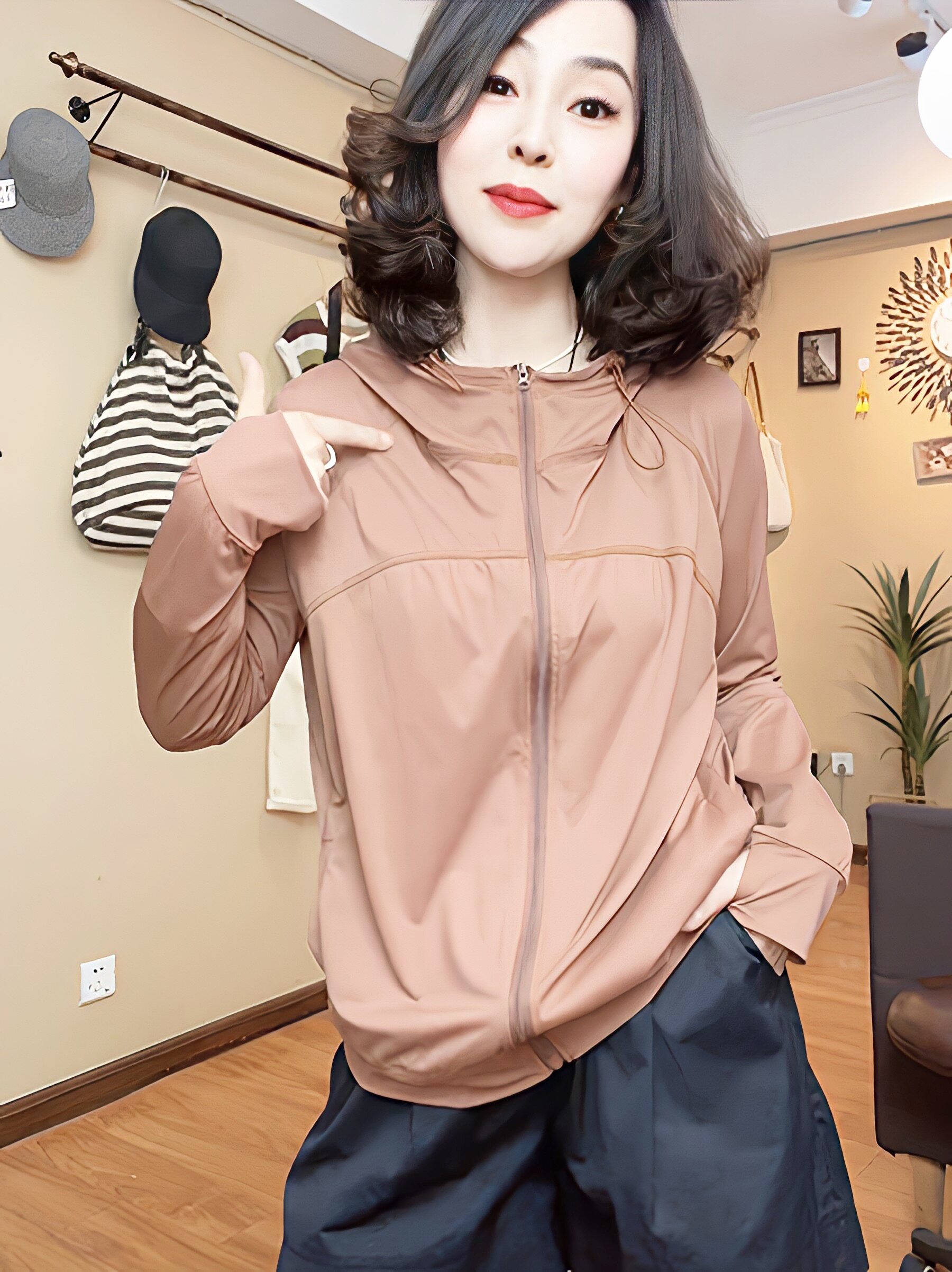 防曬衣女夏季薄款速乾冰涼感透氣外套連帽抽繩戶外旅遊防曬服上衣