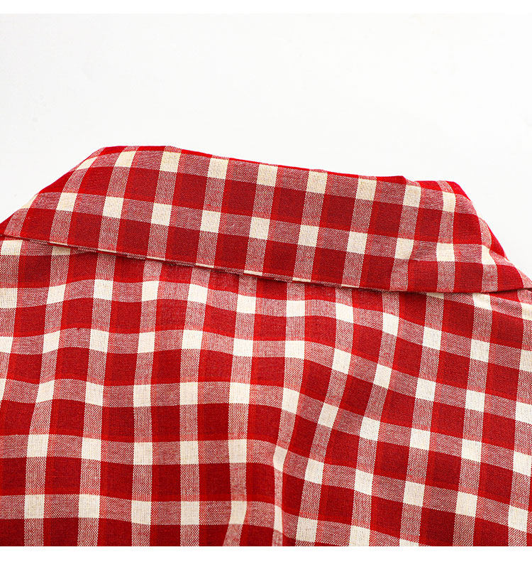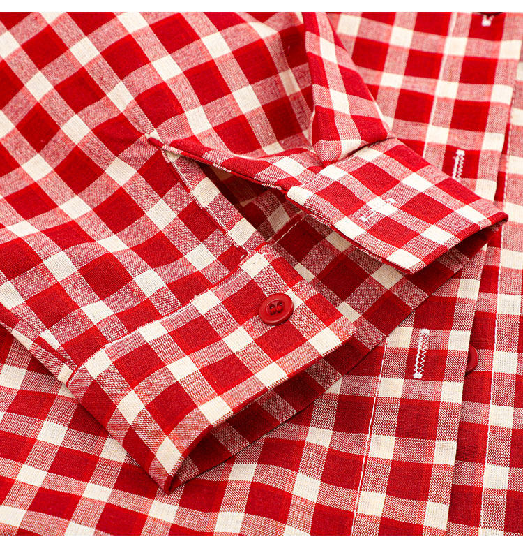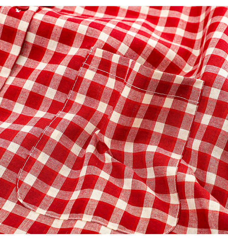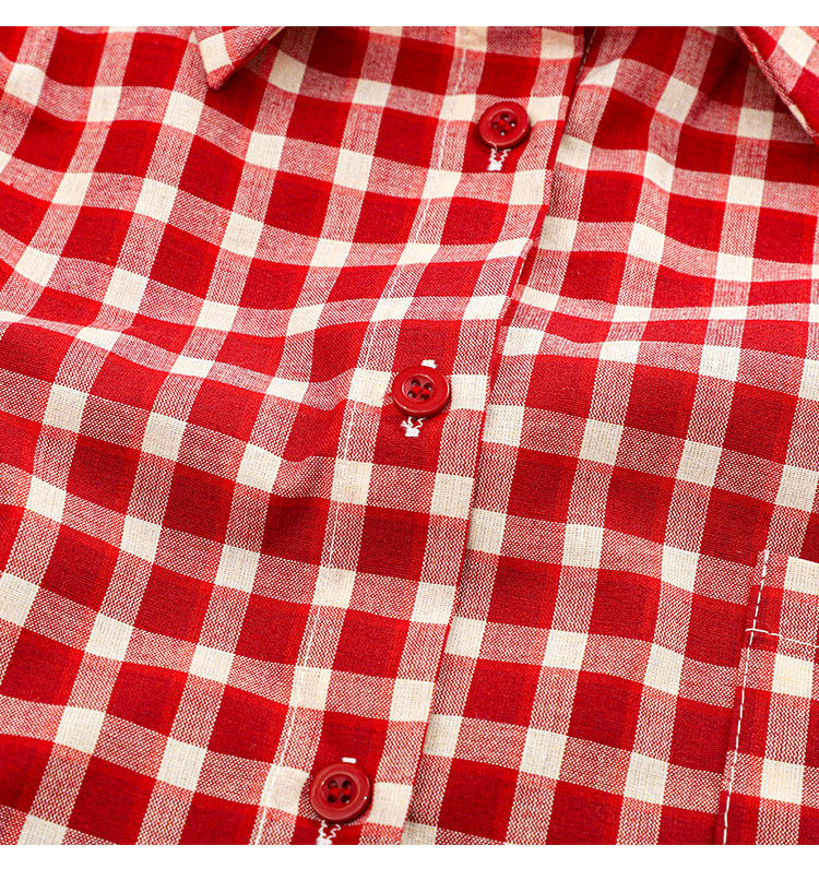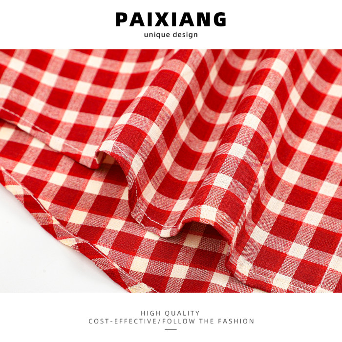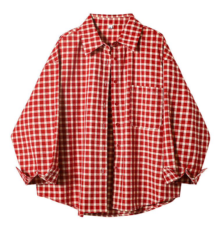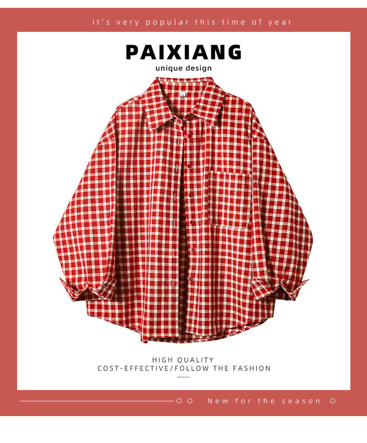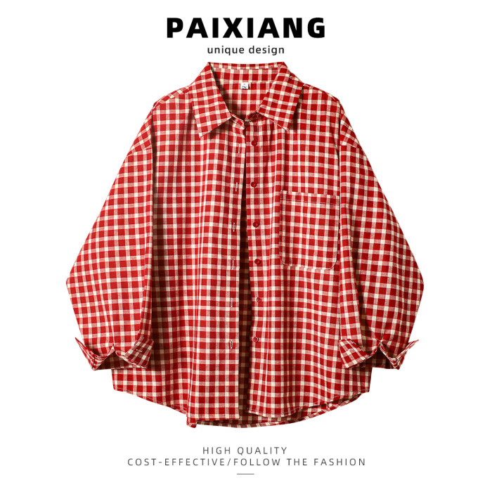 PAIXIANG/港風復古格子長袖襯衫女秋冬新款打底衫設計感寬鬆襯衣
