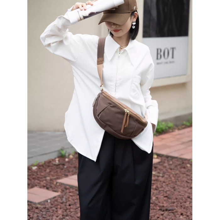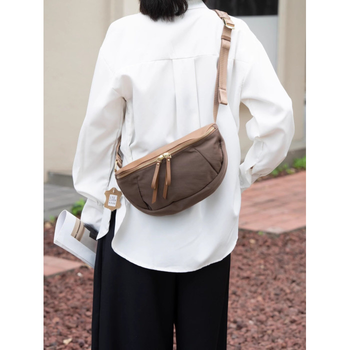 安陌夕2026年輕便休閒胸包大容量單肩斜背百搭帆布腰包餃子包6507