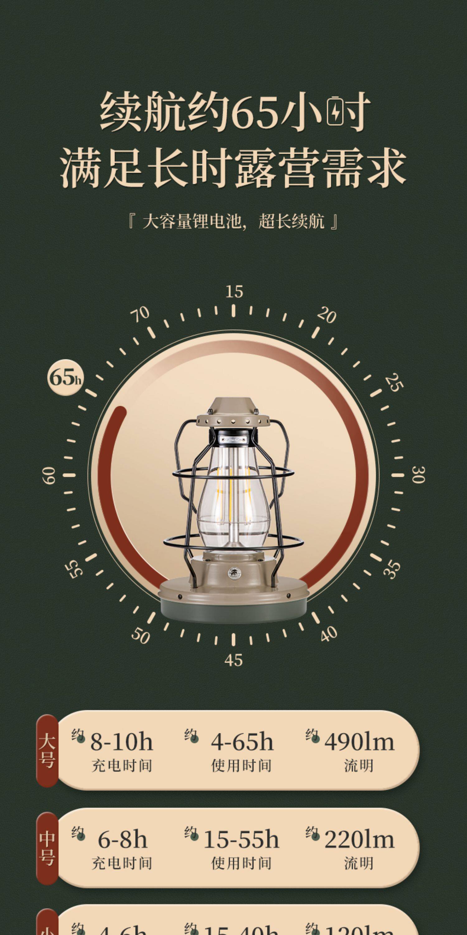 連續照明時間 約65小時