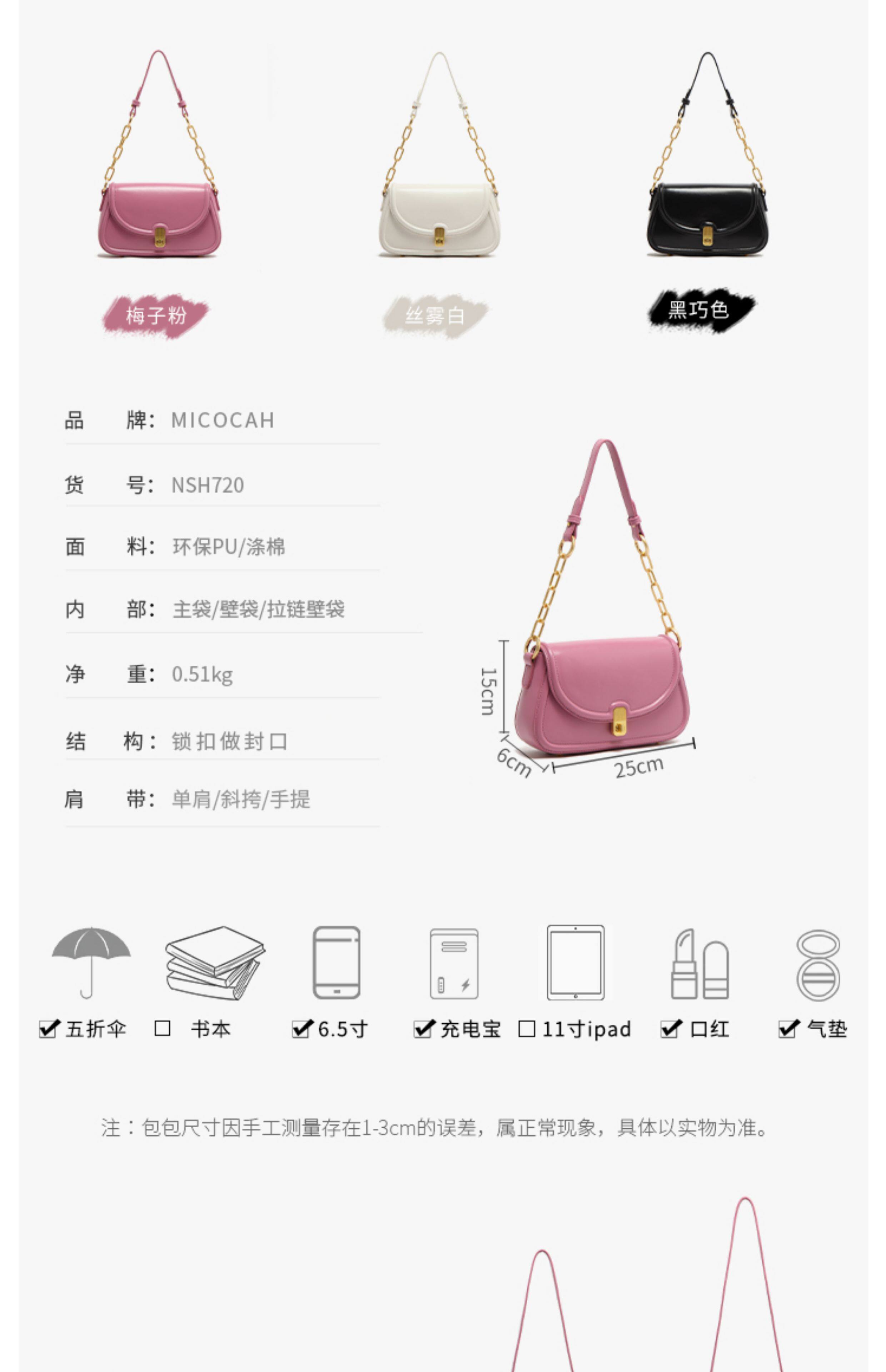 Micocah「輕甜主義」包包女2025鏈條單肩包馬鞍包百搭斜後後背包小衆