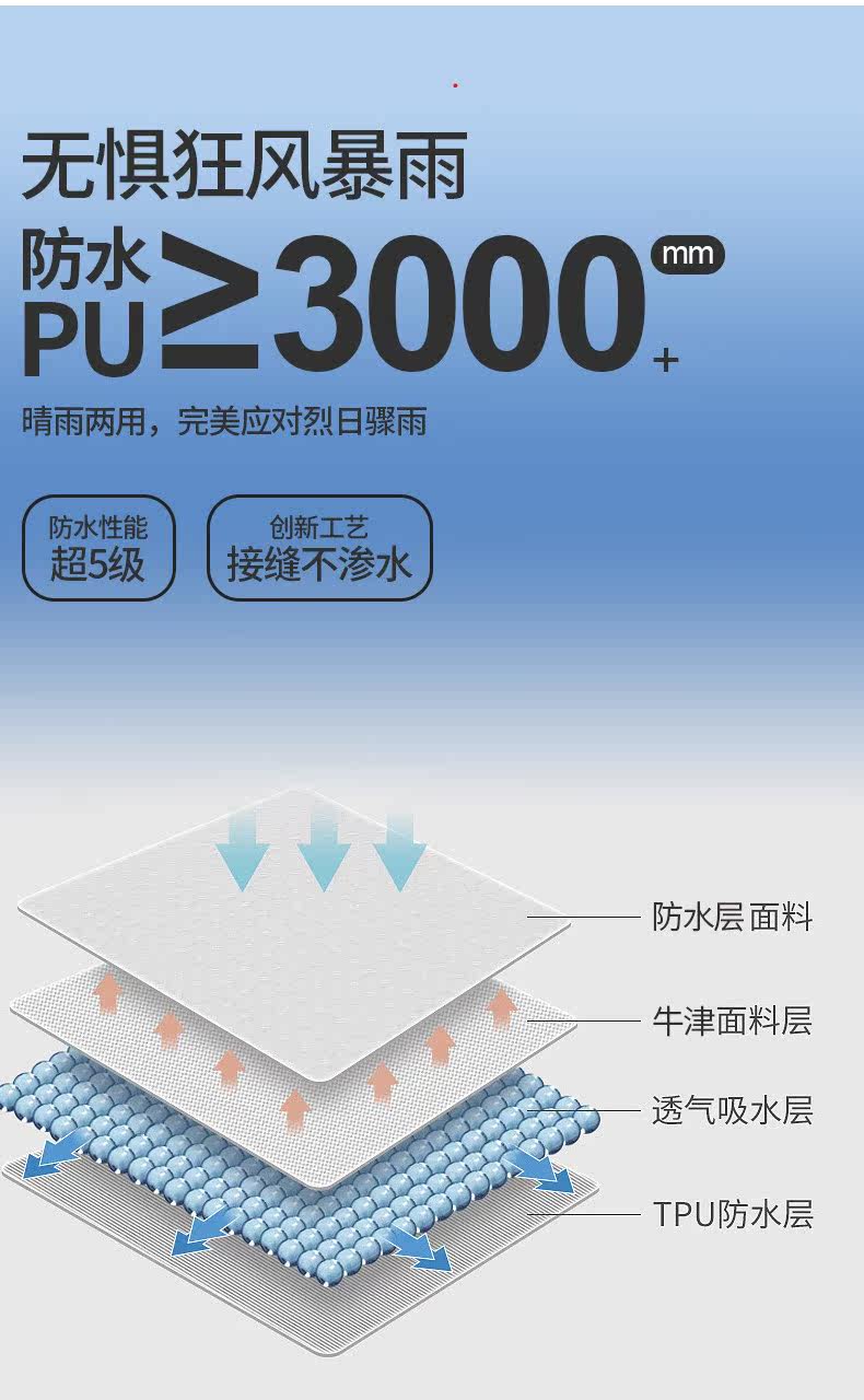 | 外帳防水指數 | 大於3000MM |
