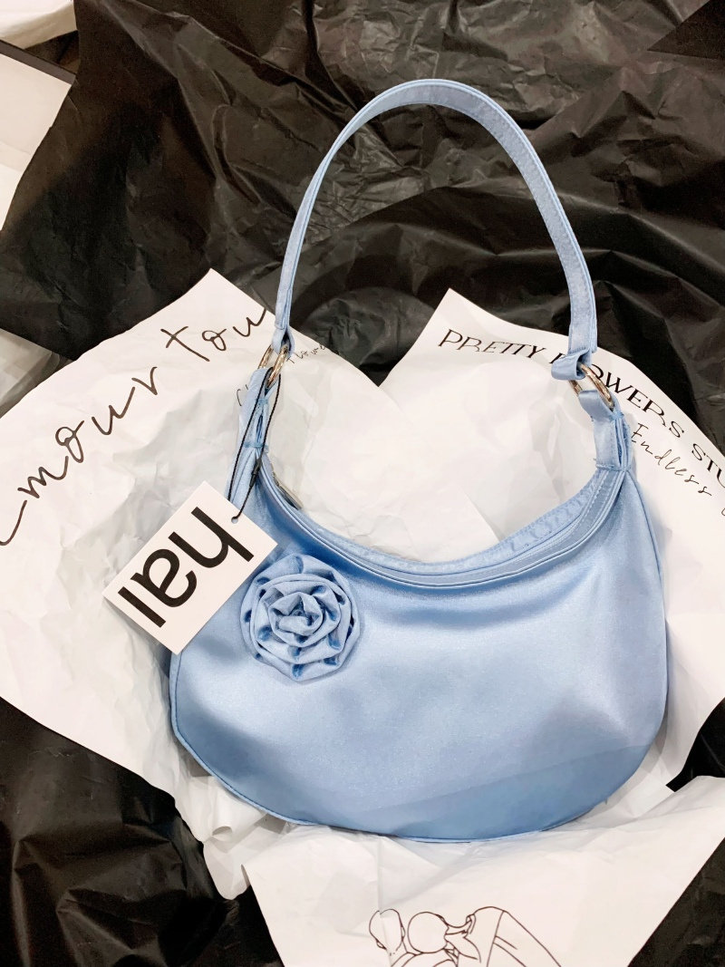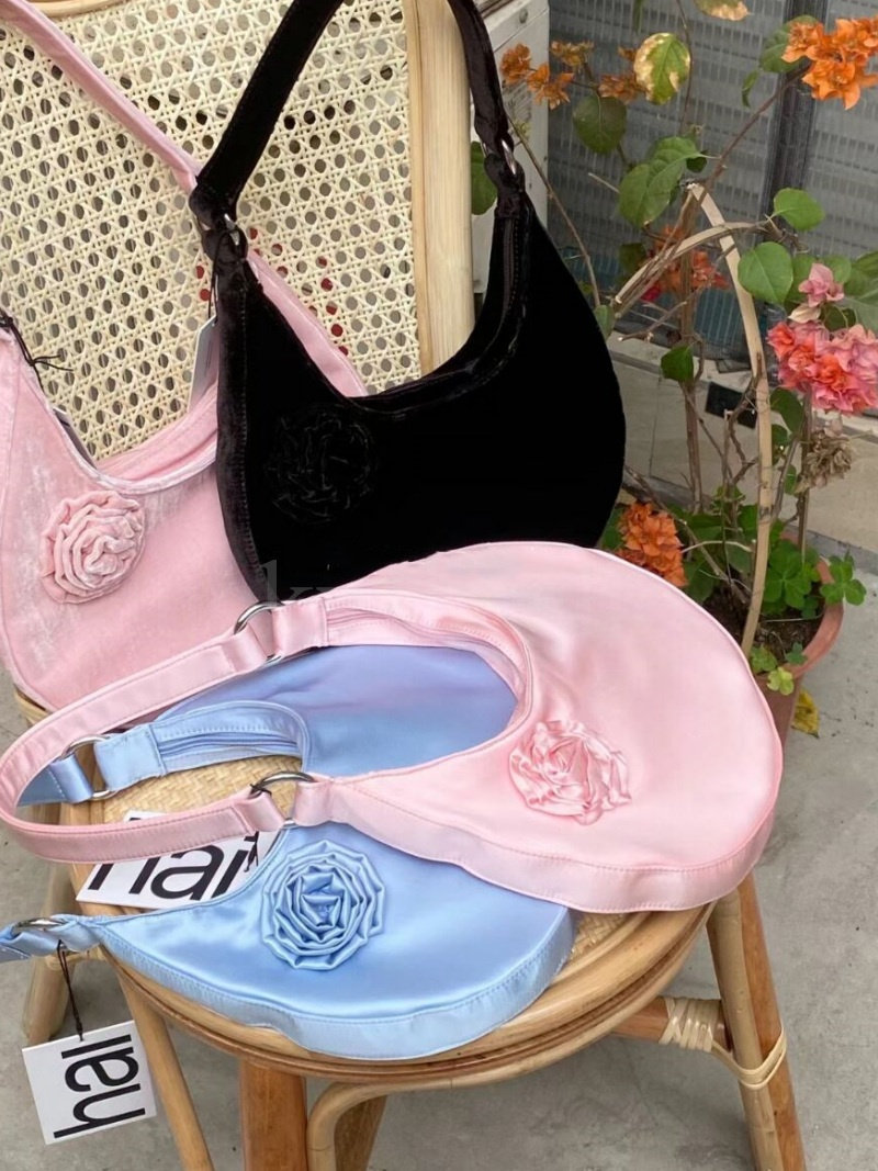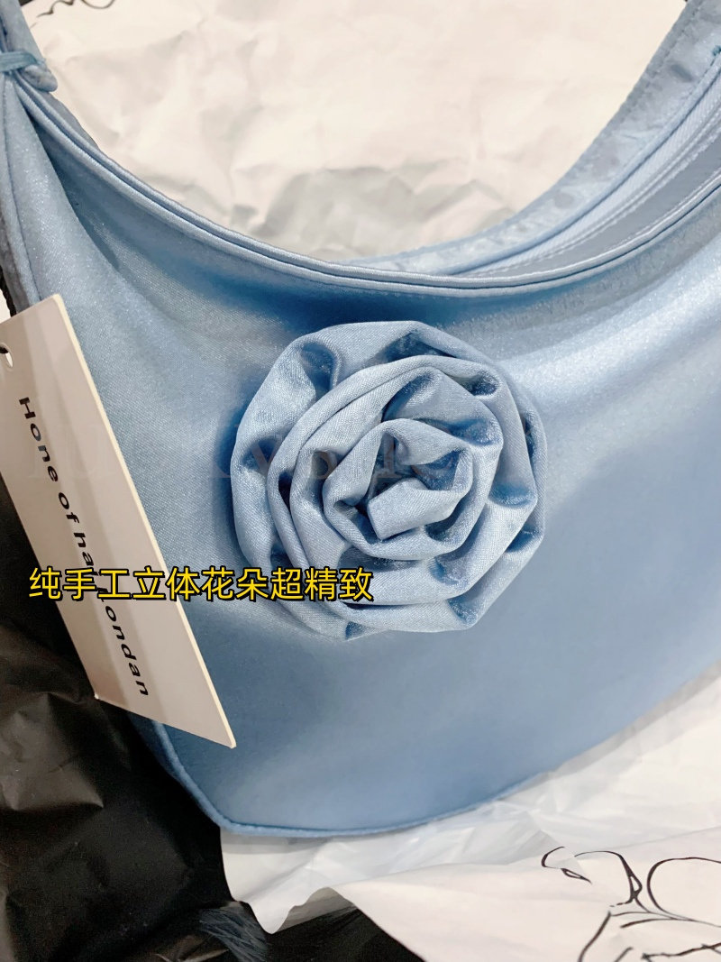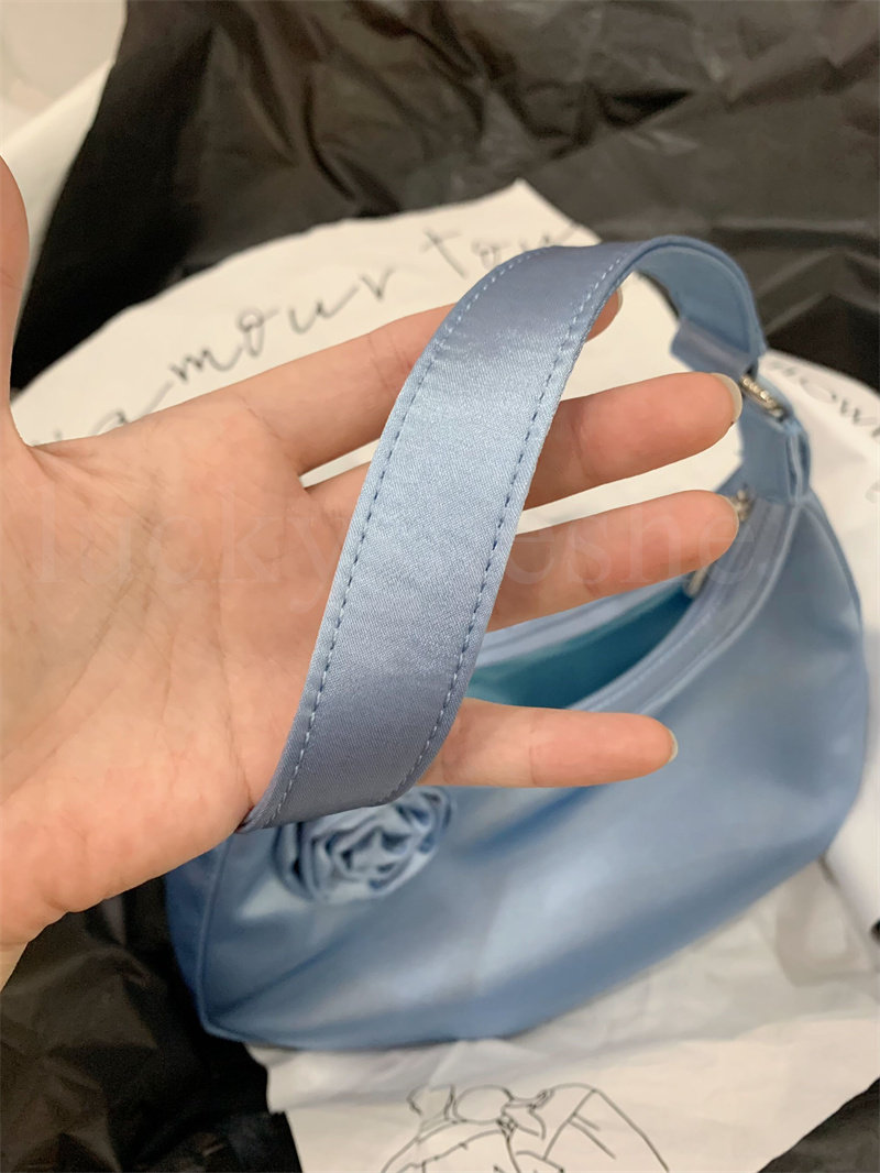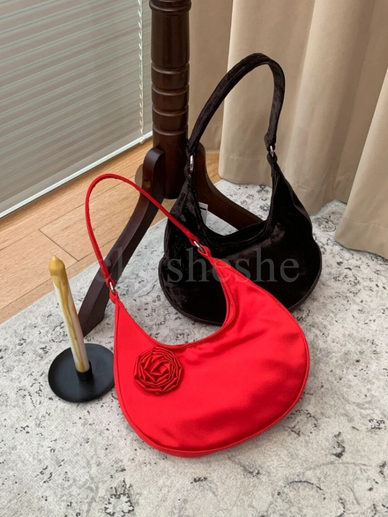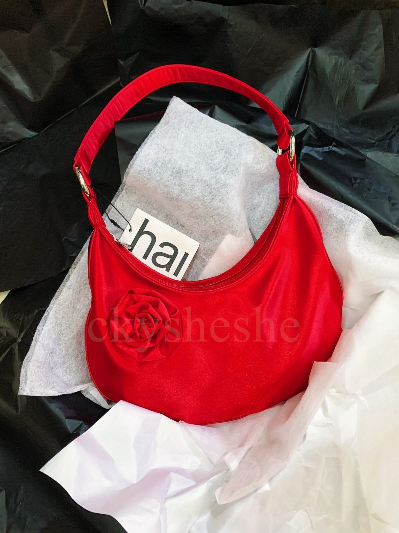 hai花朵月牙包包小衆設計淑女復古絲綢緞面玫瑰花手拎腋下單肩包