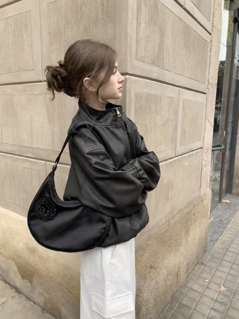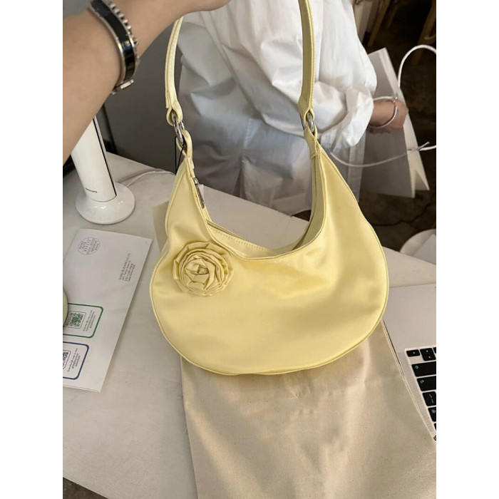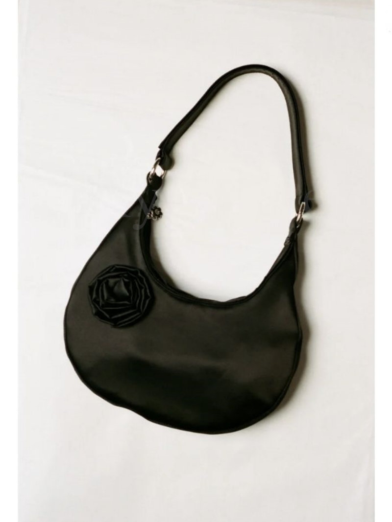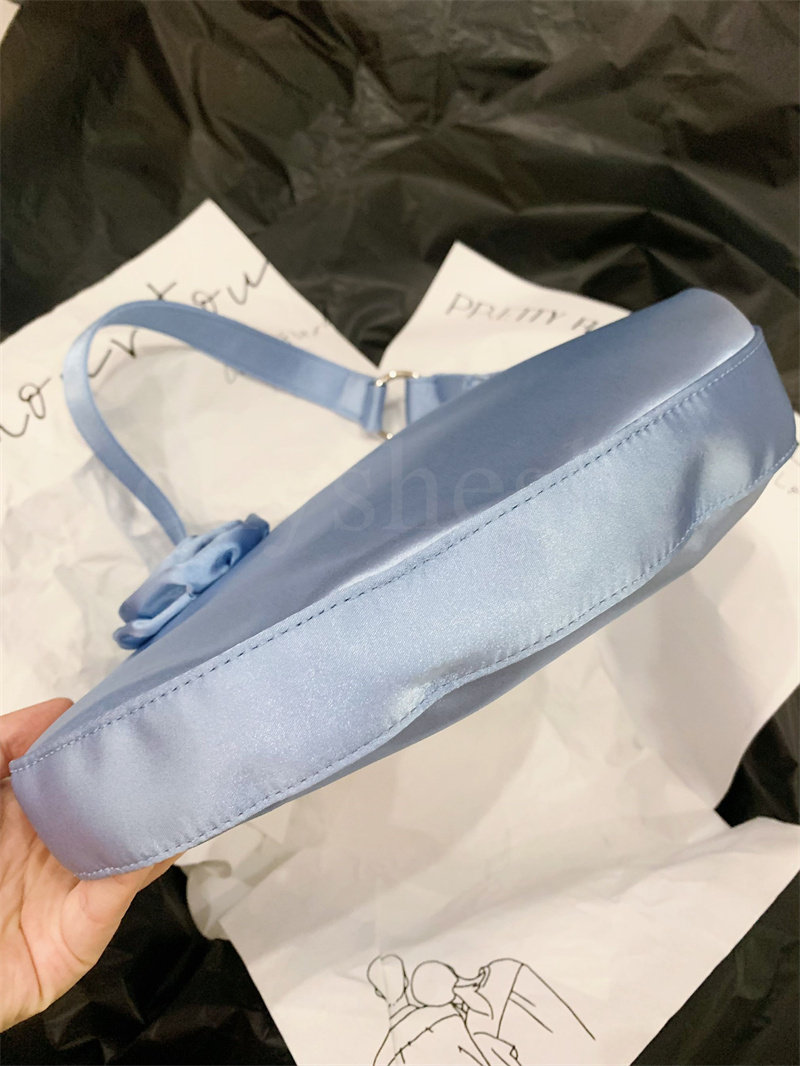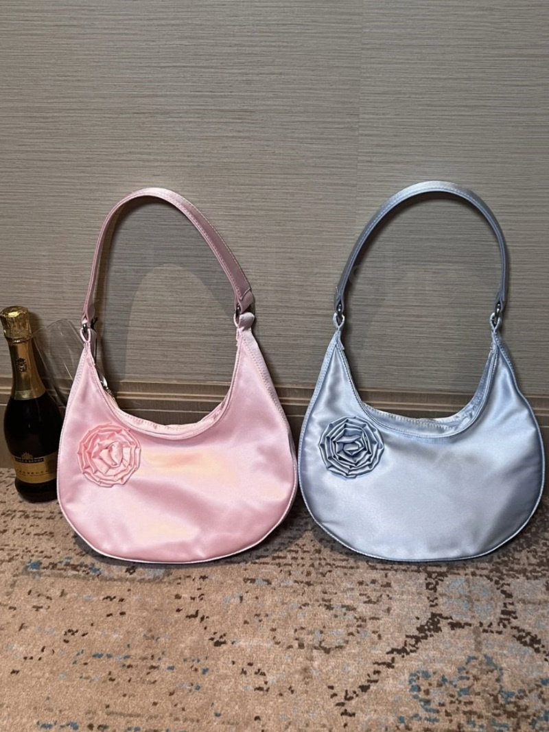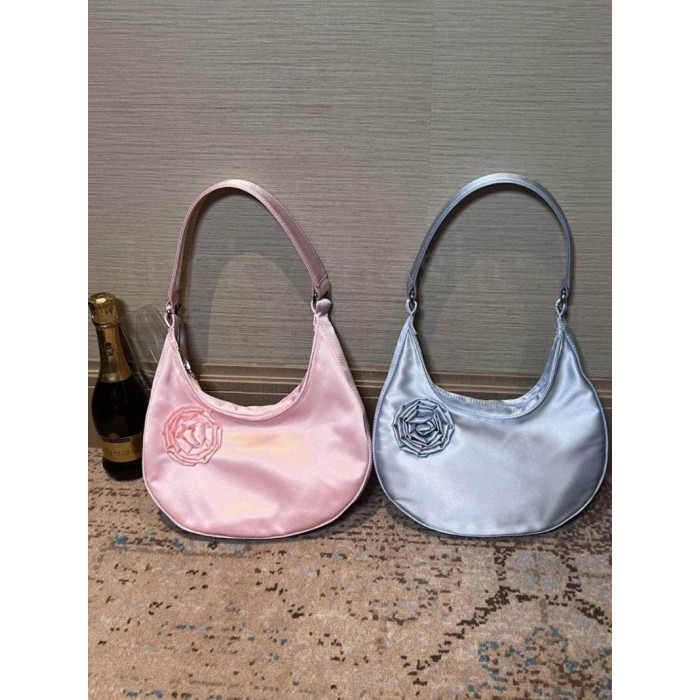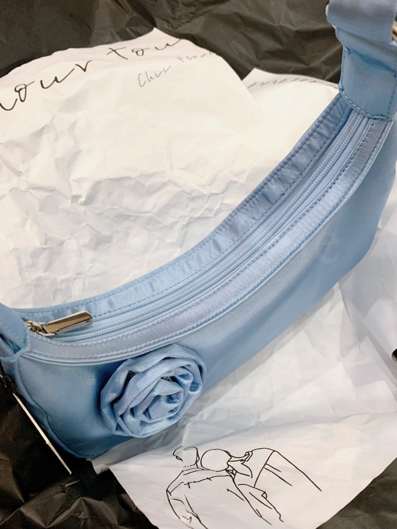hai花朵月牙包包小衆設計淑女復古絲綢緞面玫瑰花手拎腋下單肩包