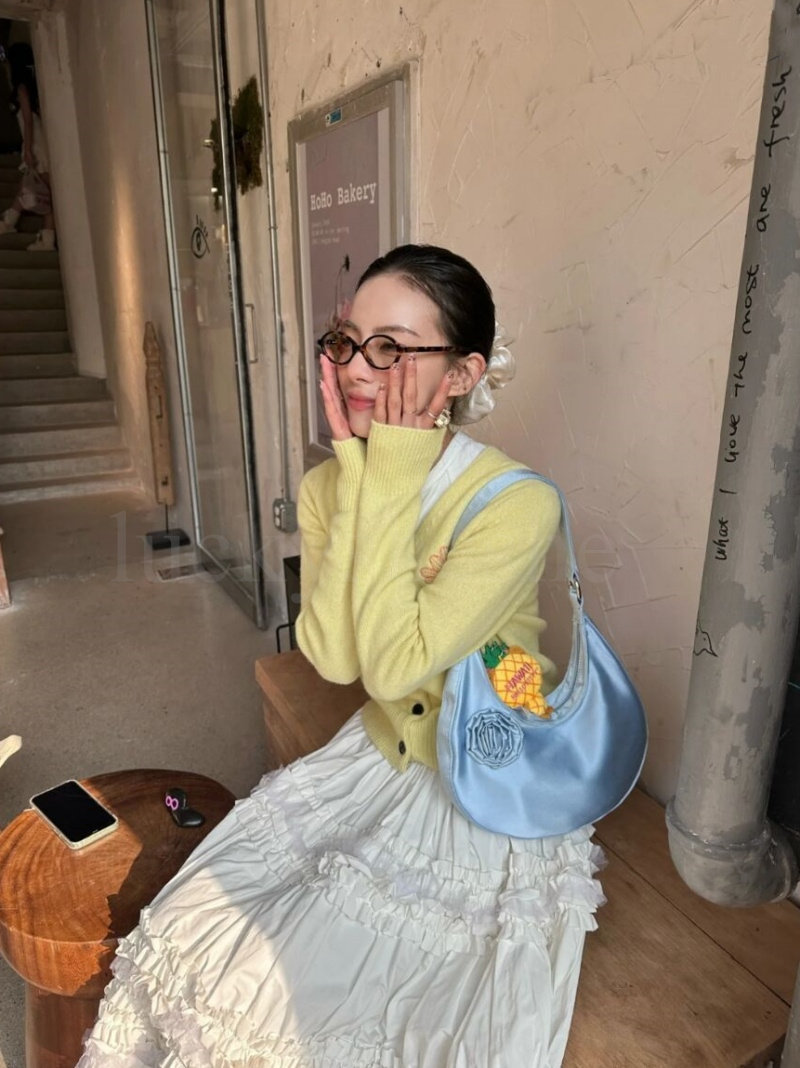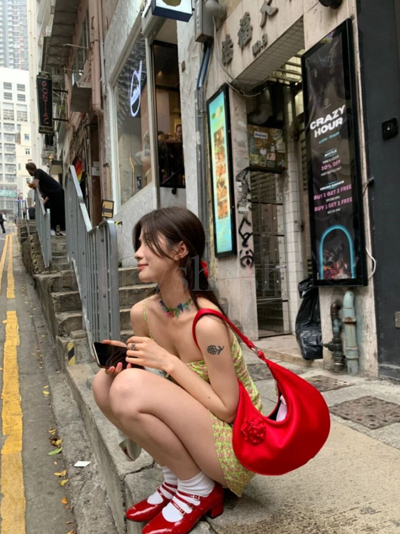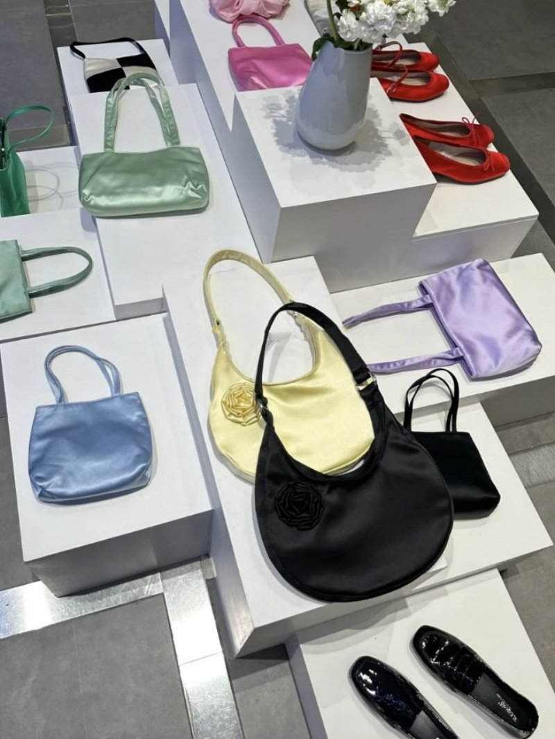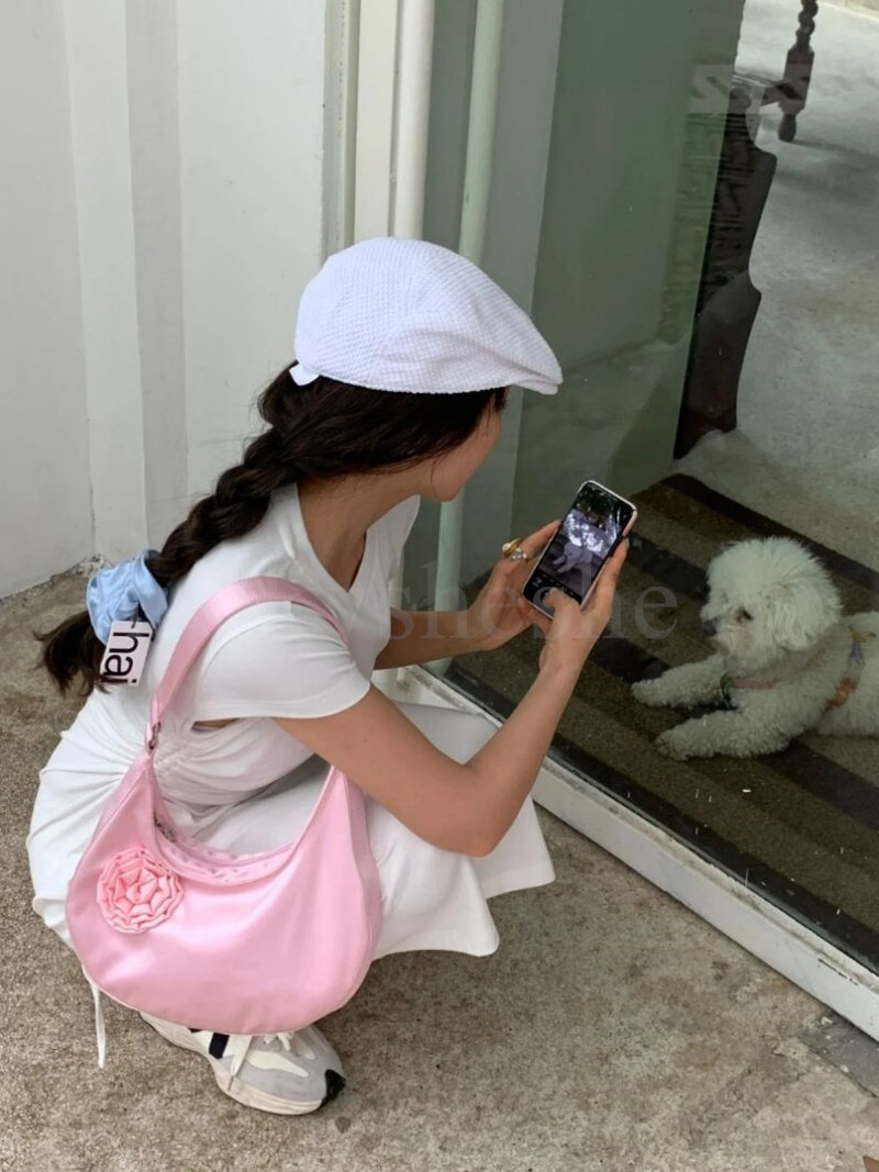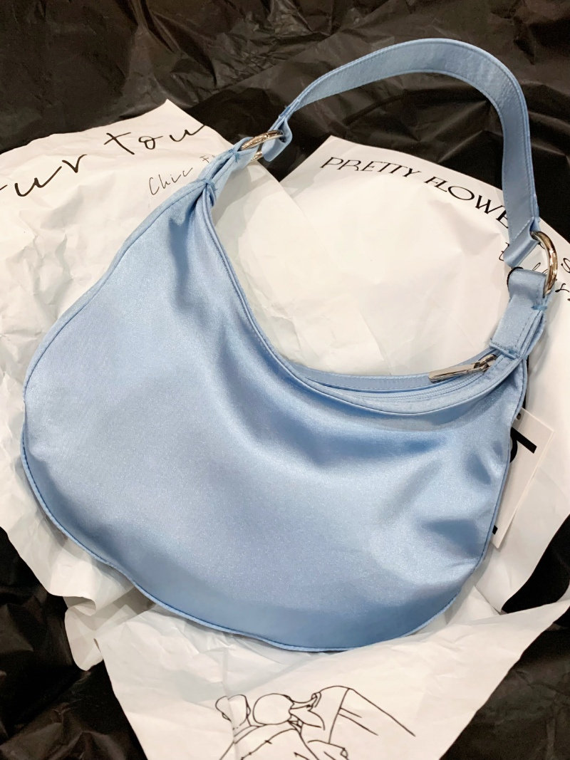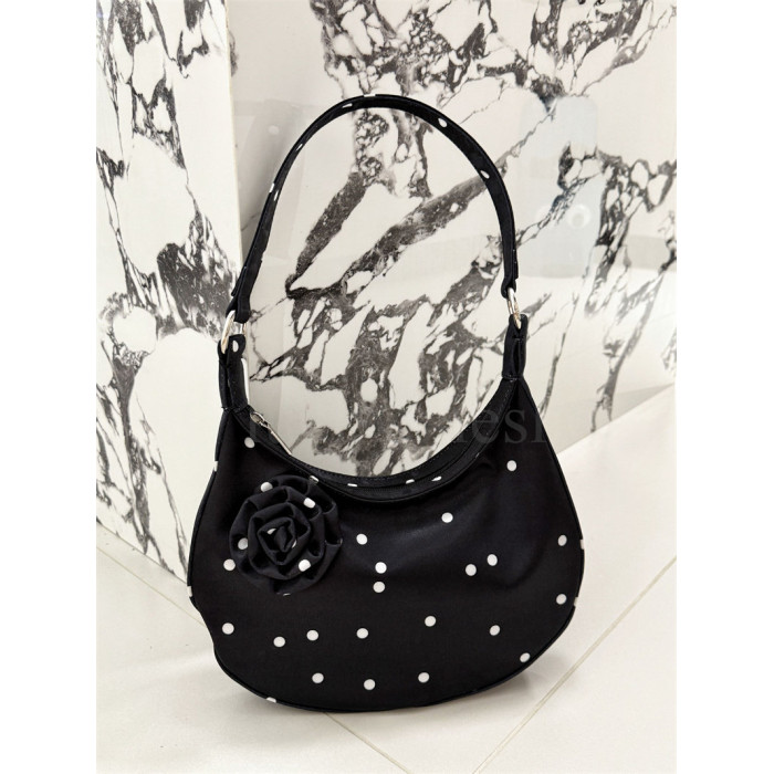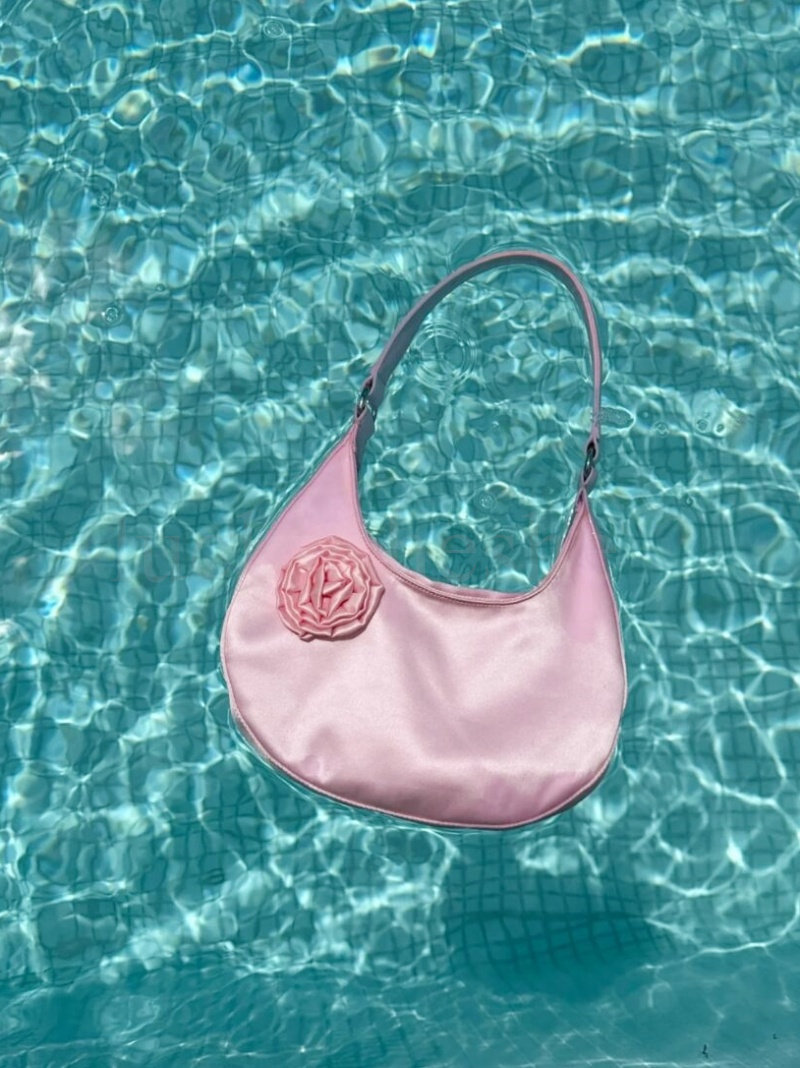 hai花朵月牙包包小衆設計淑女復古絲綢緞面玫瑰花手拎腋下單肩包