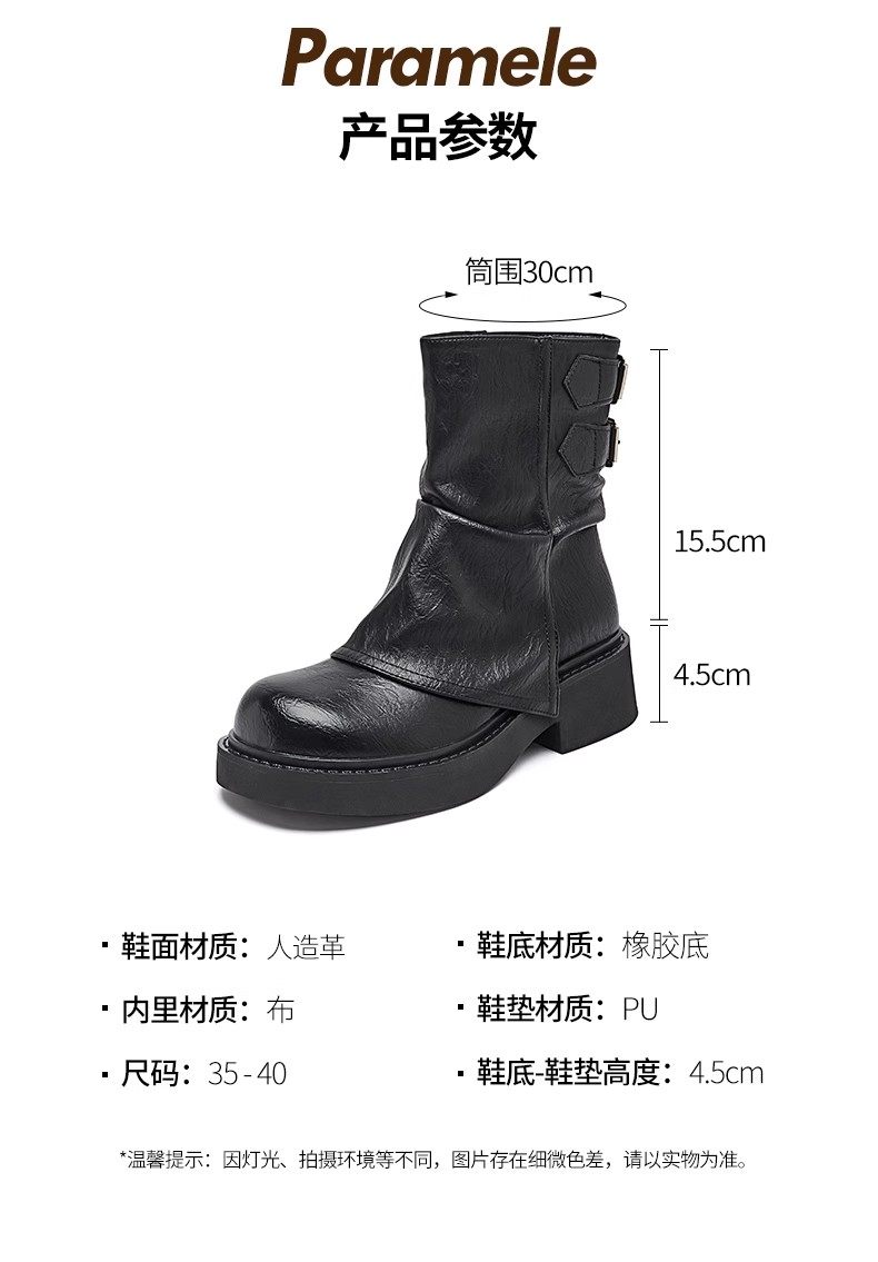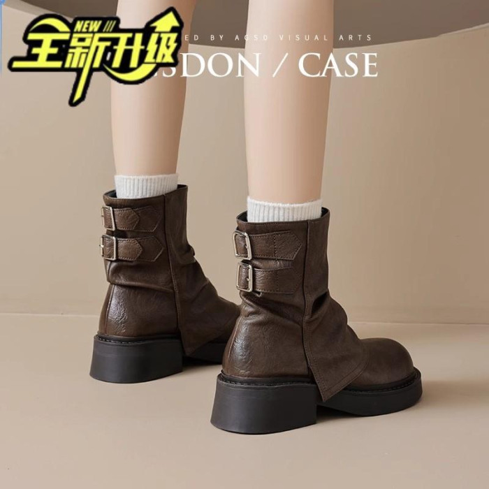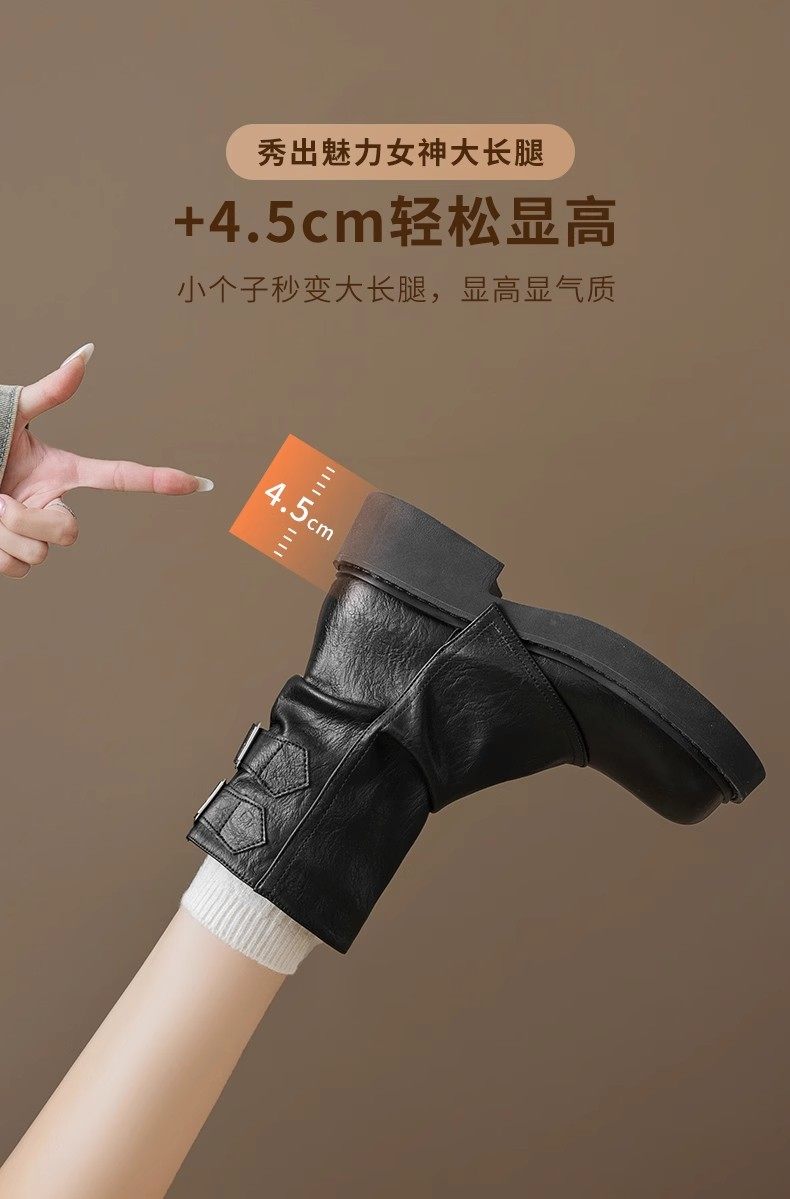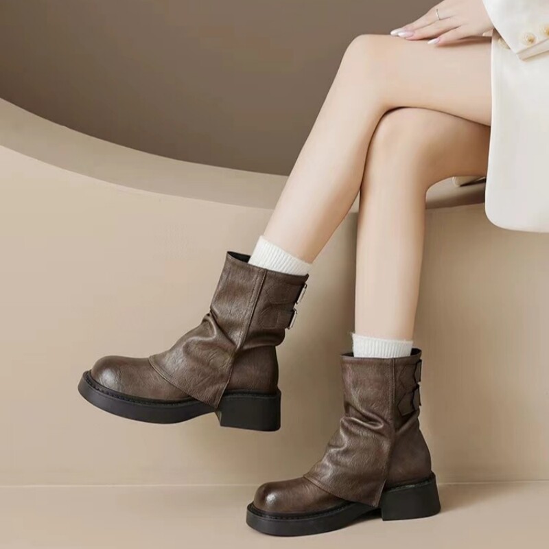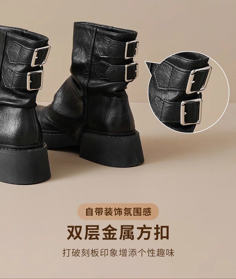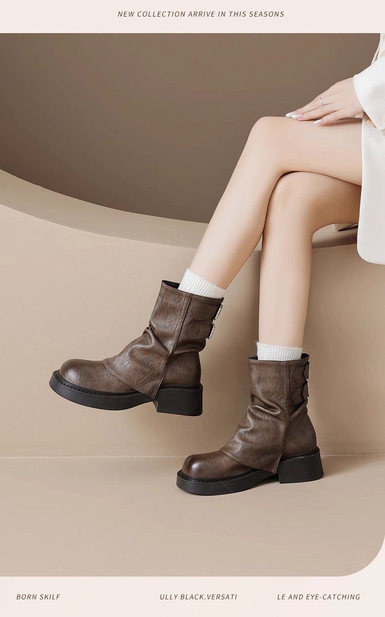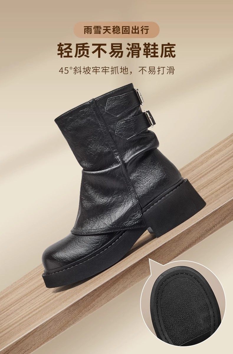 品牌特價真皮堆堆靴女2025秋冬新款小衆美拉德時尚短靴女粗跟厚底