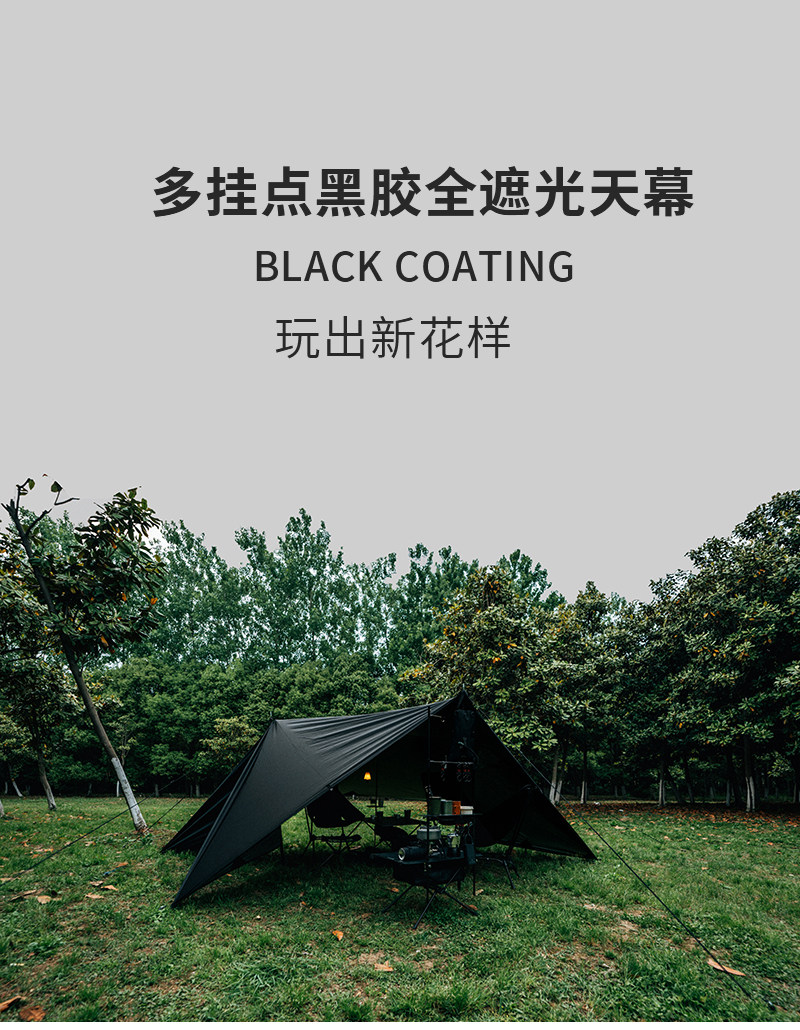 aricxi埃瑞斯黑膠全遮光防曬天幕戶外露營210T滌塔夫黑化黑膠天幕
