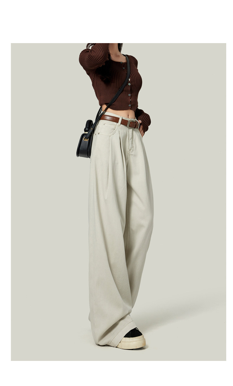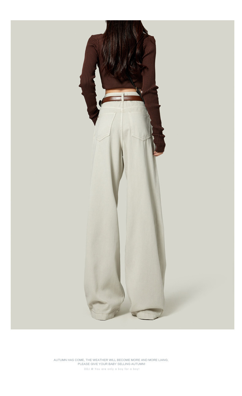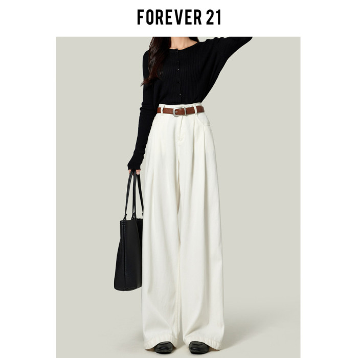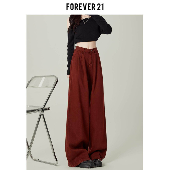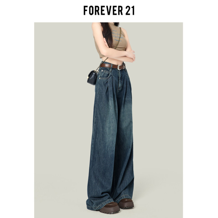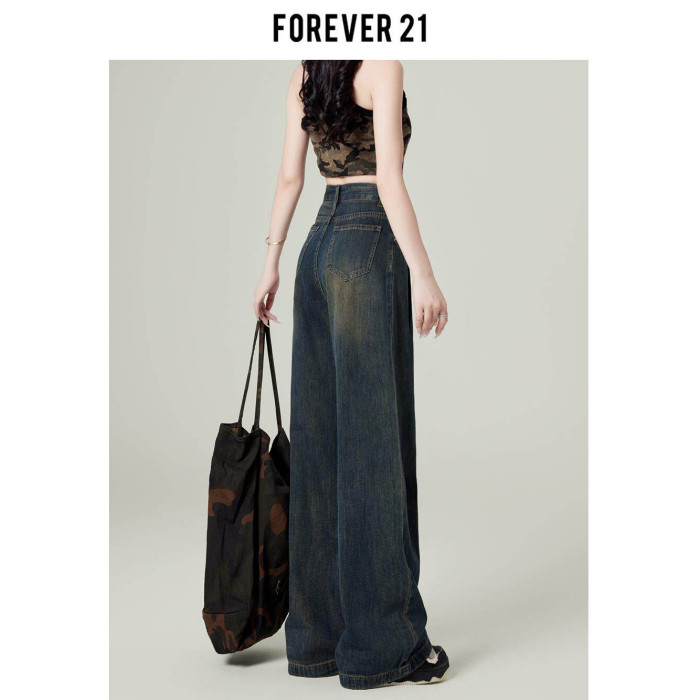 forever 21水泥色濶腿牛仔褲女2025新款高腰小個子直筒濶腿拖地褲