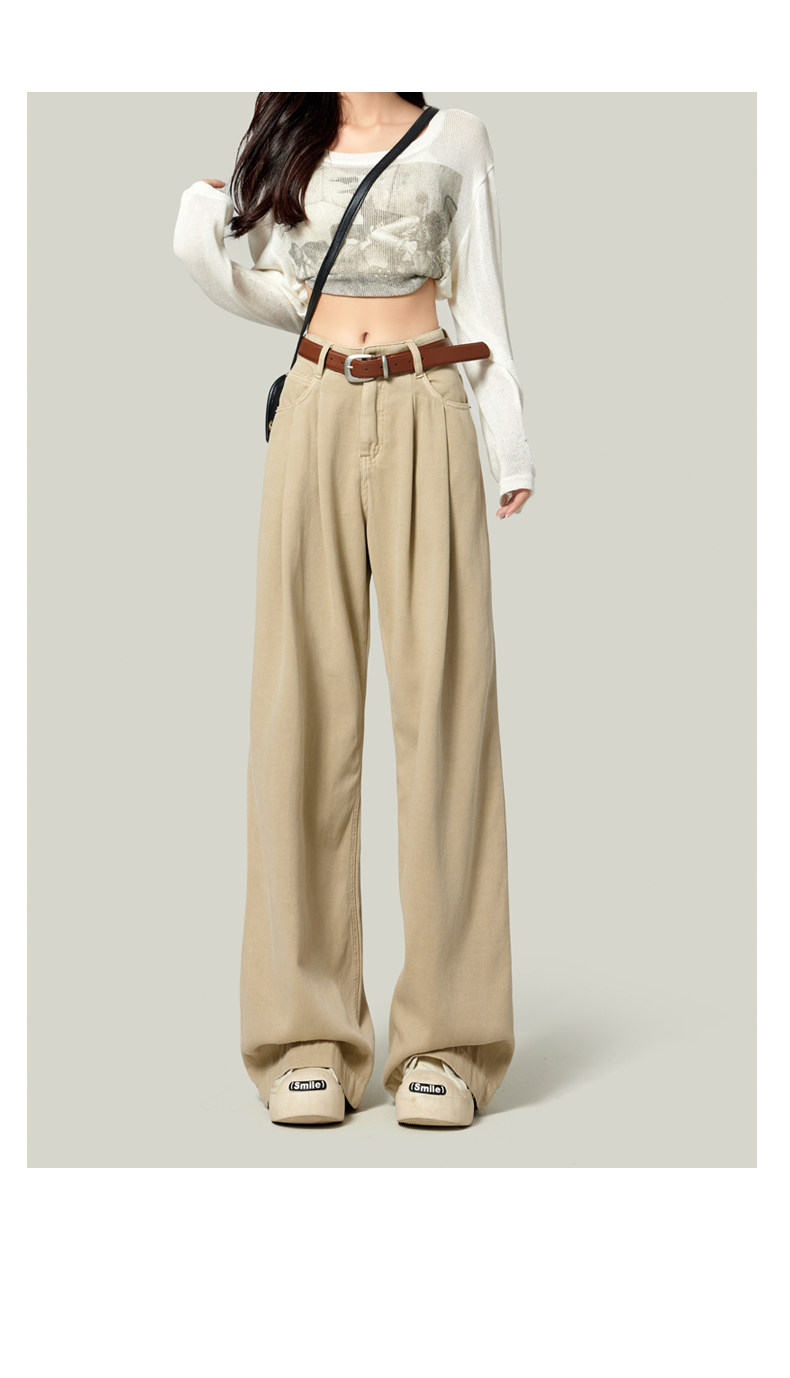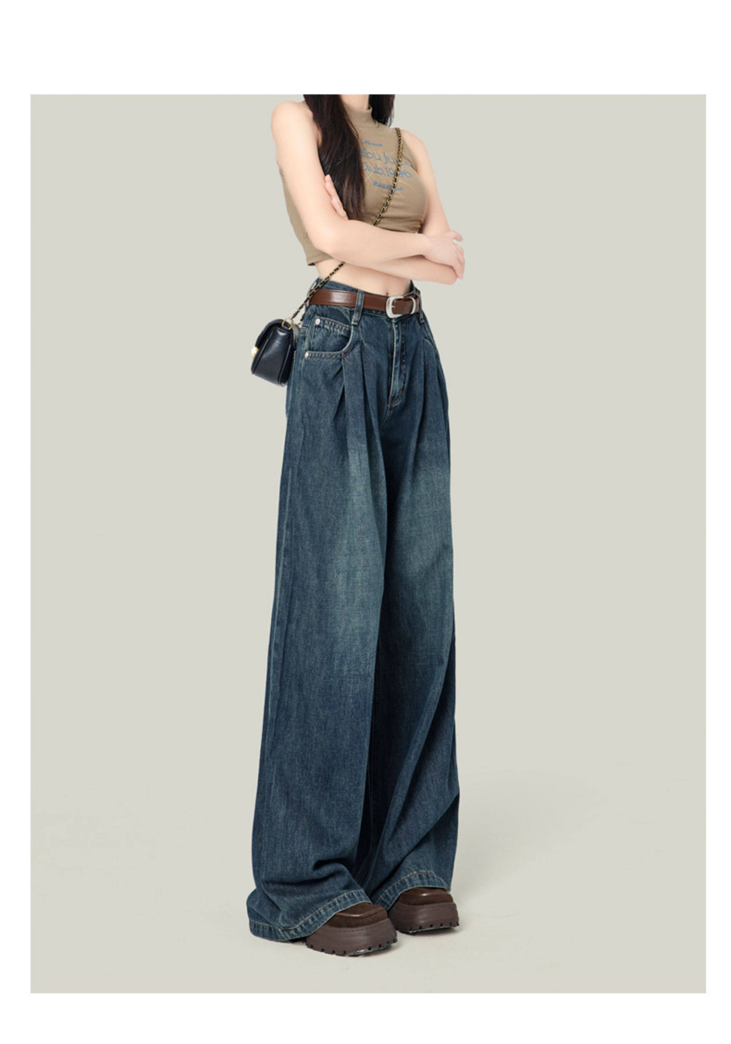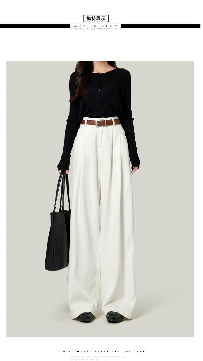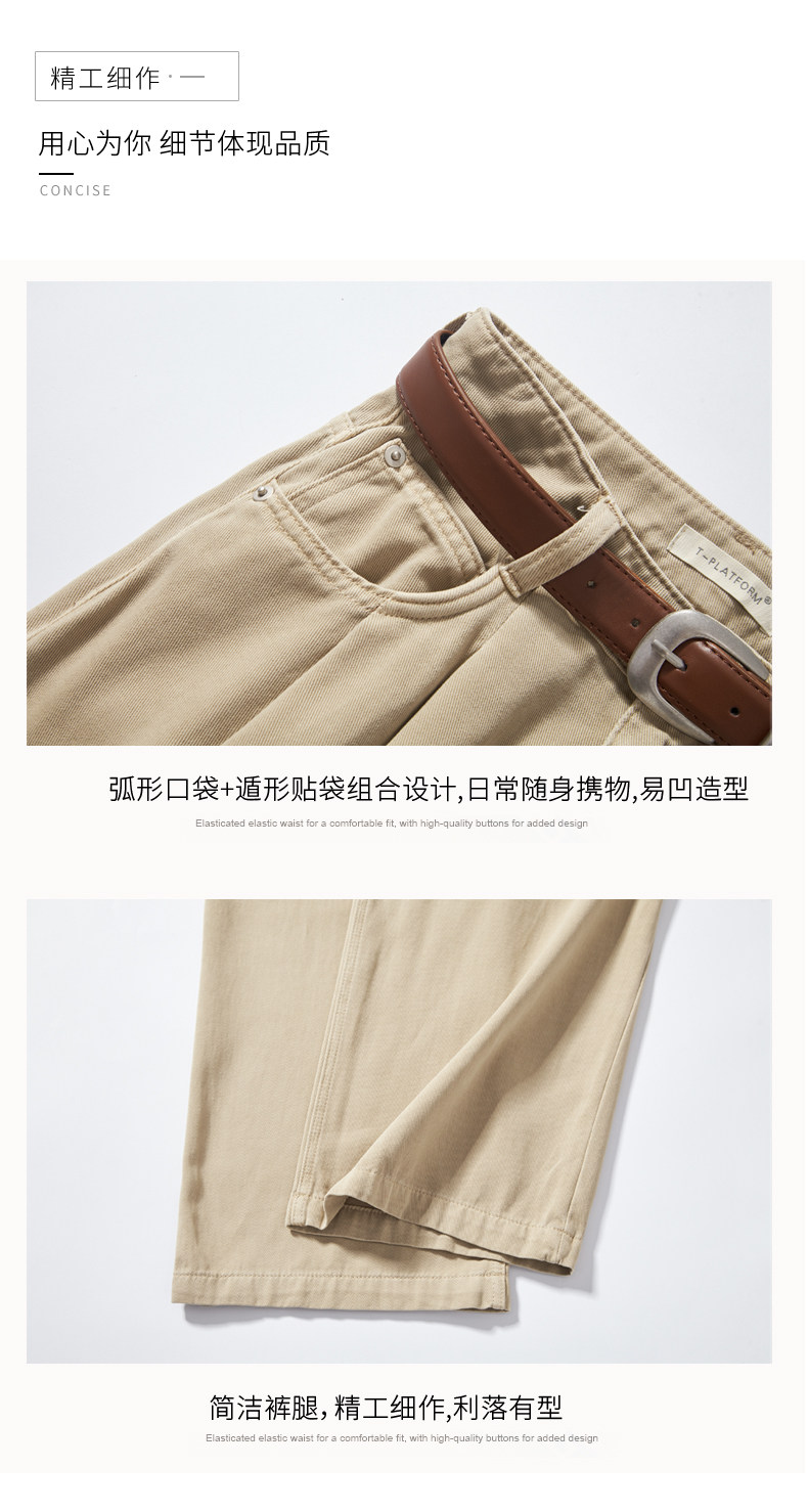 forever 21水泥色濶腿牛仔褲女2025新款高腰小個子直筒濶腿拖地褲