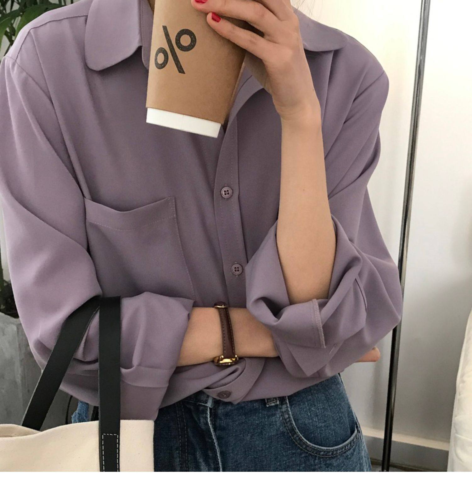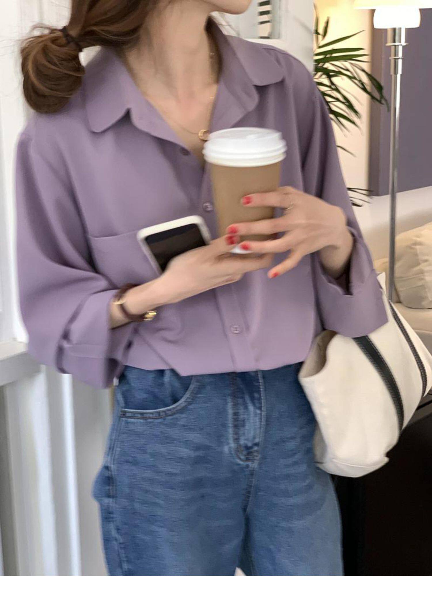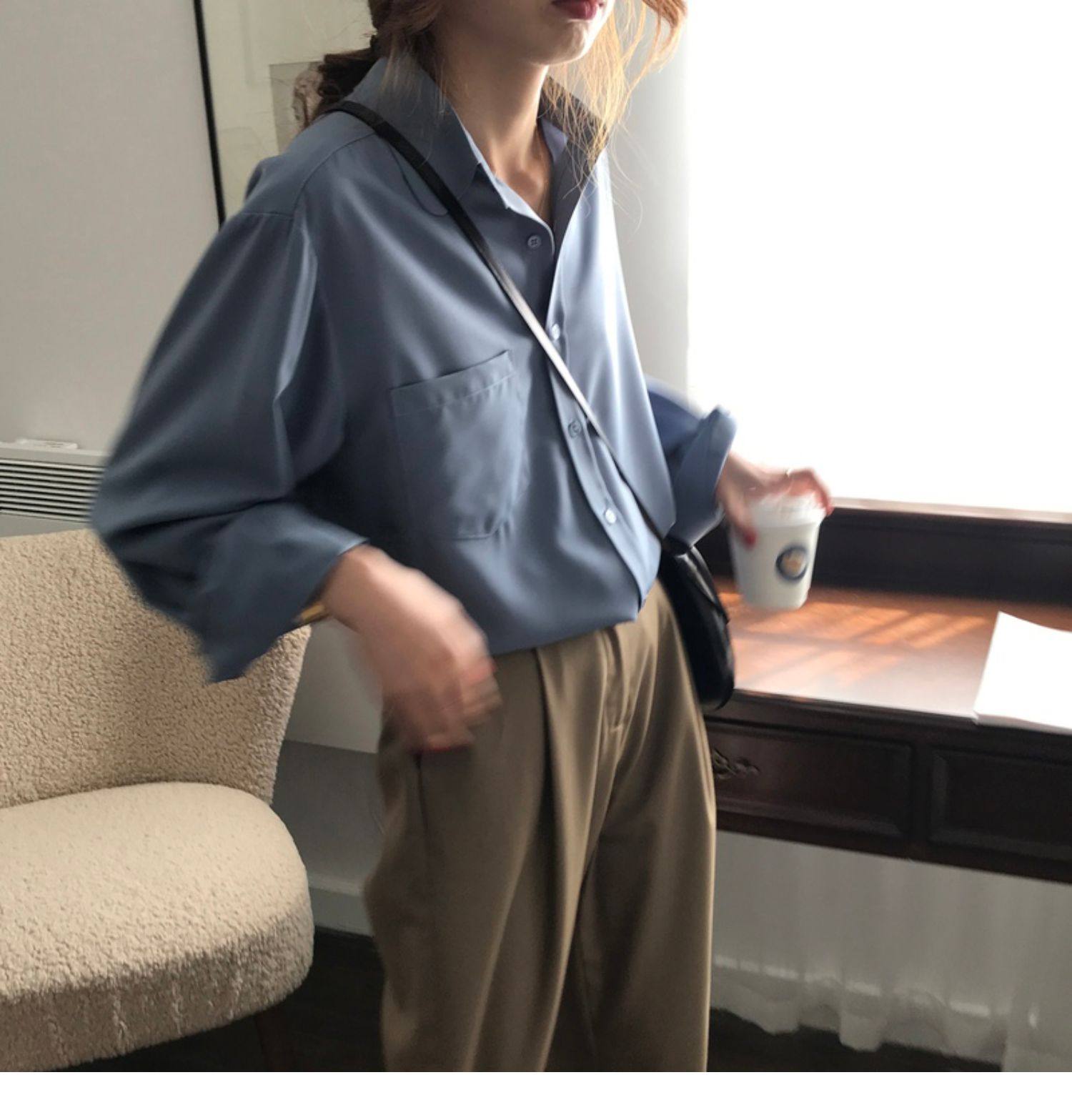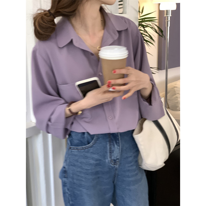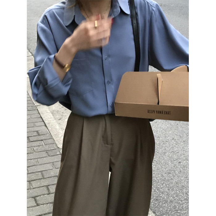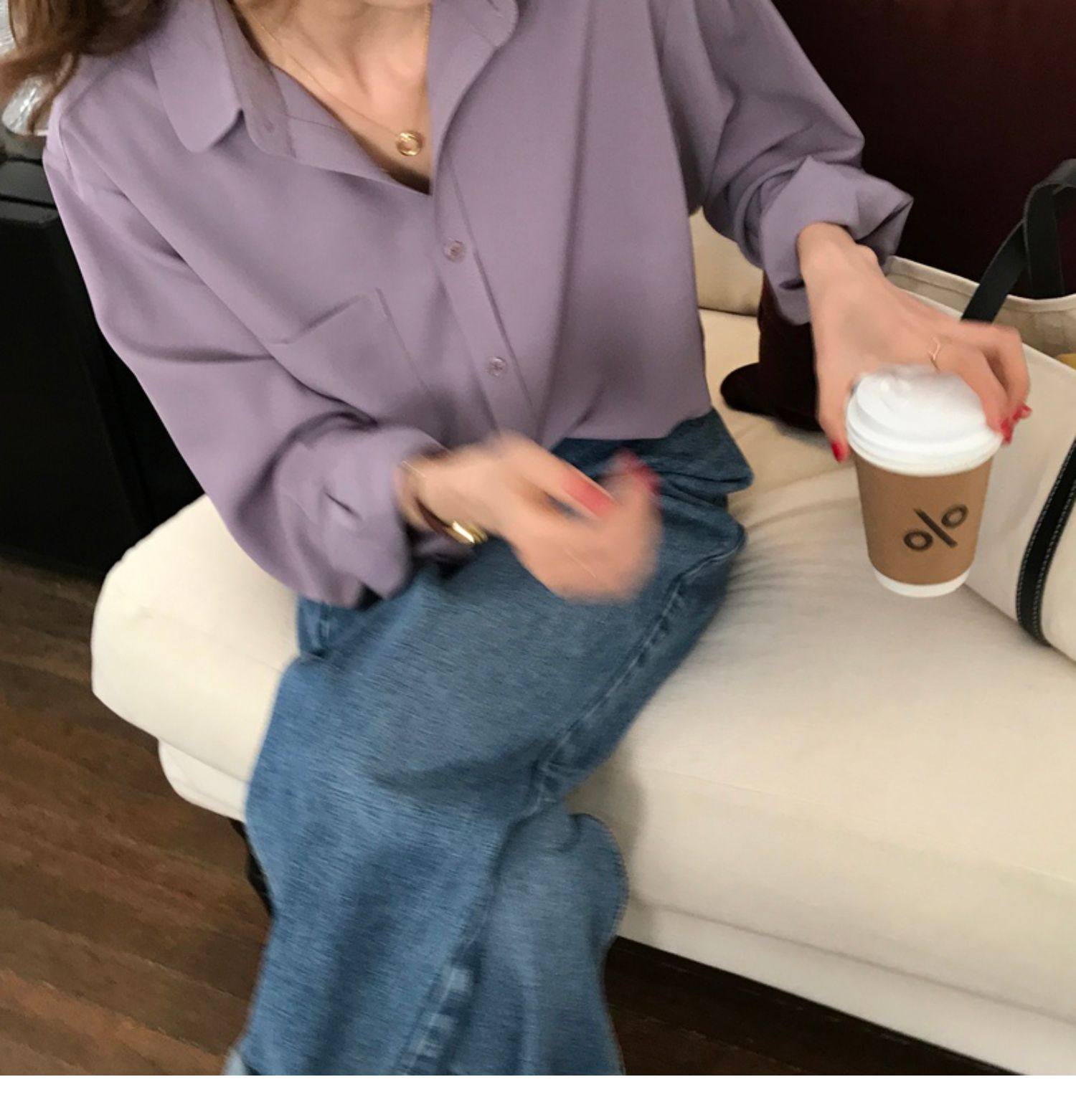 春秋韓版垂感休閒雪紡襯衫女復古港味高級感簡約曡穿長袖打底襯衣