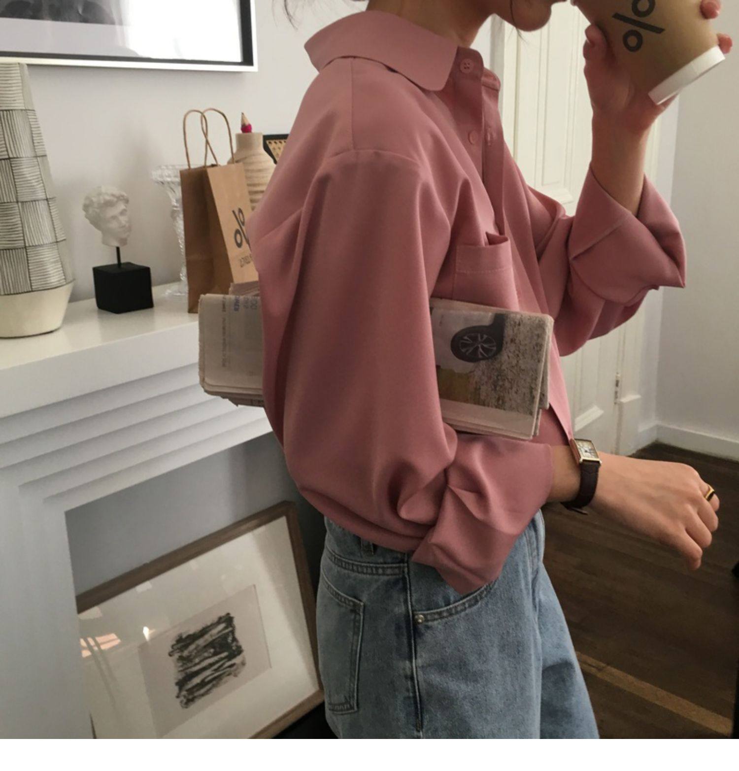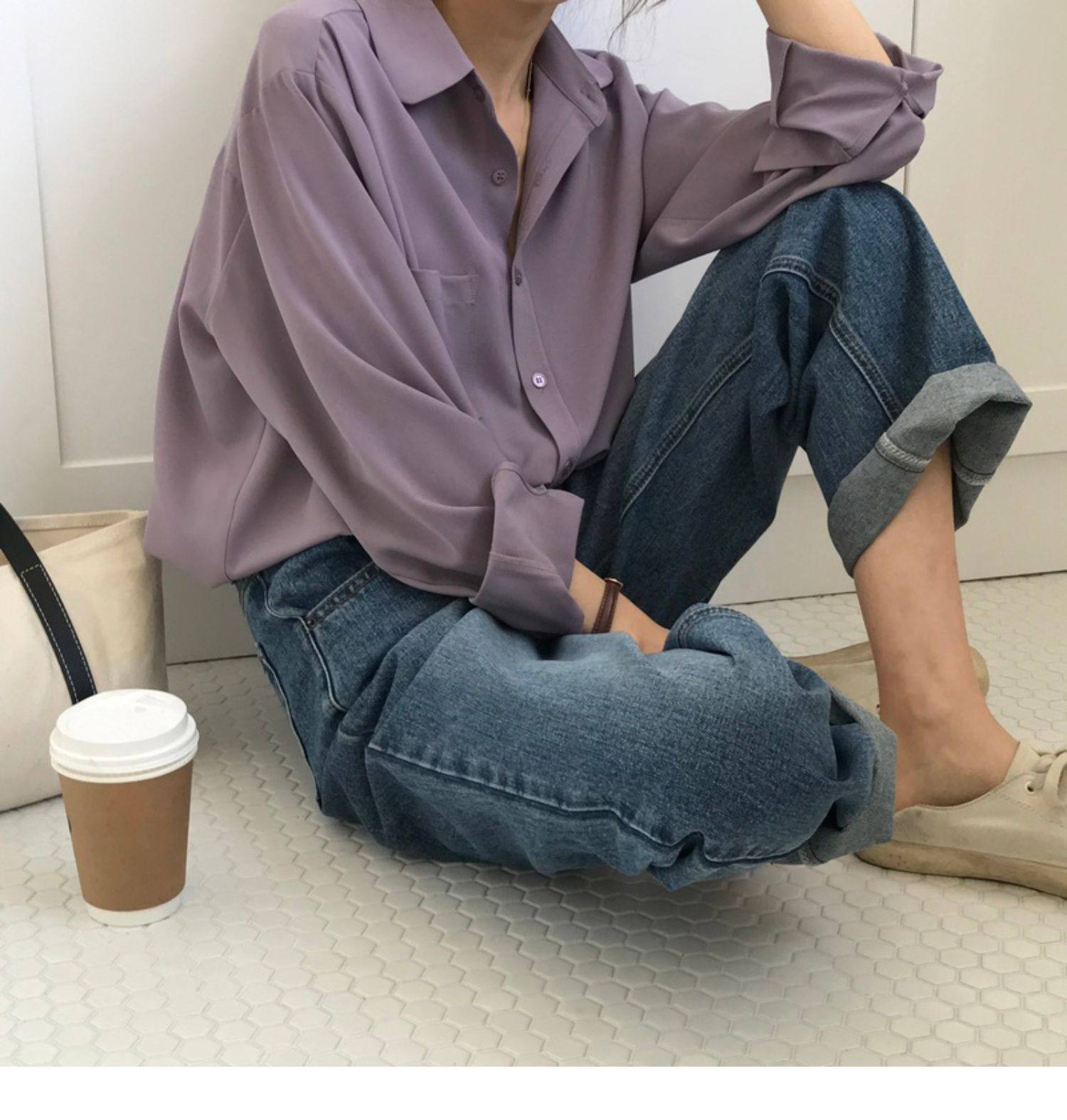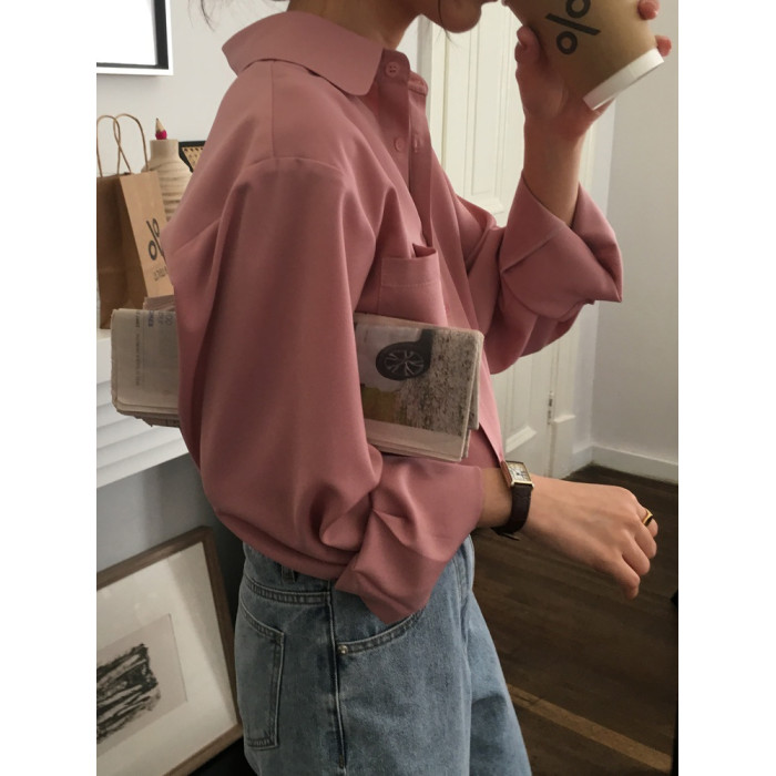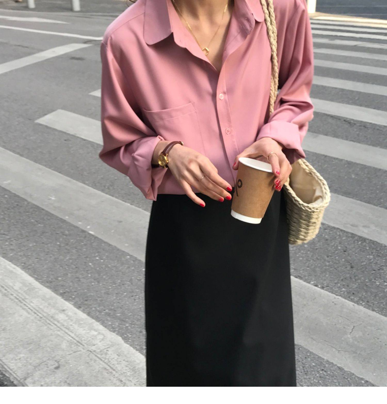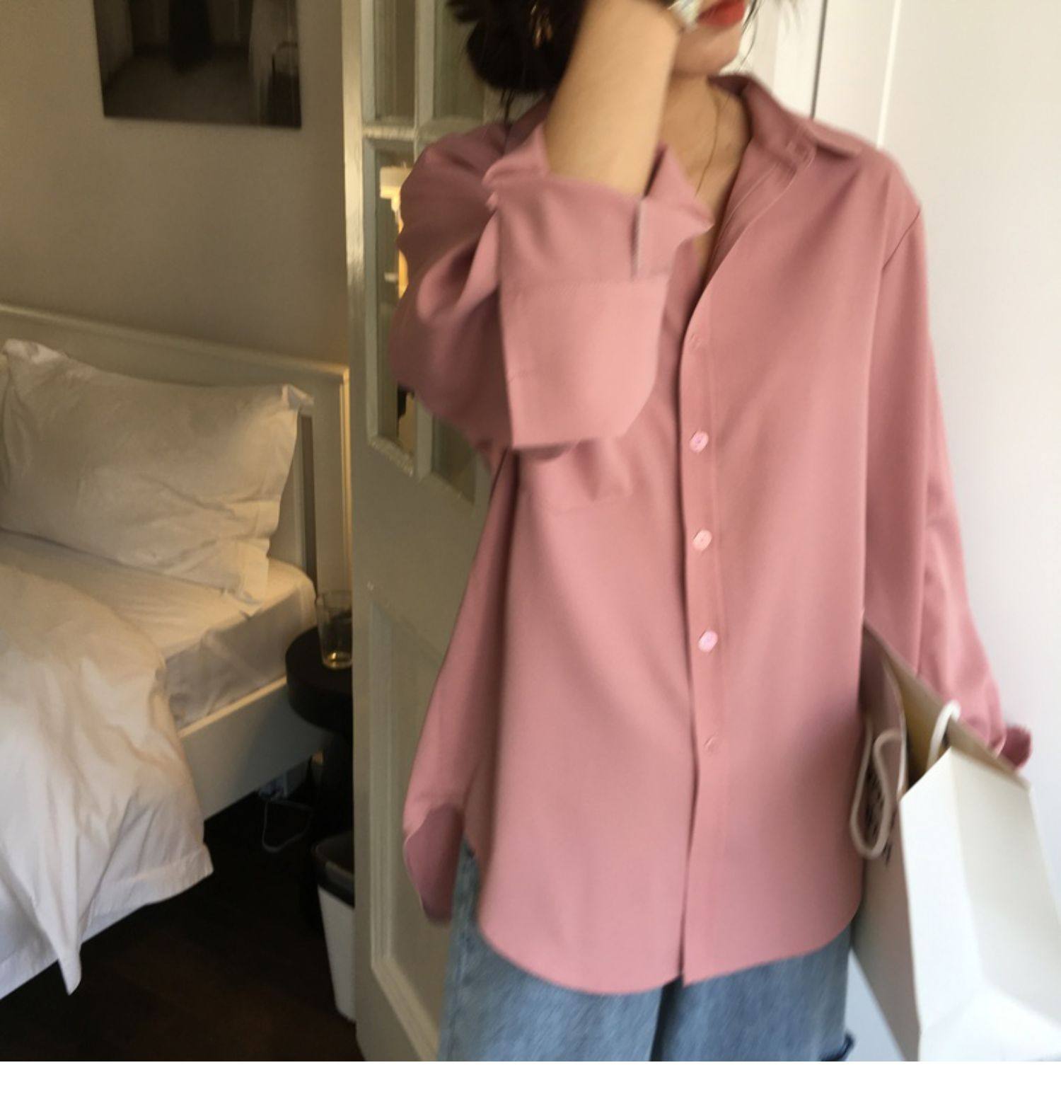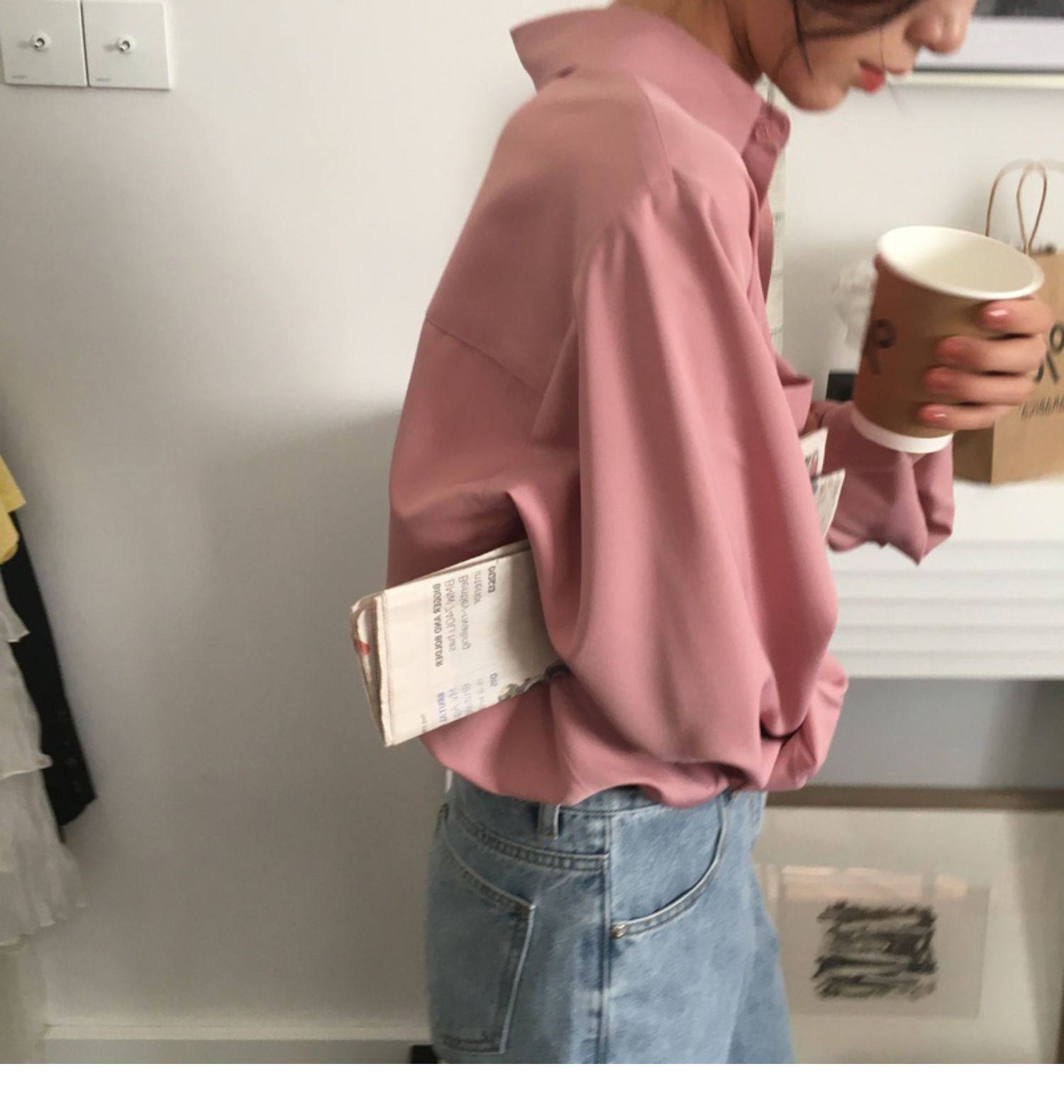 春秋韓版垂感休閒雪紡襯衫女復古港味高級感簡約曡穿長袖打底襯衣