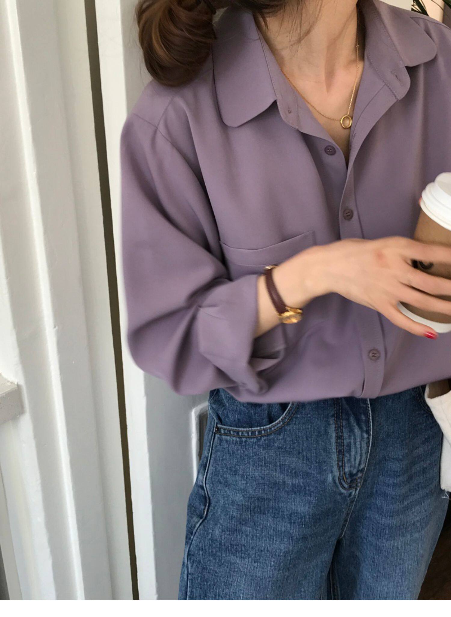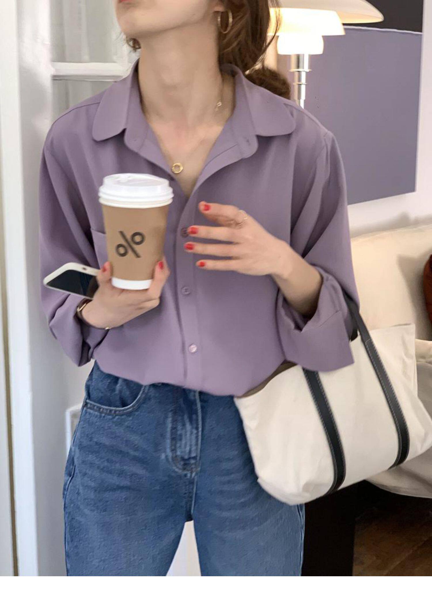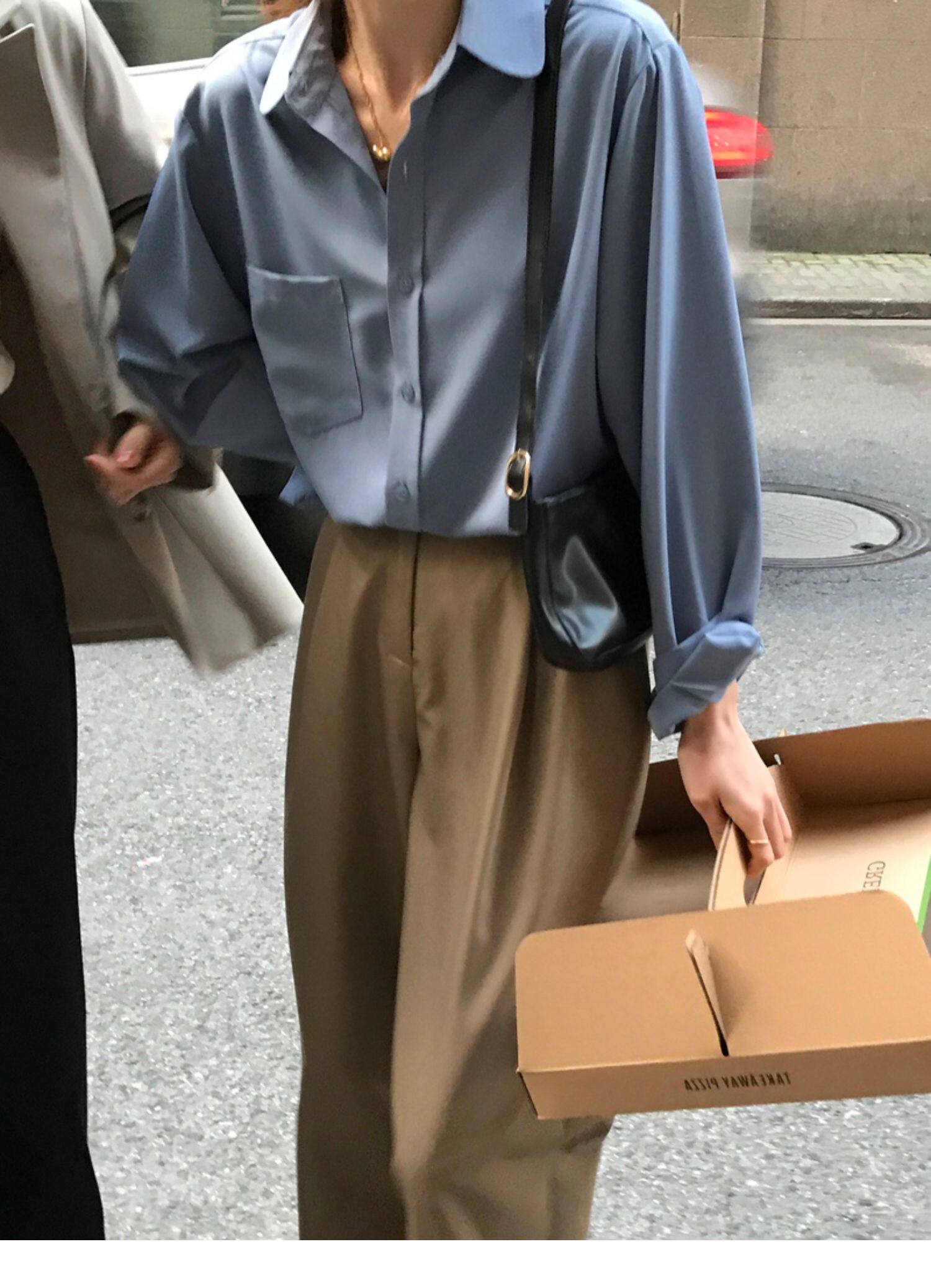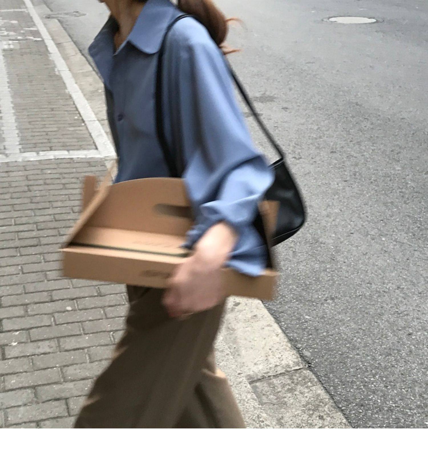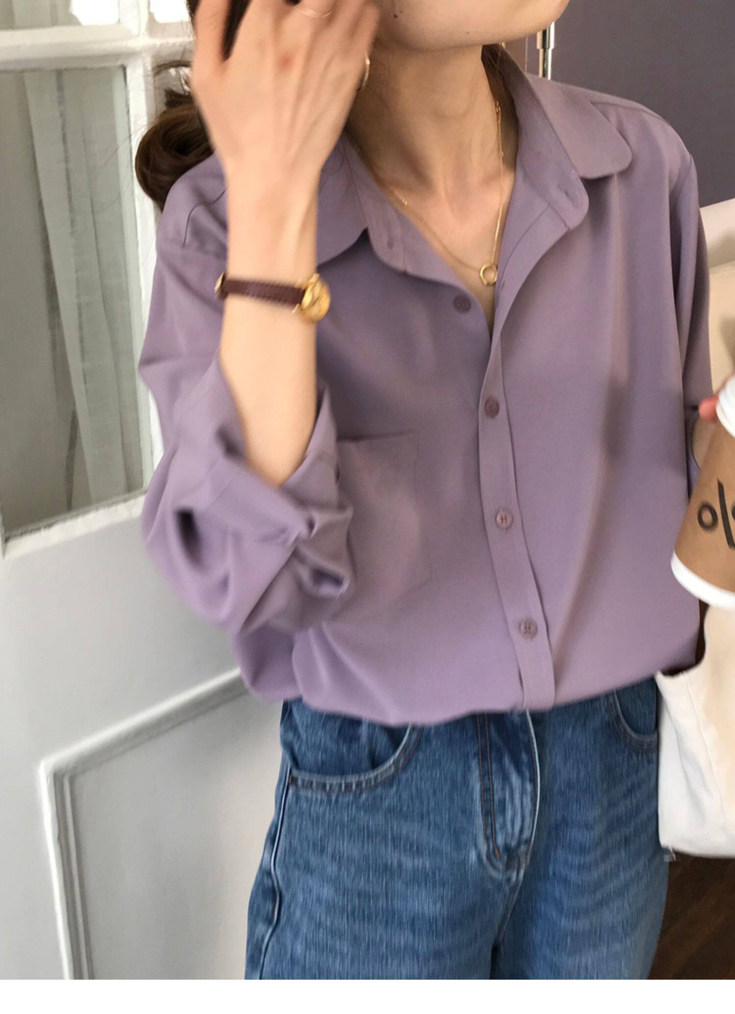 春秋韓版垂感休閒雪紡襯衫女復古港味高級感簡約曡穿長袖打底襯衣
