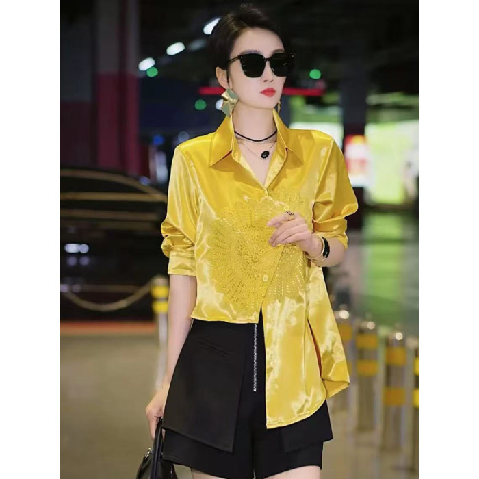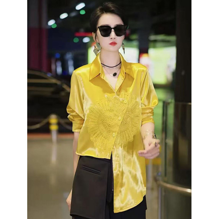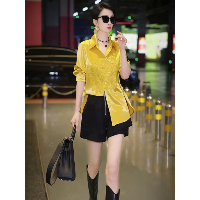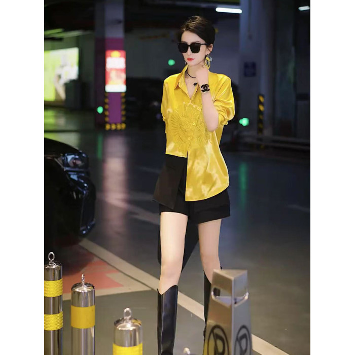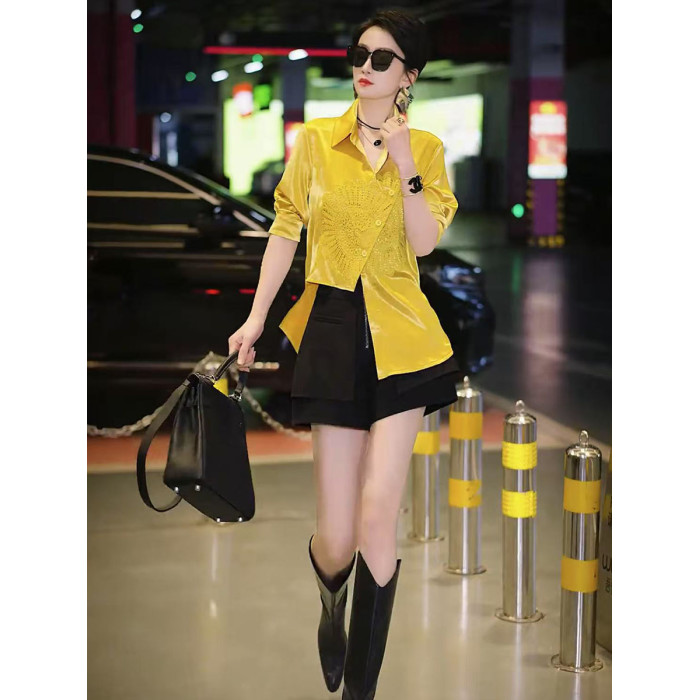 歐貨不規則別致襯衫女2025夏季新款洋氣時尚顯瘦設計感繙領上衣潮
