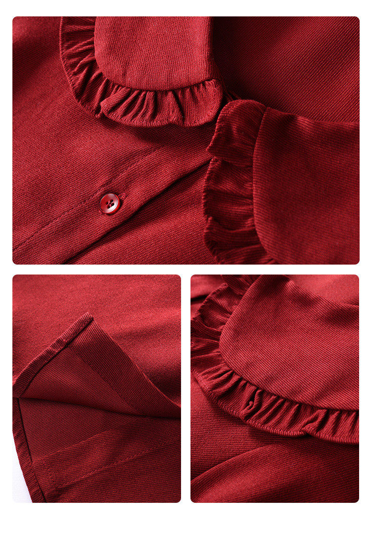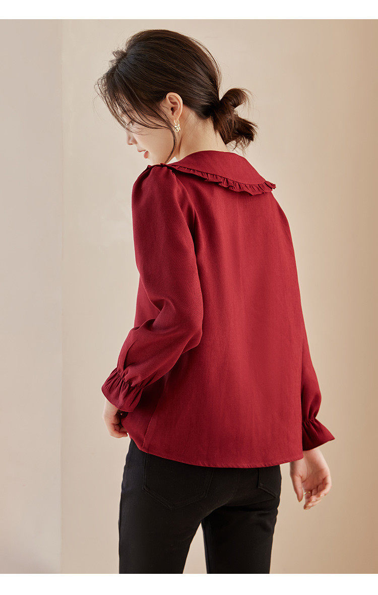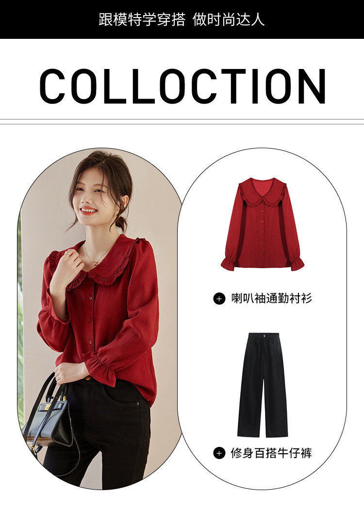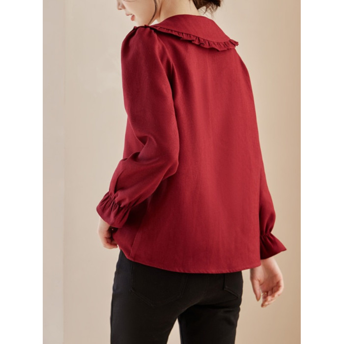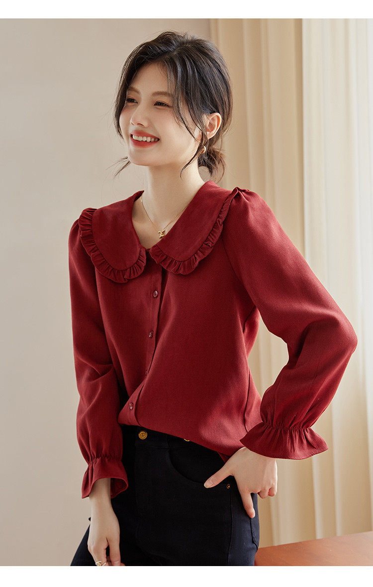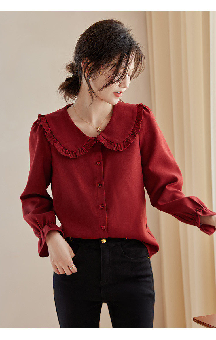 娃娃領復古風襯衫2025秋冬季新款時尚喇叭袖休閒百搭新年紅襯衣女