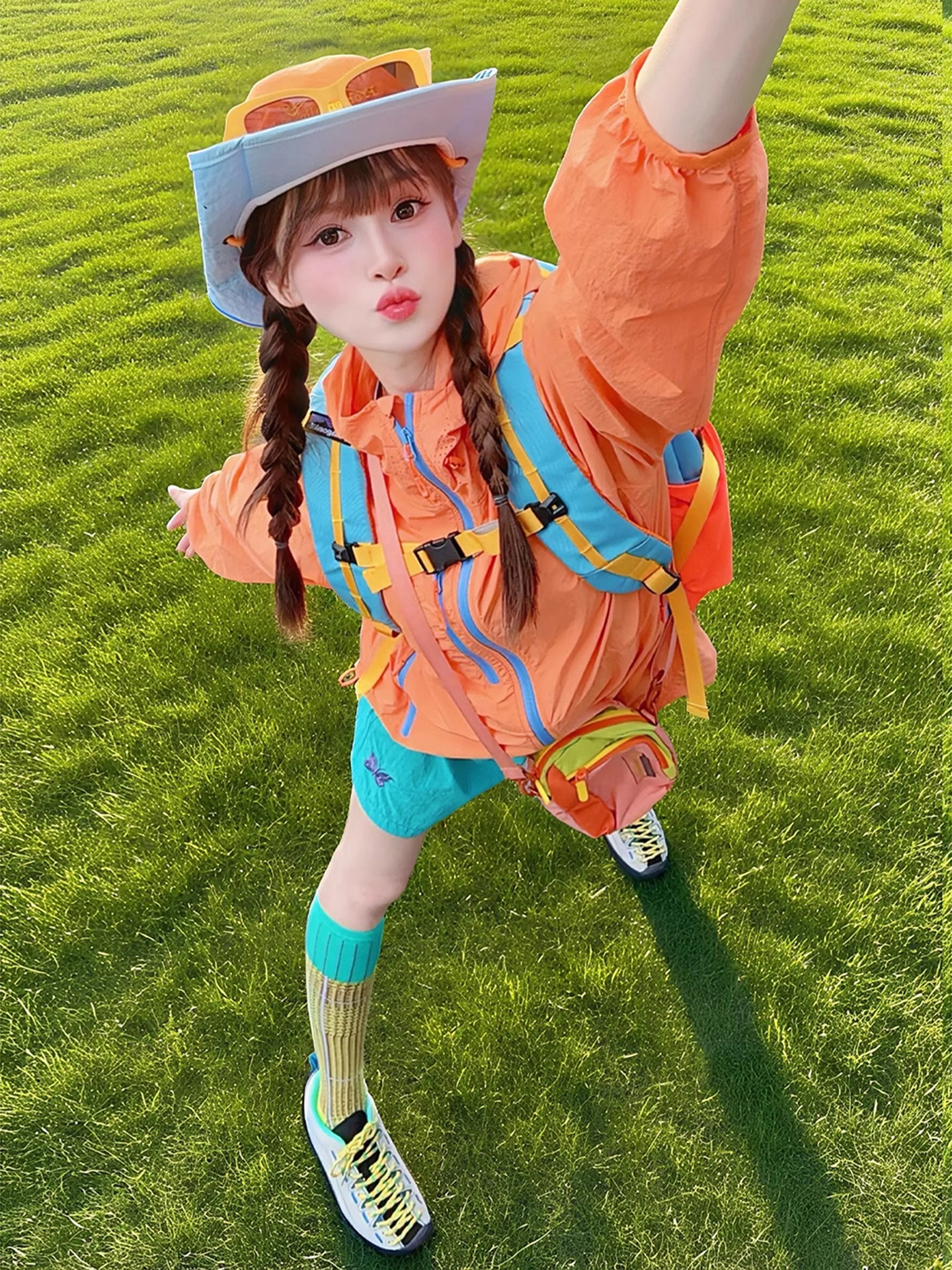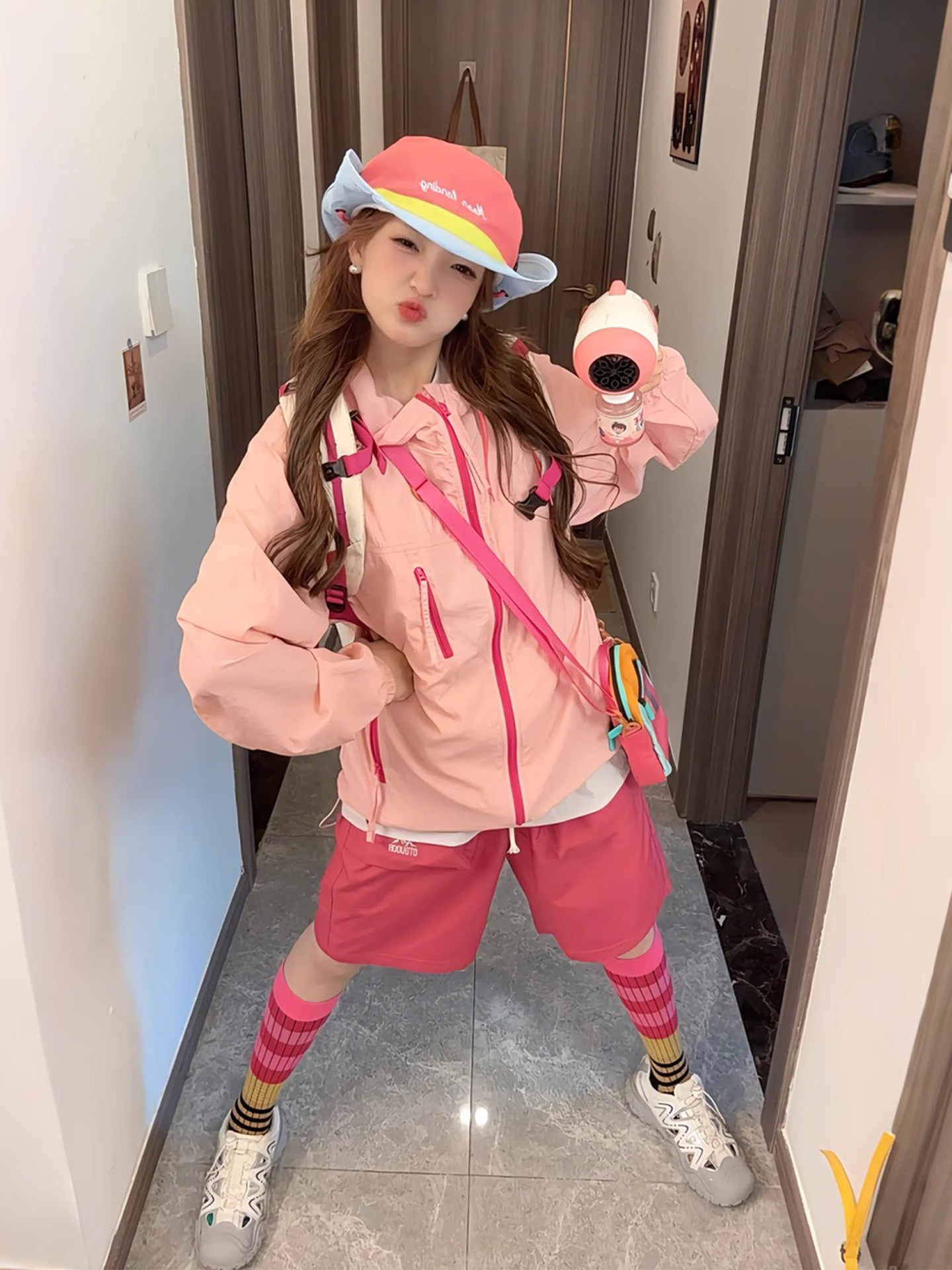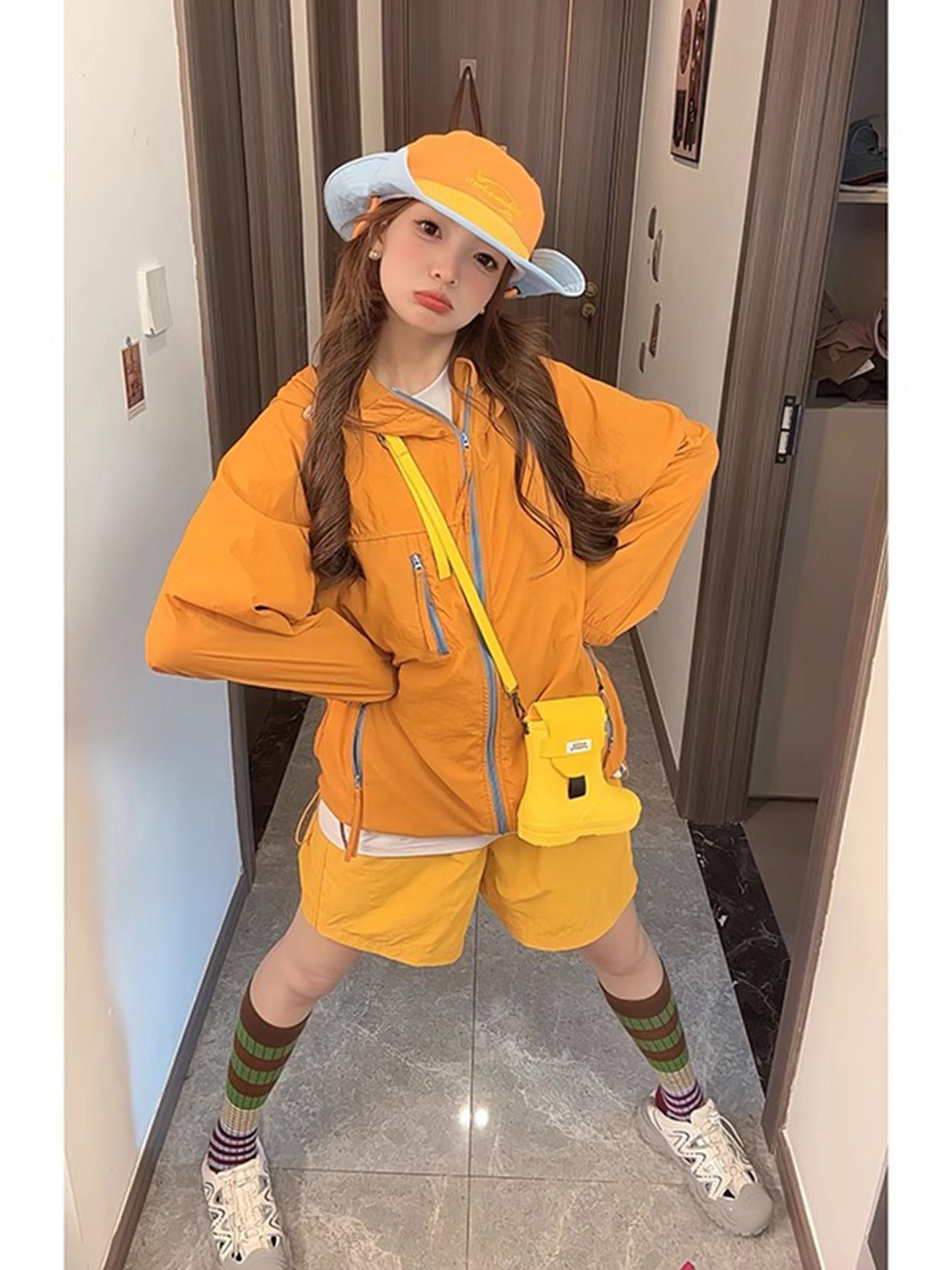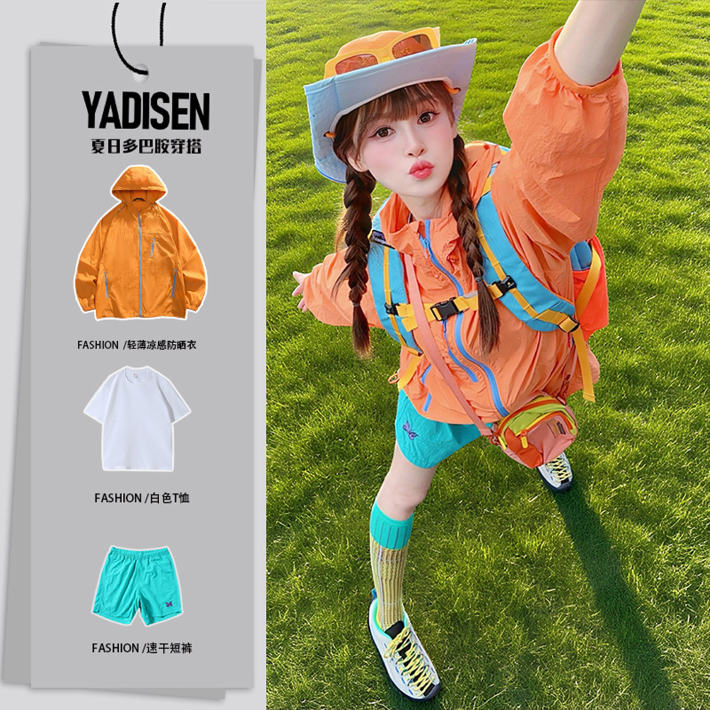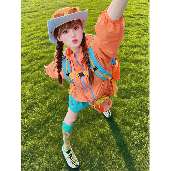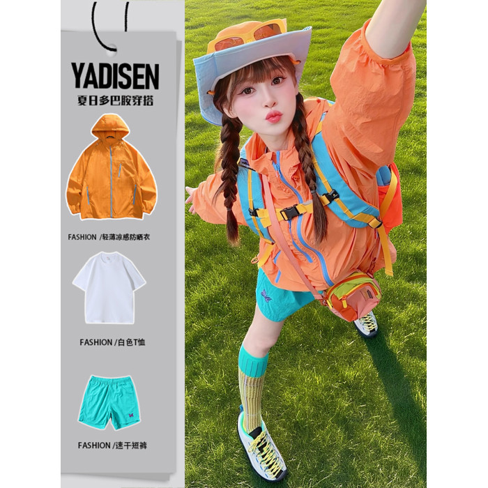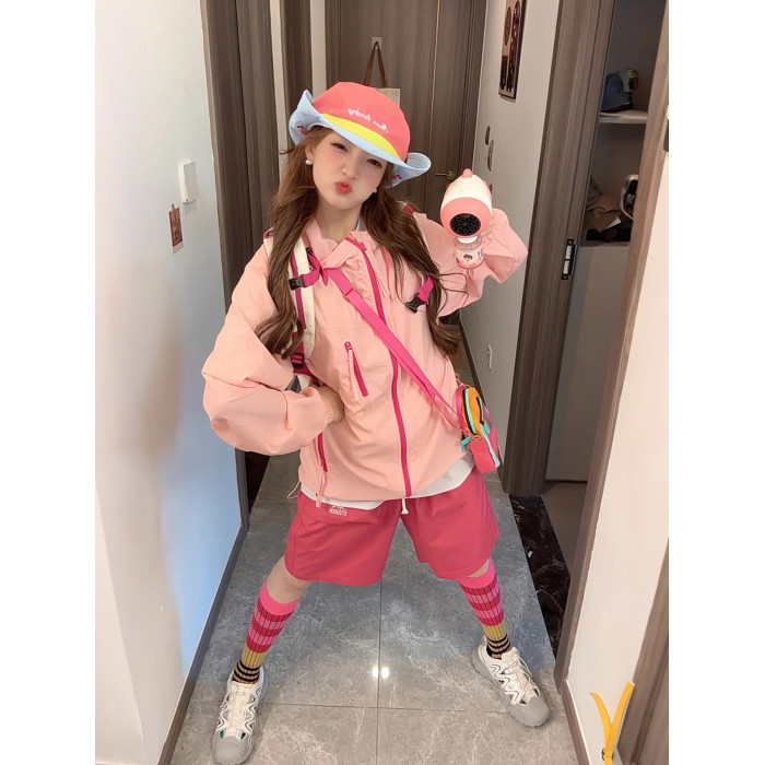多巴胺穿搭女套裝夏季戶外輕薄防曬衣短褲搭配一整套戶外登山外套