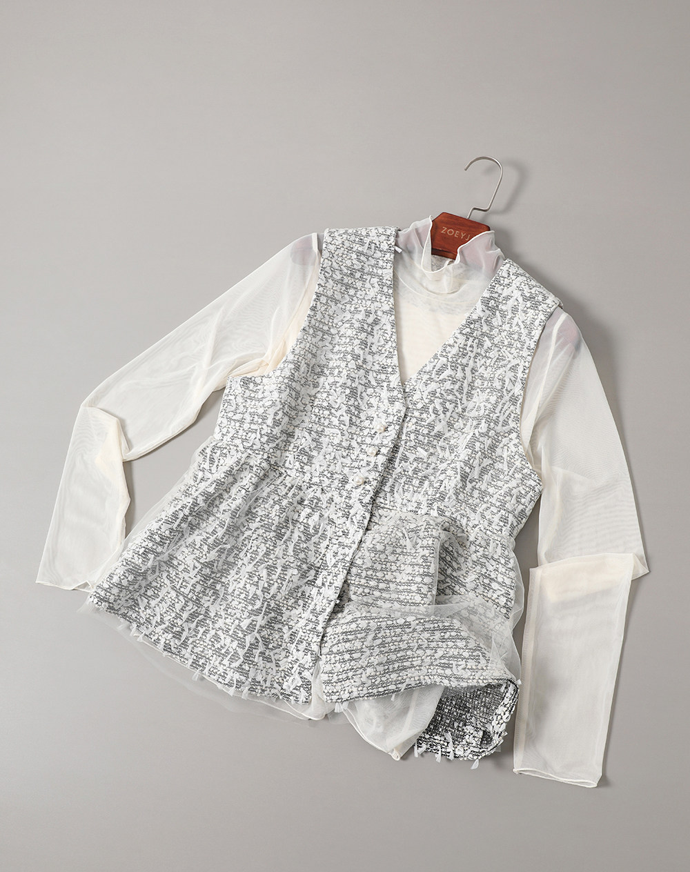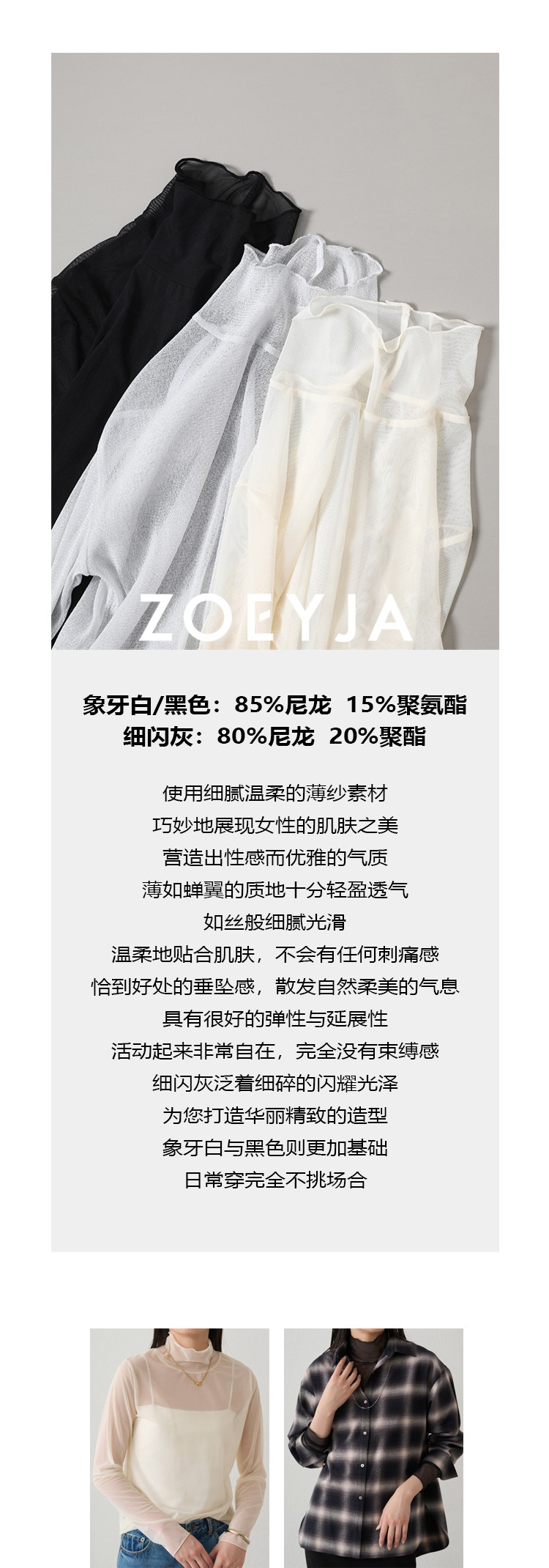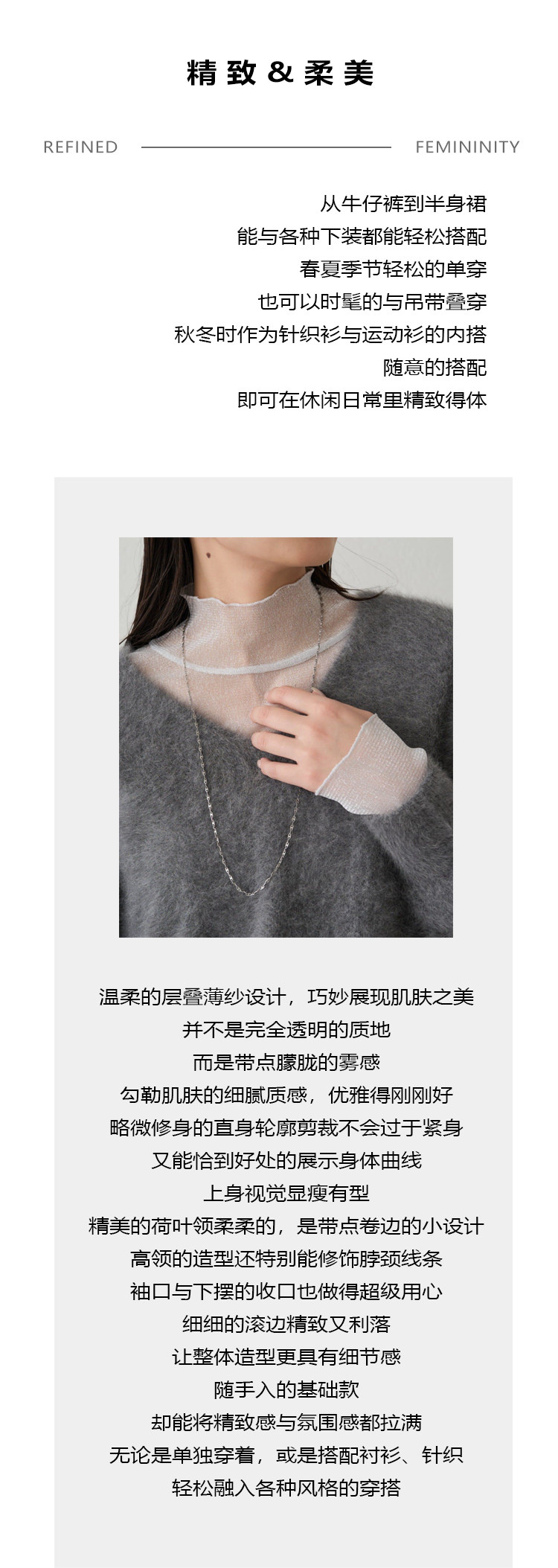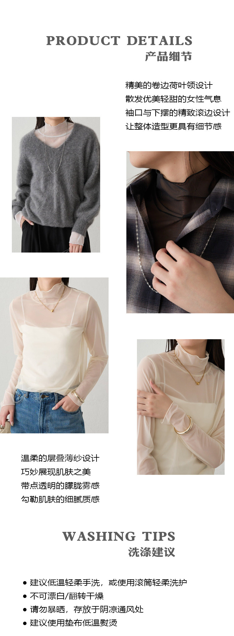 ZOEYJA佐佐家 LD巧妙展現肌膚之美 精緻荷葉領別致層次薄紗打底衫