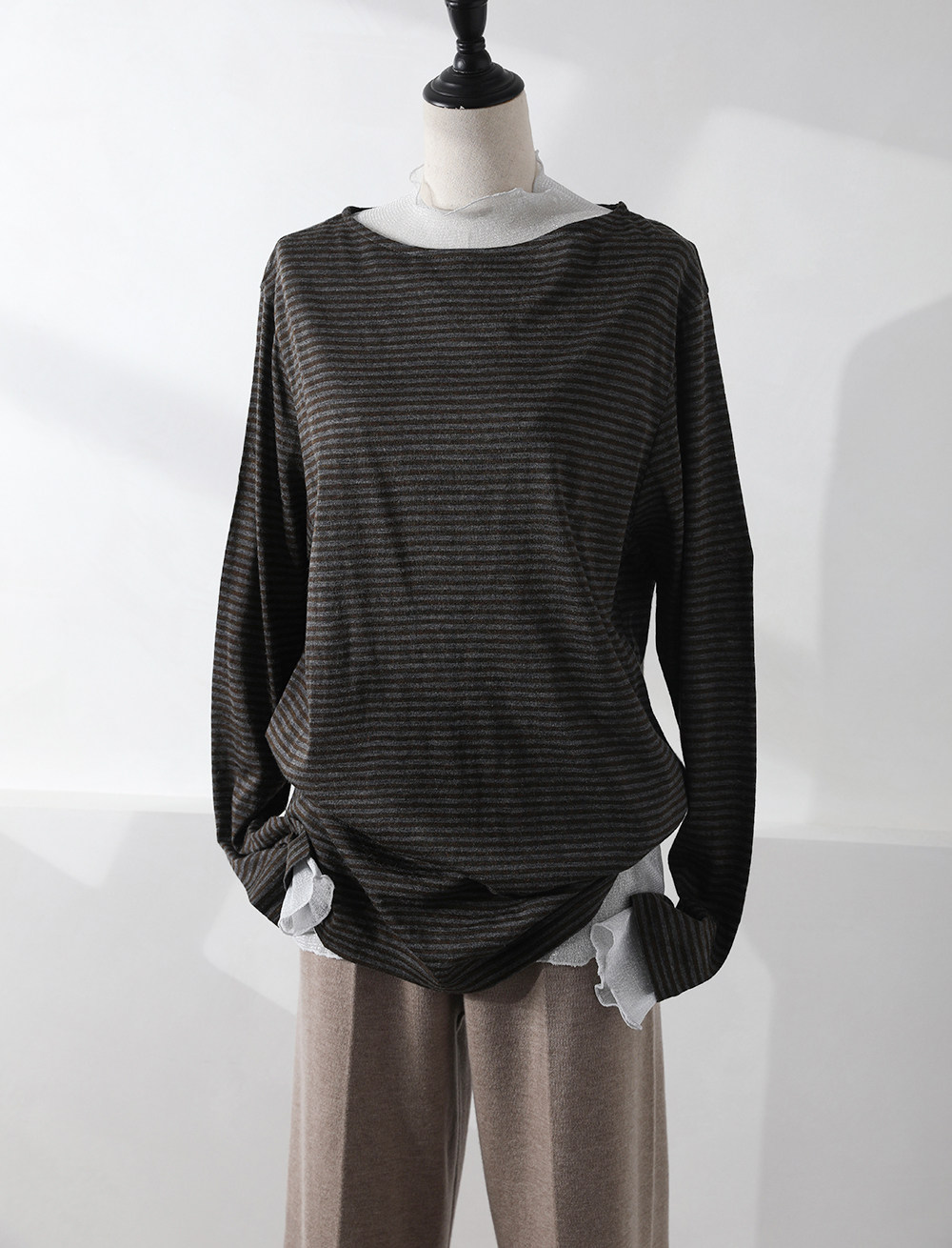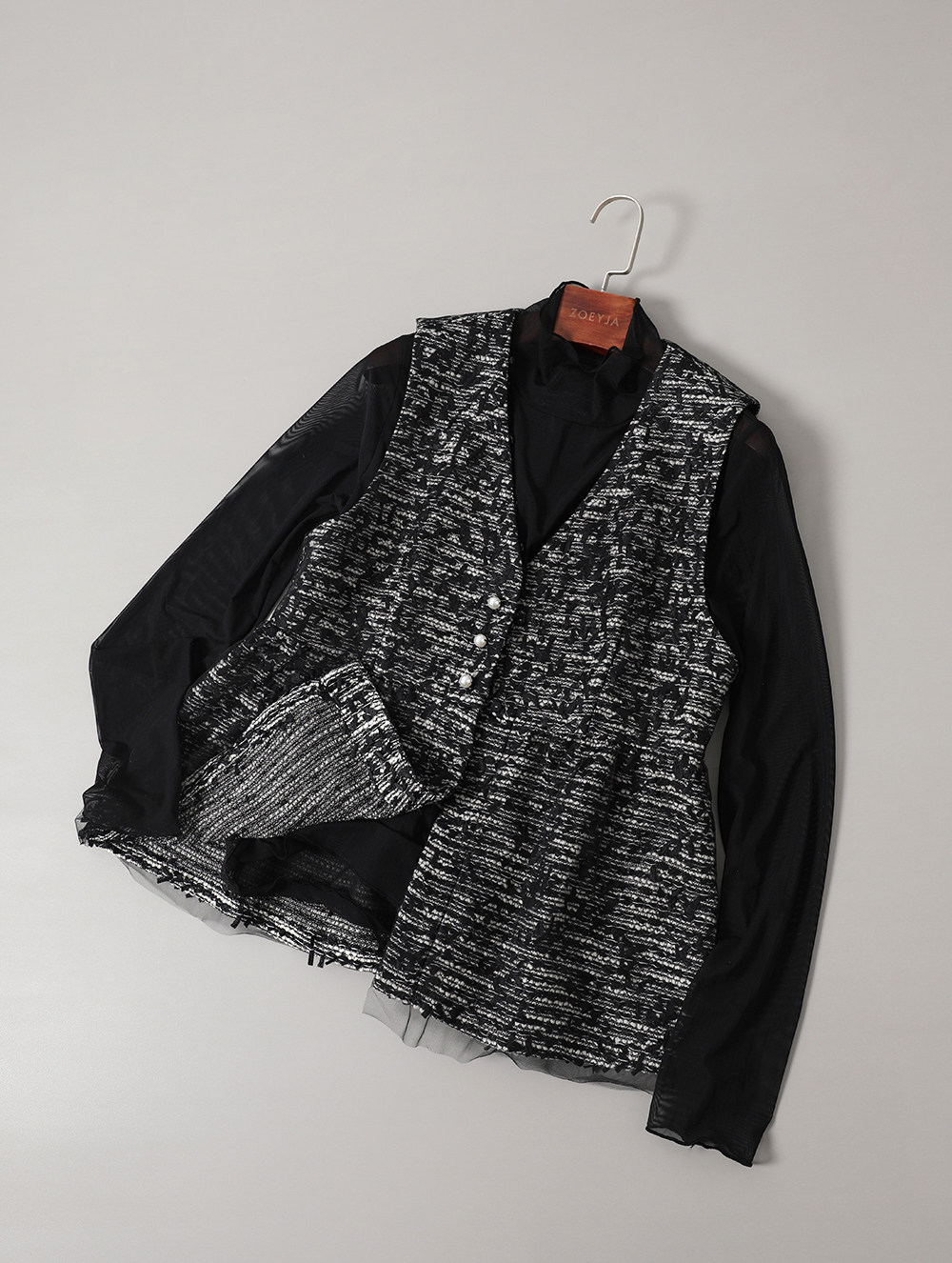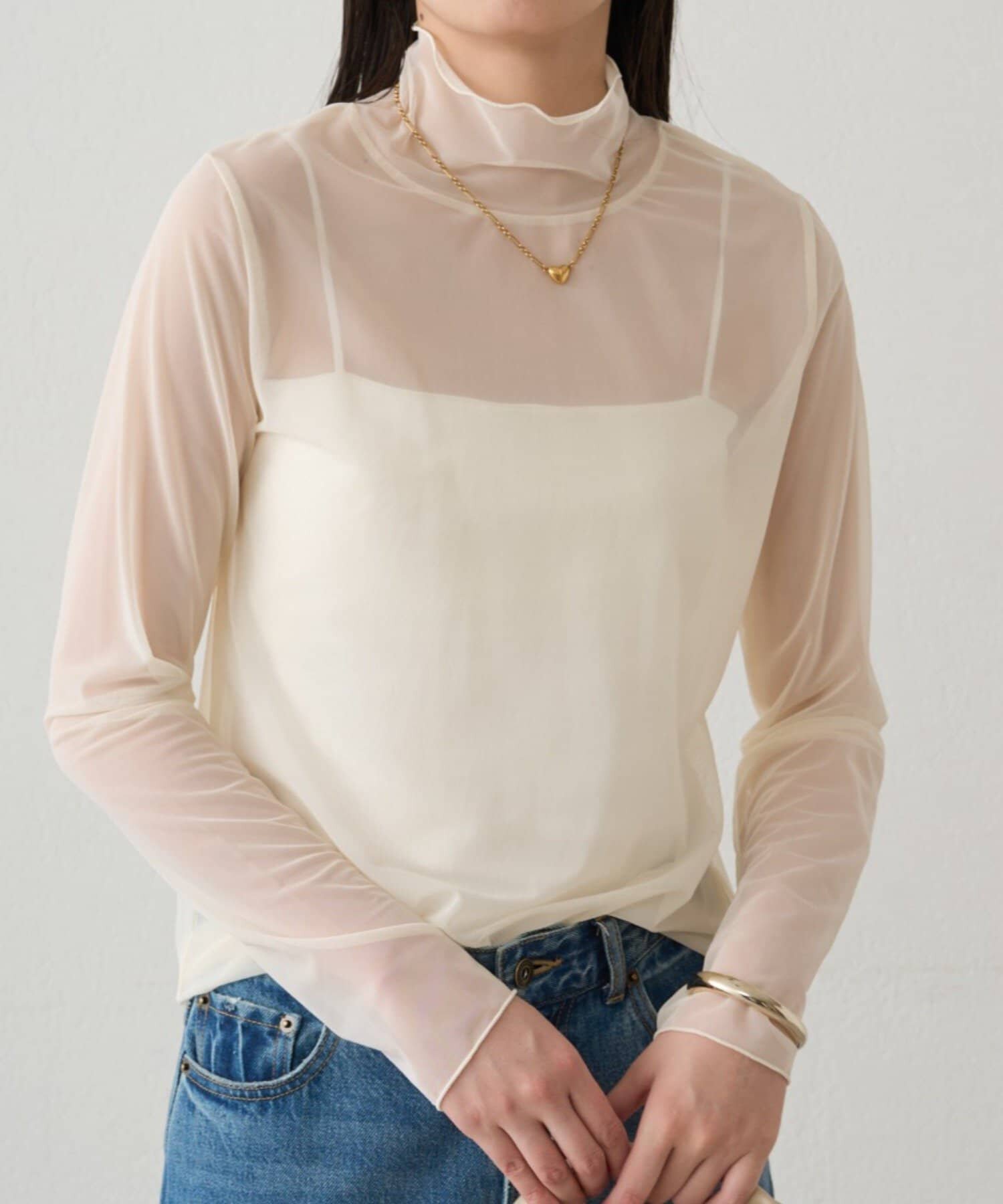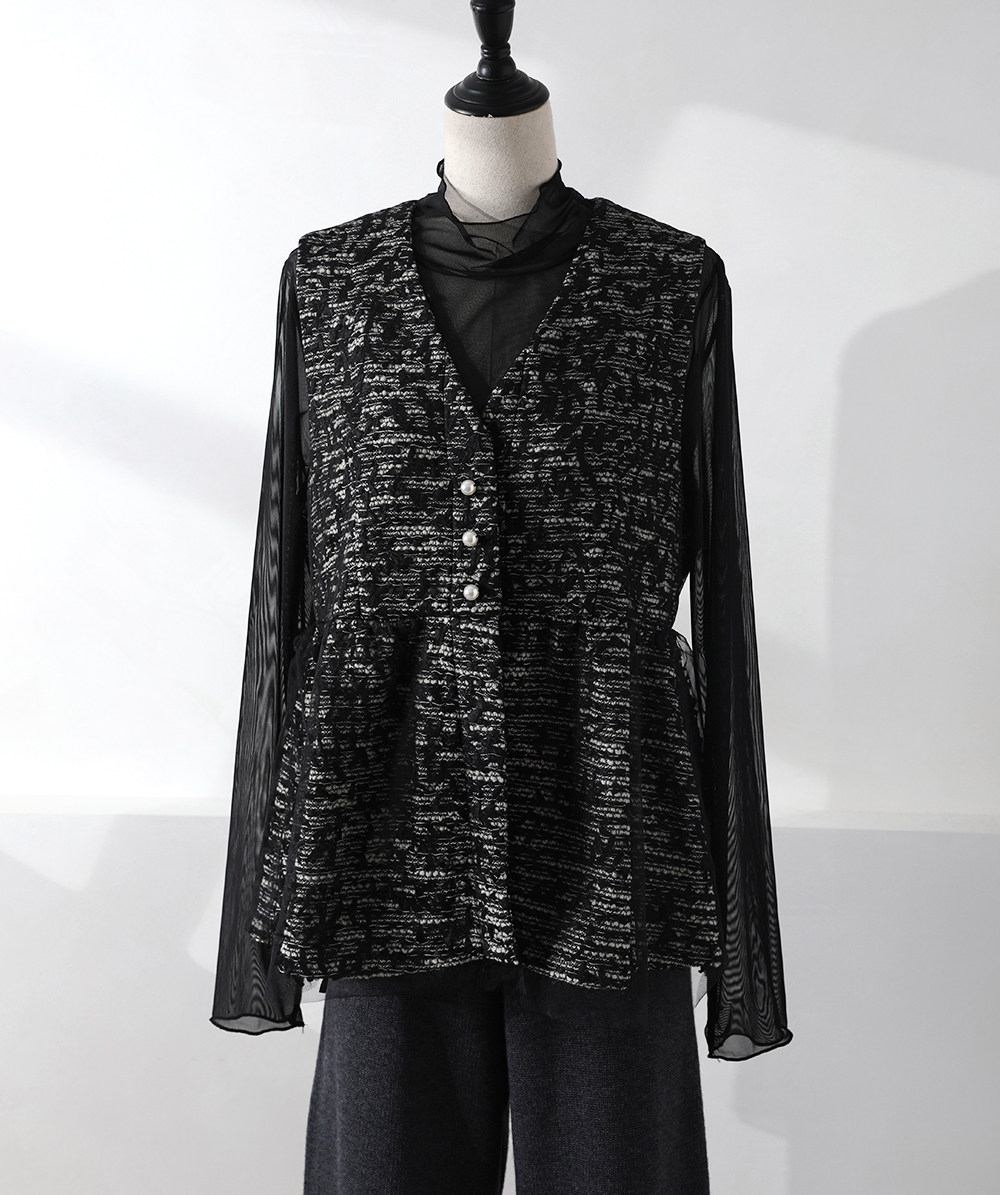 ZOEYJA佐佐家 LD巧妙展現肌膚之美 精緻荷葉領別致層次薄紗打底衫