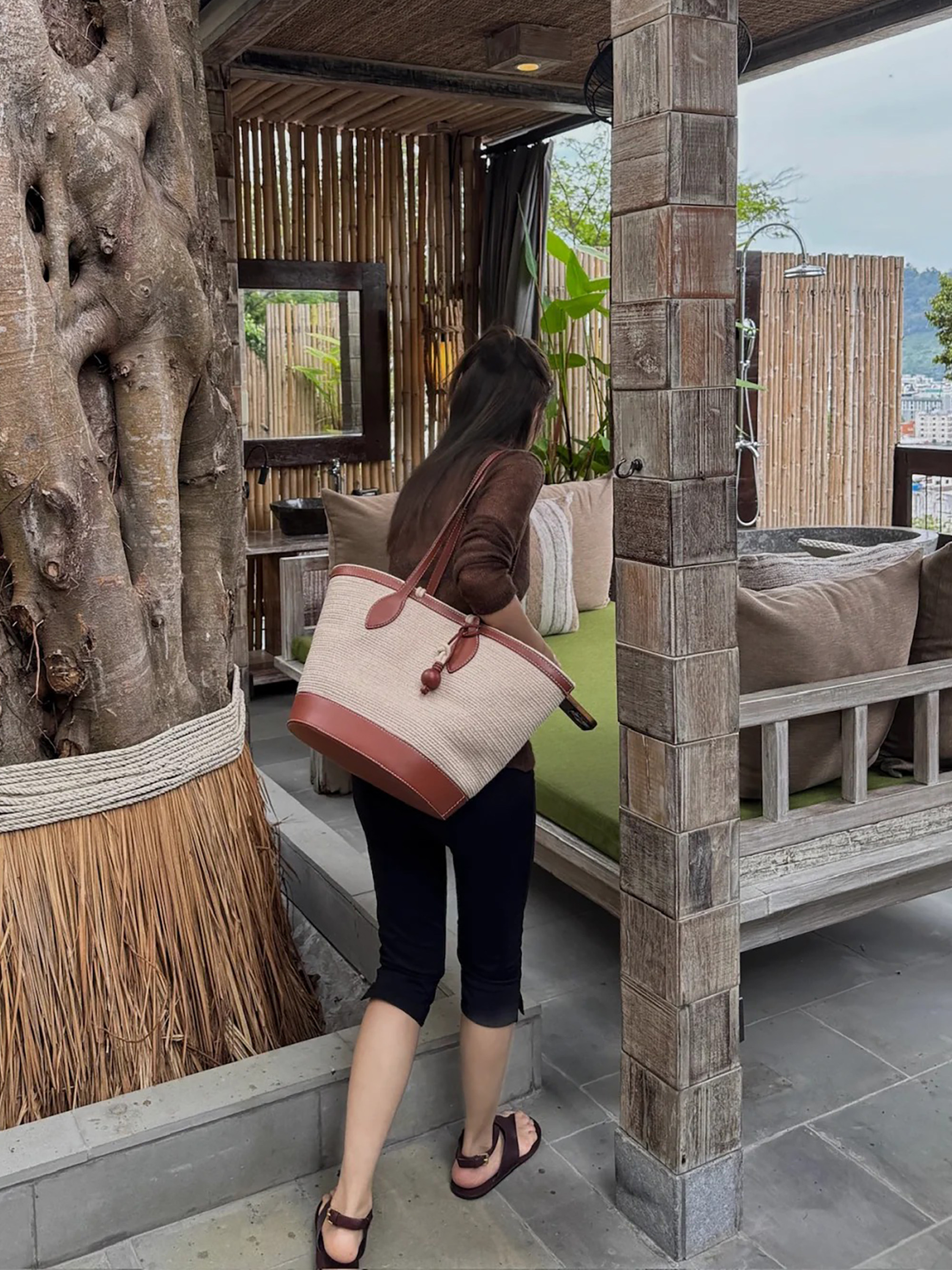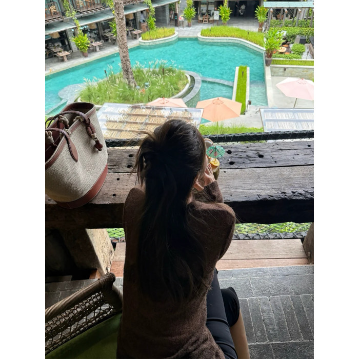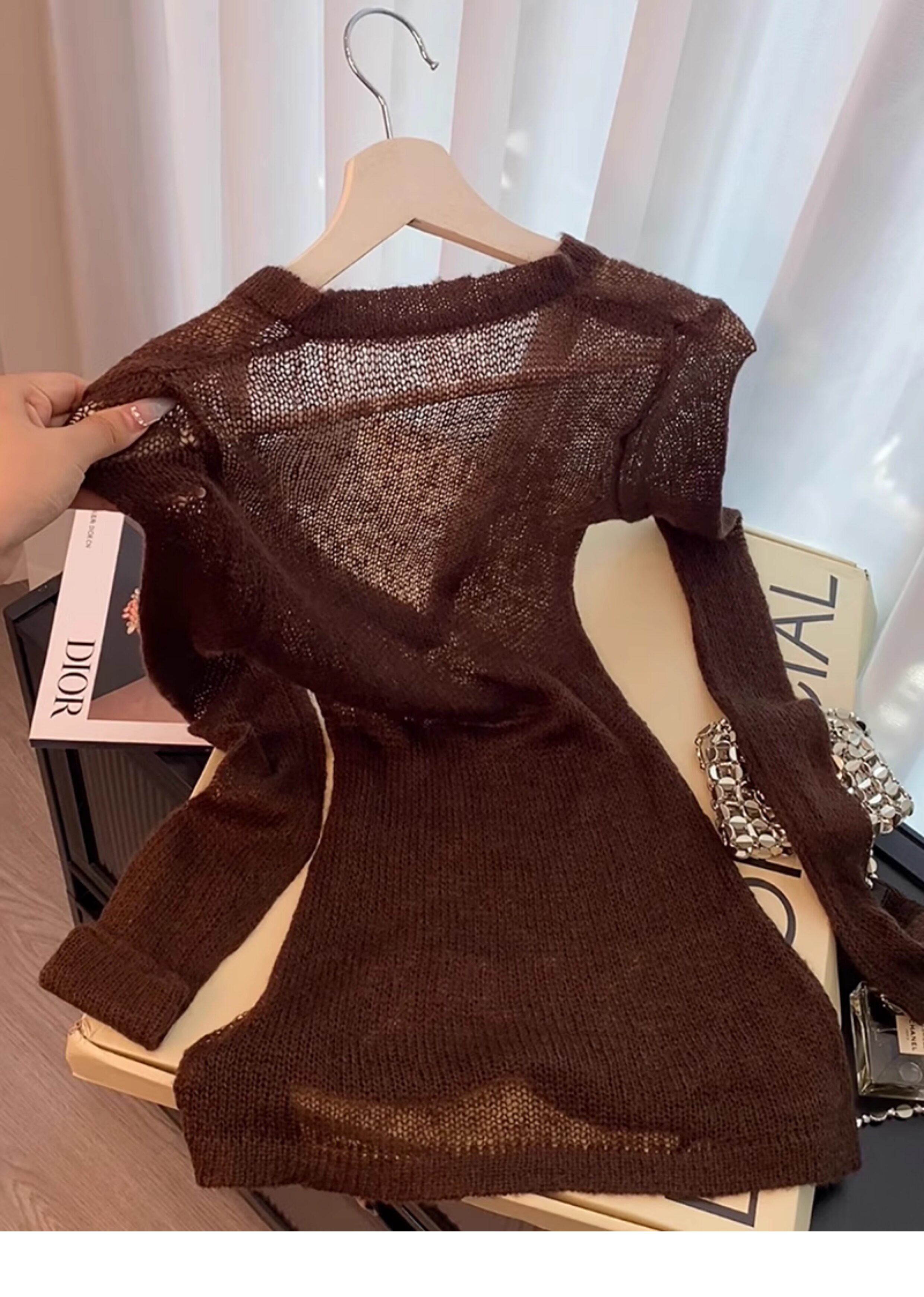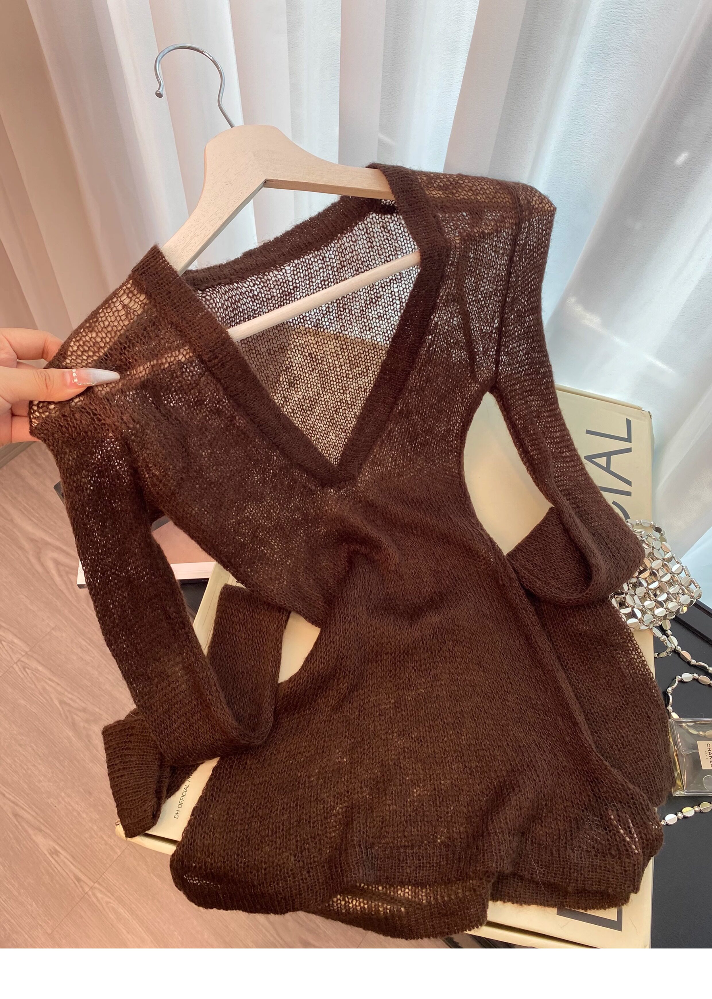 復古咖色V領針織防曬罩衫女夏季新款高級感松弛老錢百搭長袖上衣
