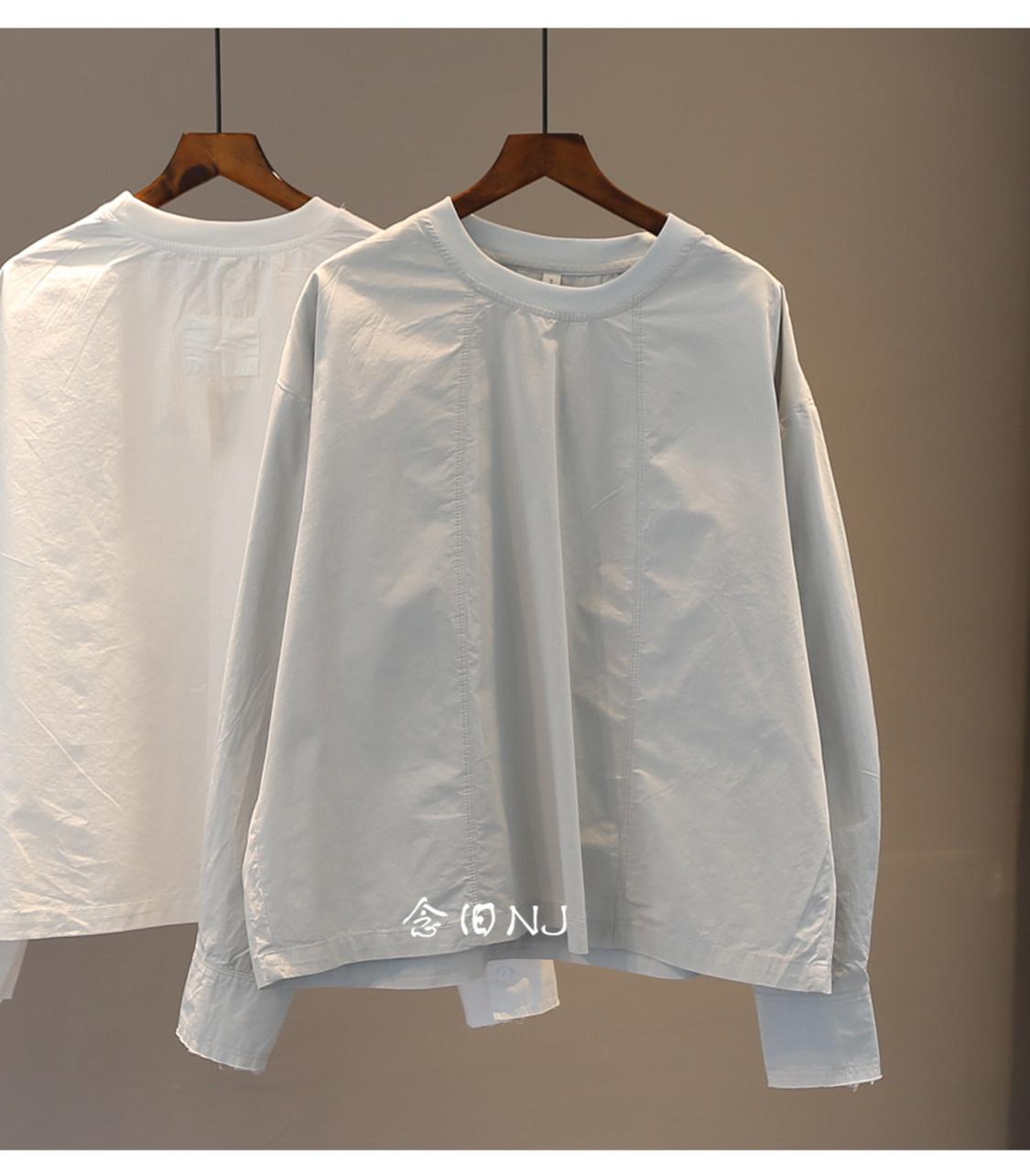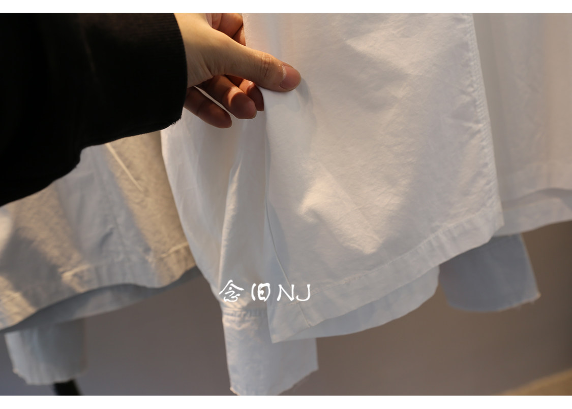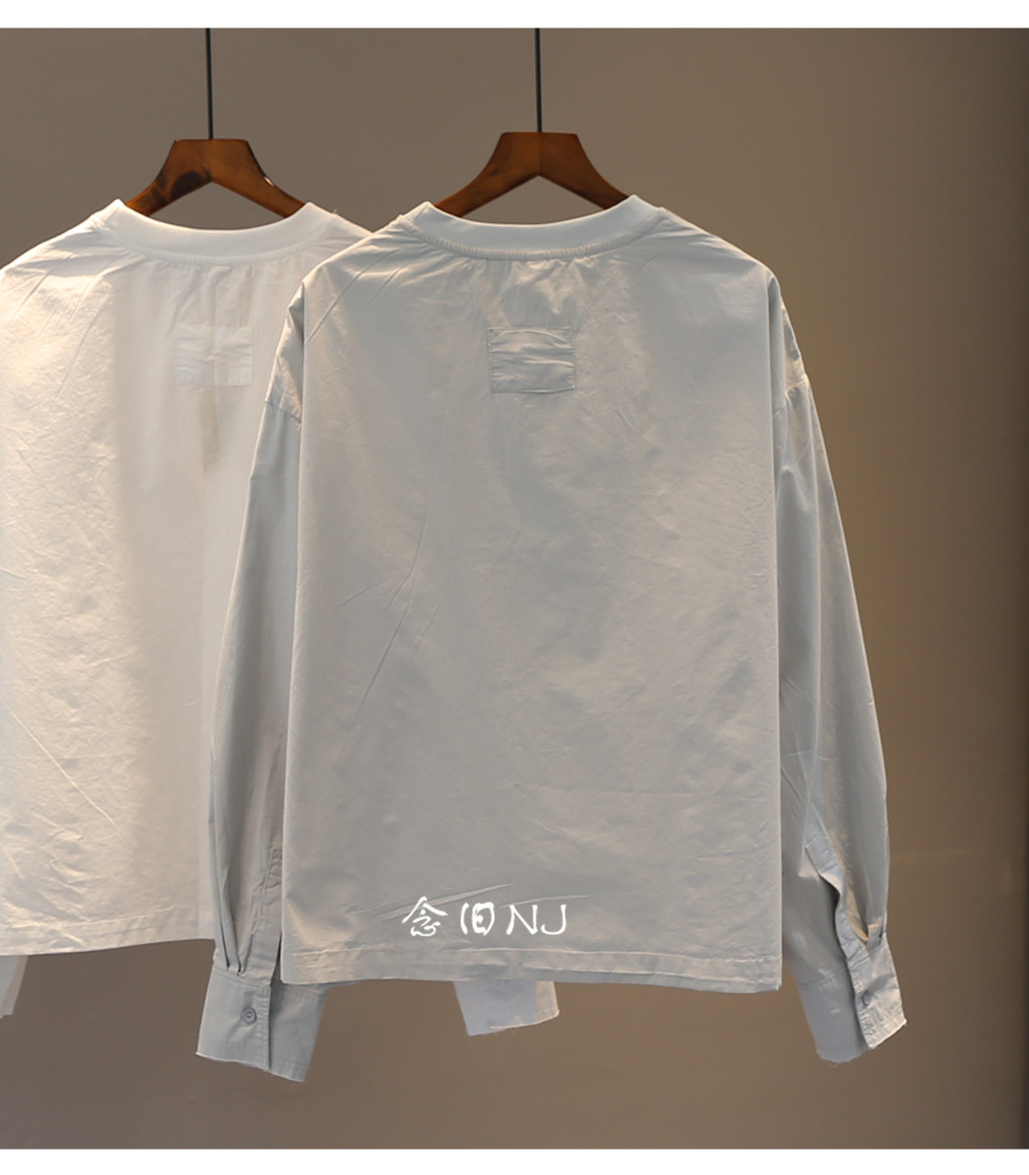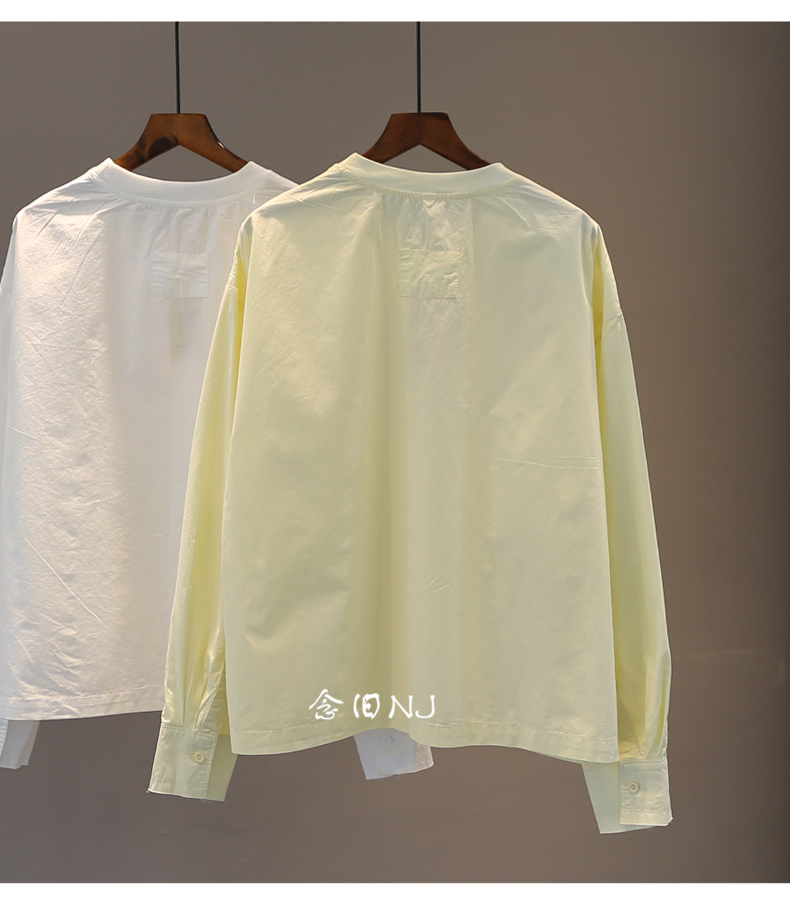 春季2026時尚百搭毛邊襯衫女純色寬鬆大碼休閒圓領舒適棉料上衣潮