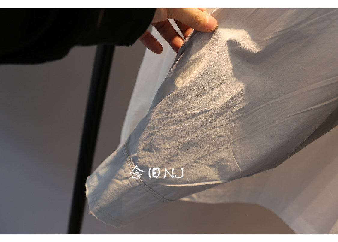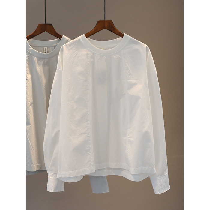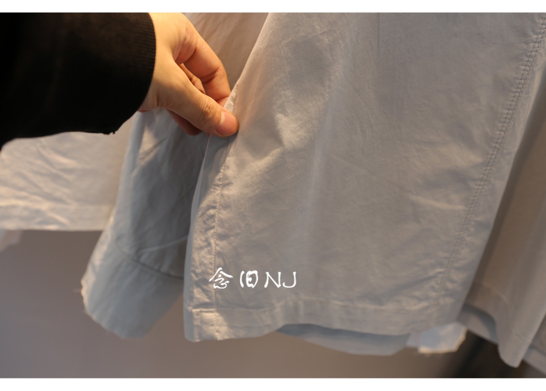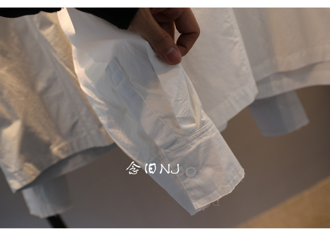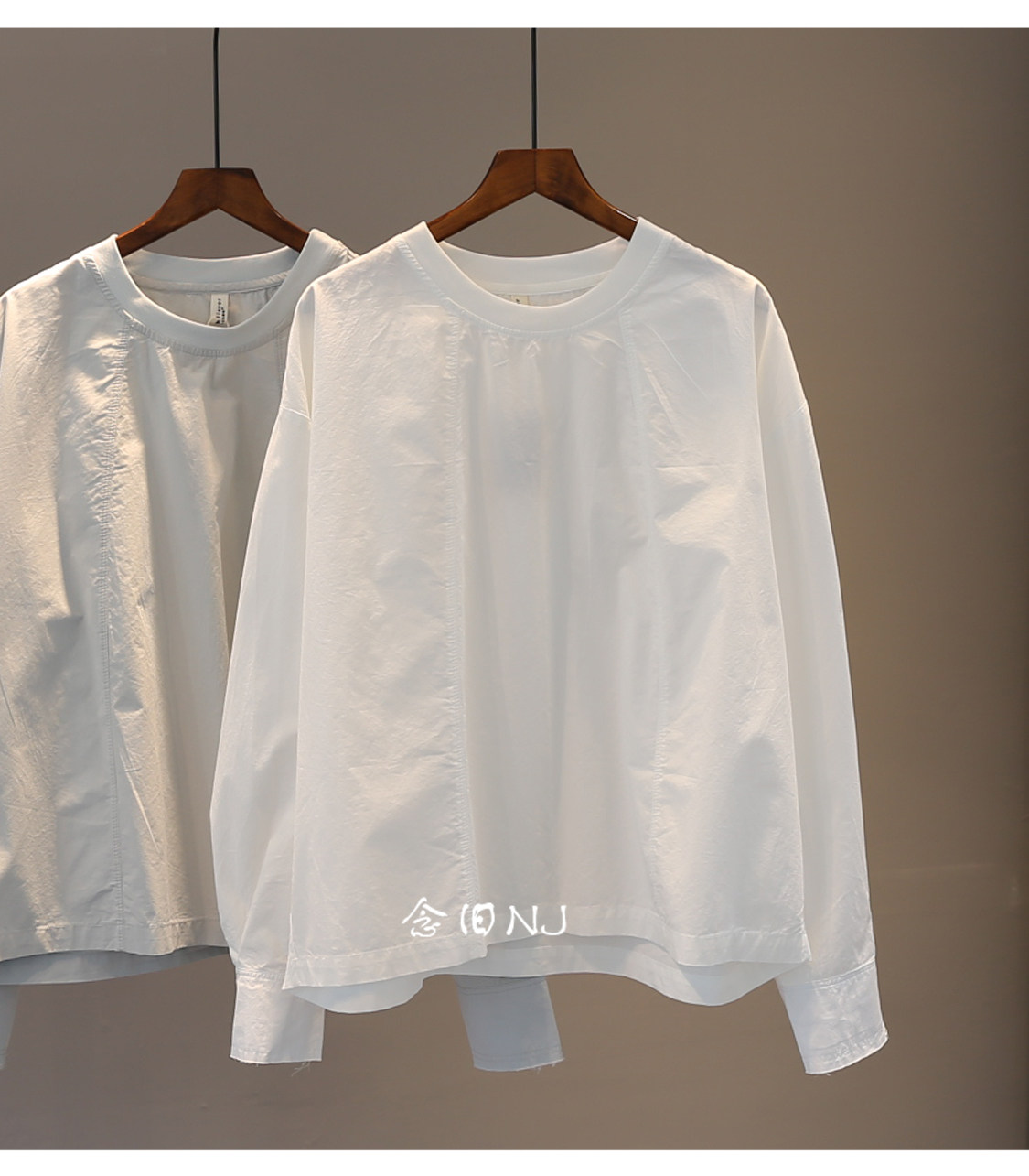 春季2026時尚百搭毛邊襯衫女純色寬鬆大碼休閒圓領舒適棉料上衣潮
