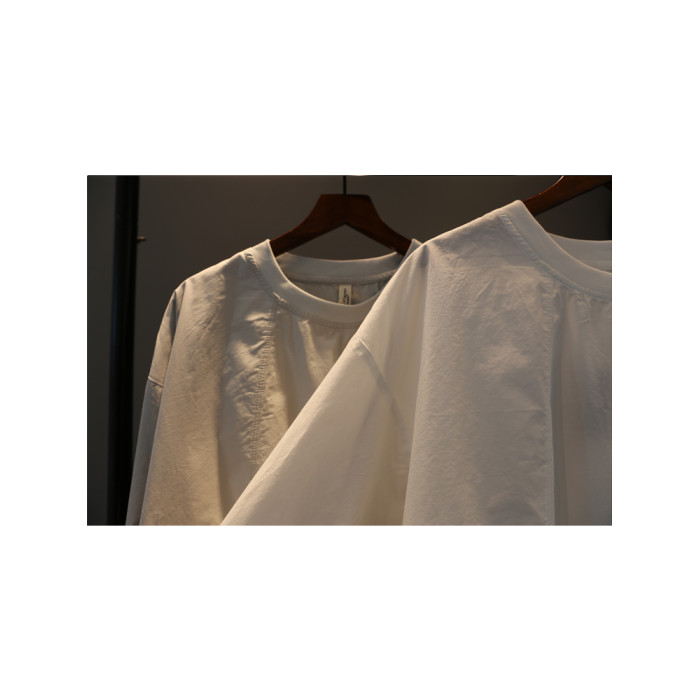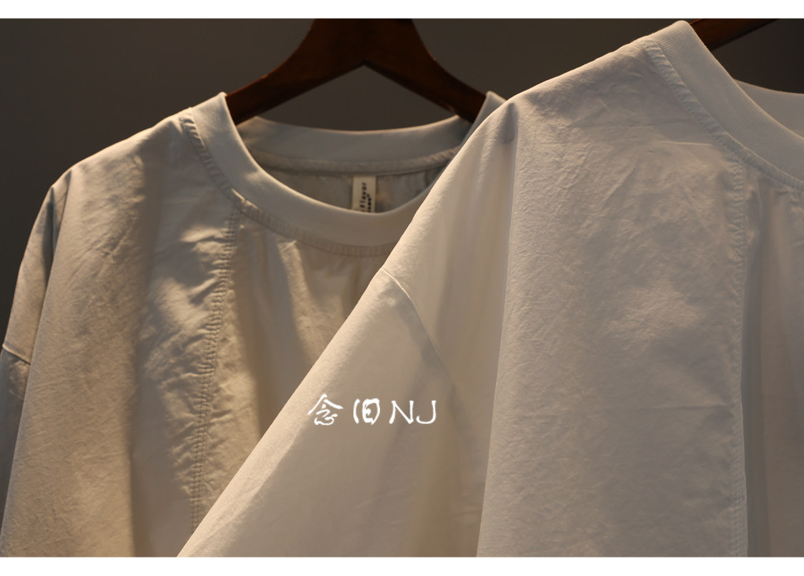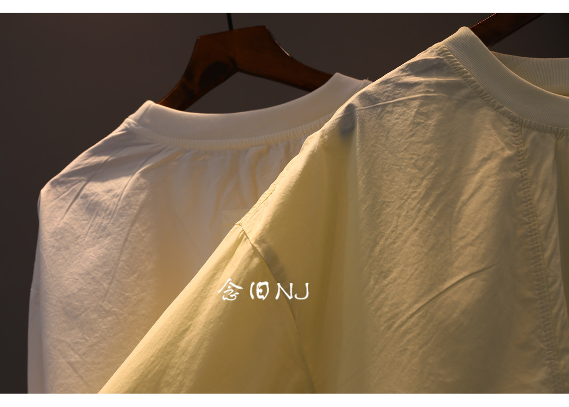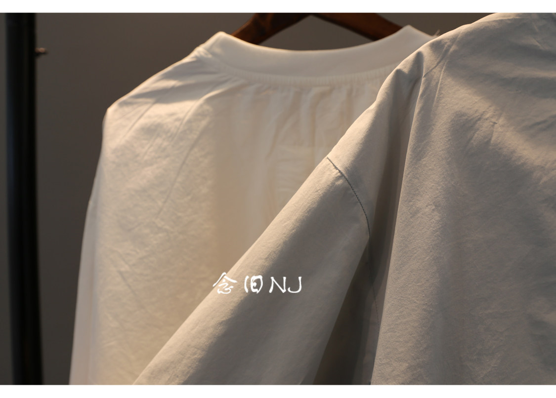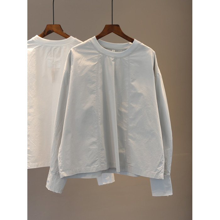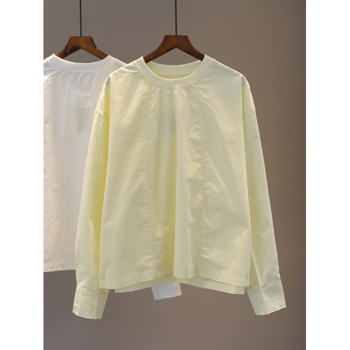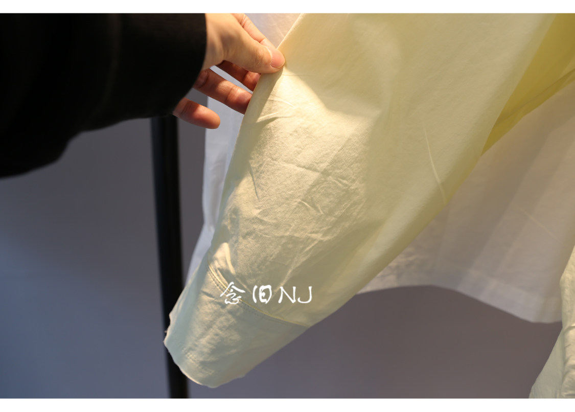 春季2026時尚百搭毛邊襯衫女純色寬鬆大碼休閒圓領舒適棉料上衣潮