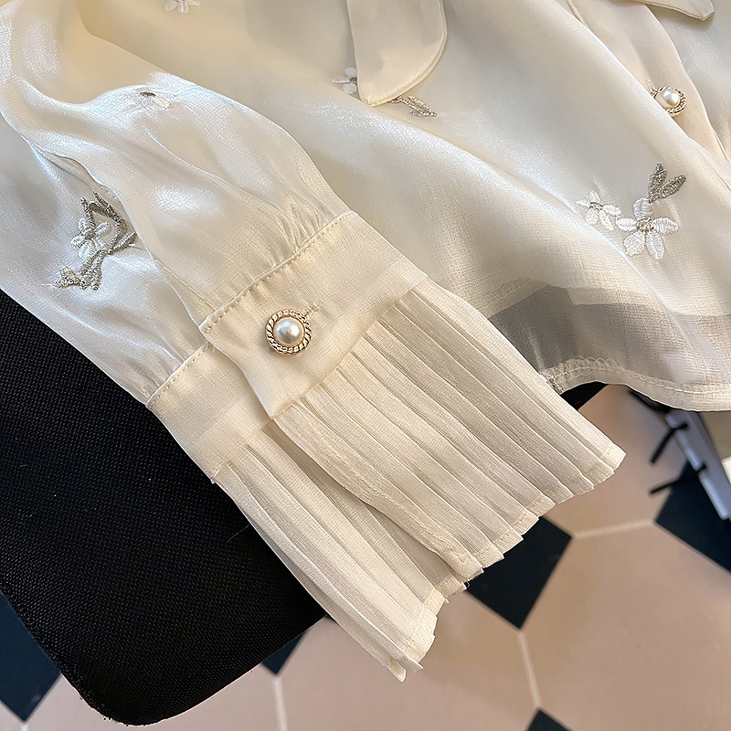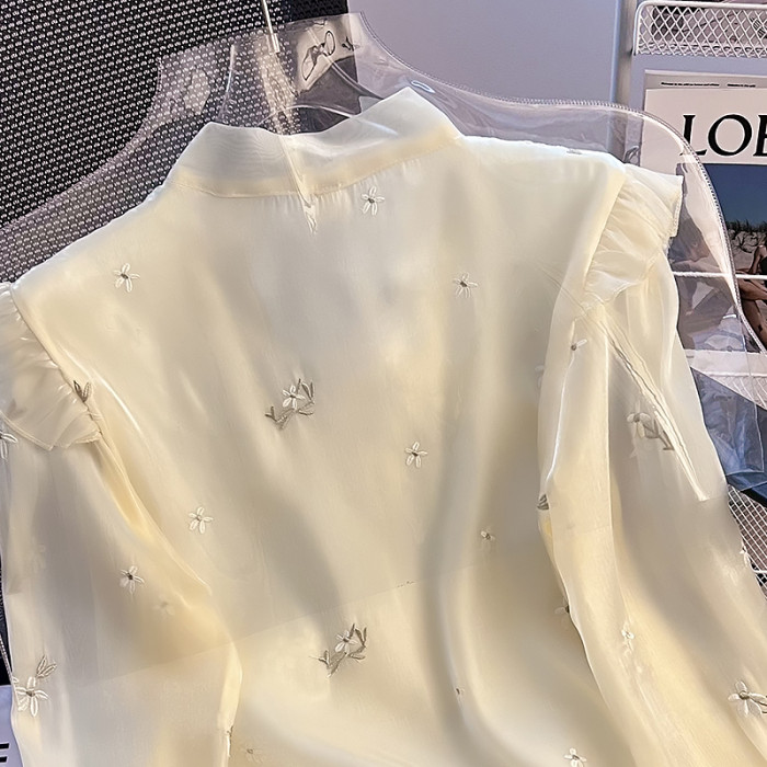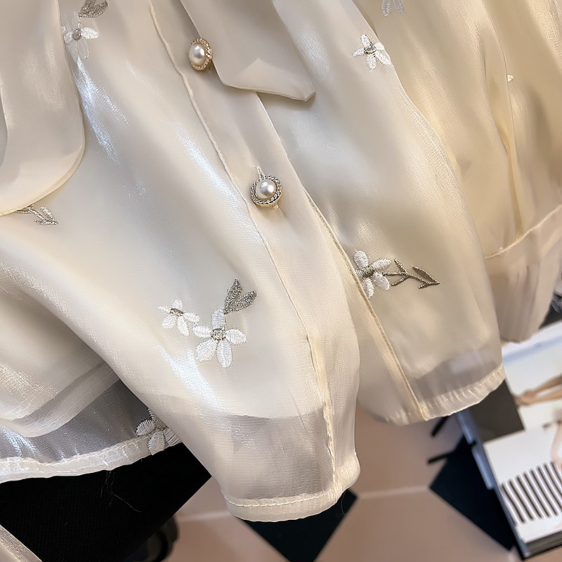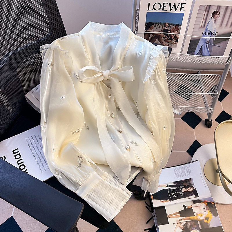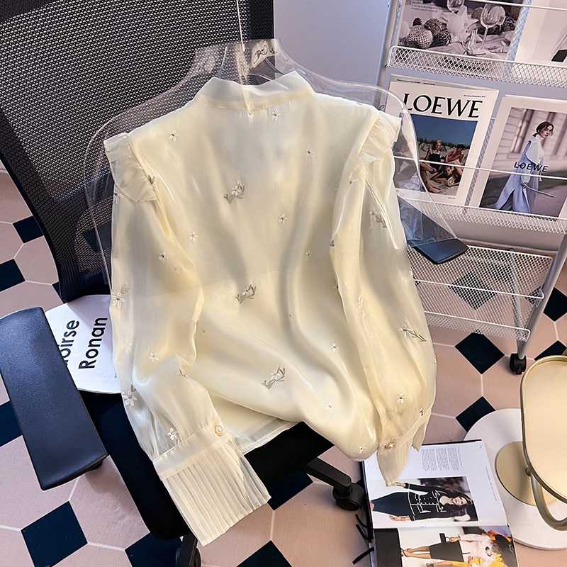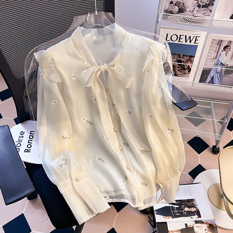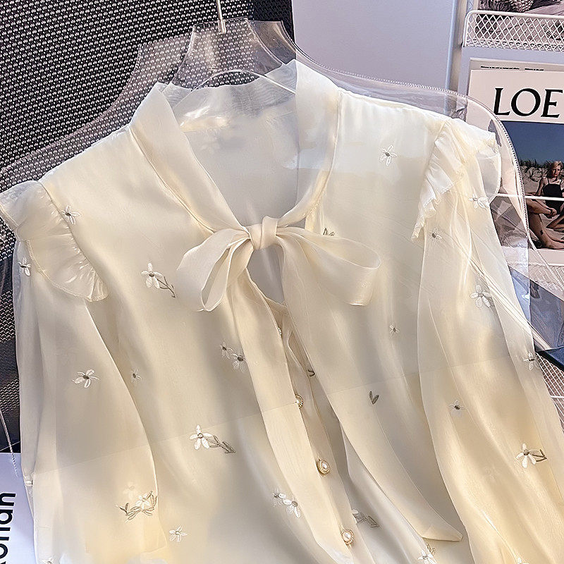專櫃撤廻!蝴蝶結刺綉高級感襯衫女春季新款設計感小衆歐根紗上衣