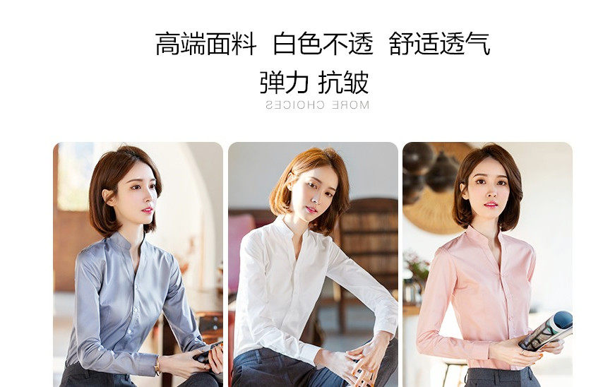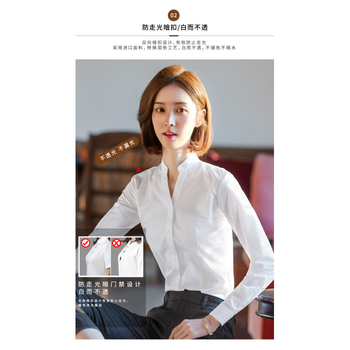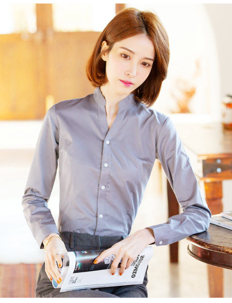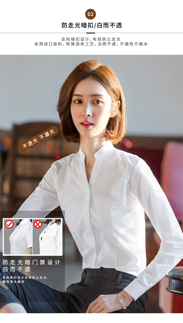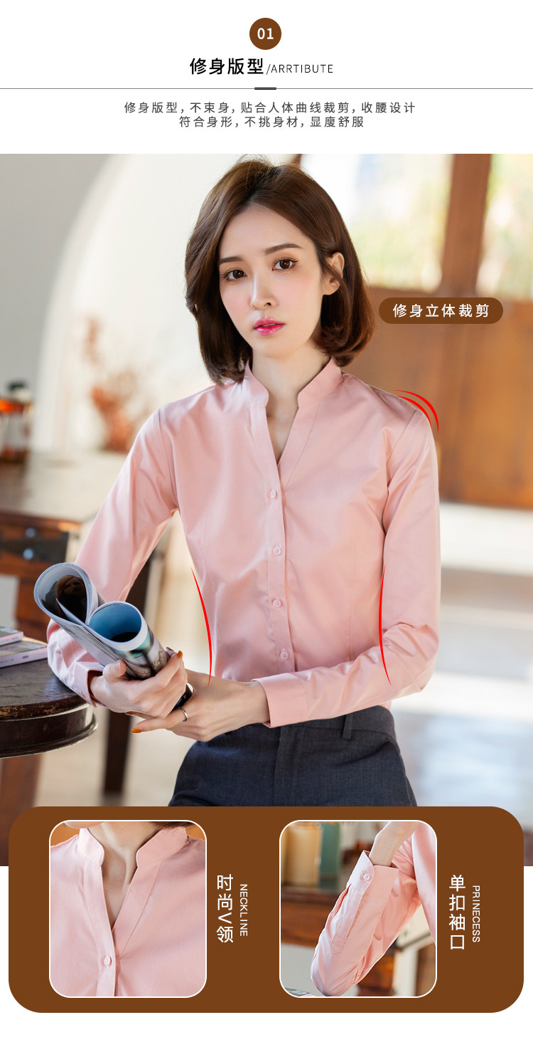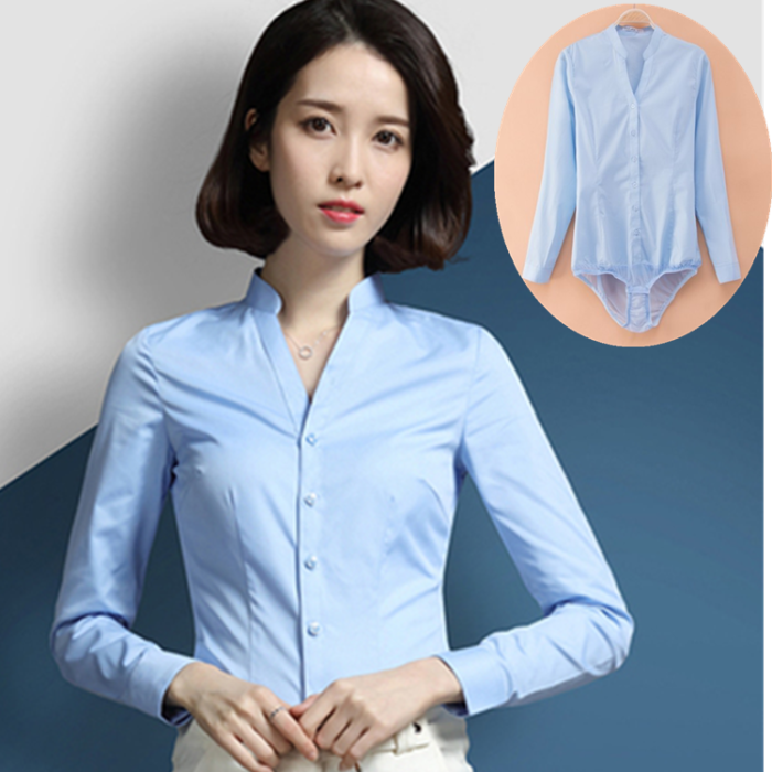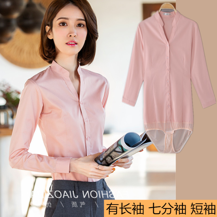 高級長袖連體襯衫女V立領職業工作裝連褲襯衣彈力公務員教師面試