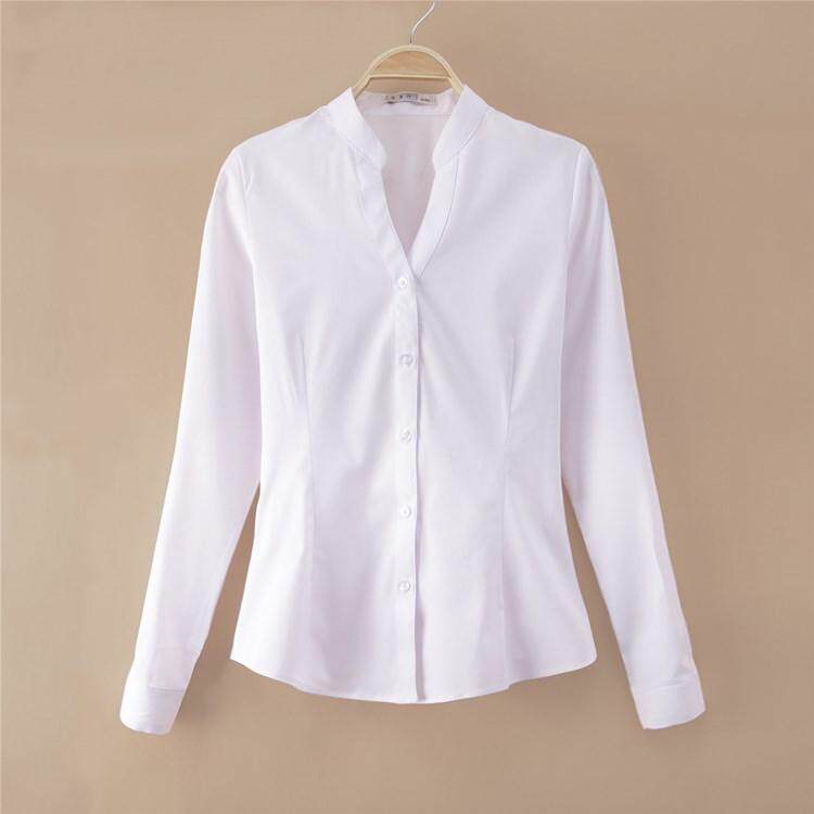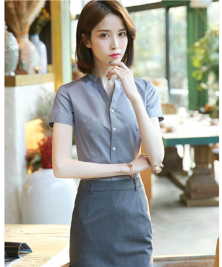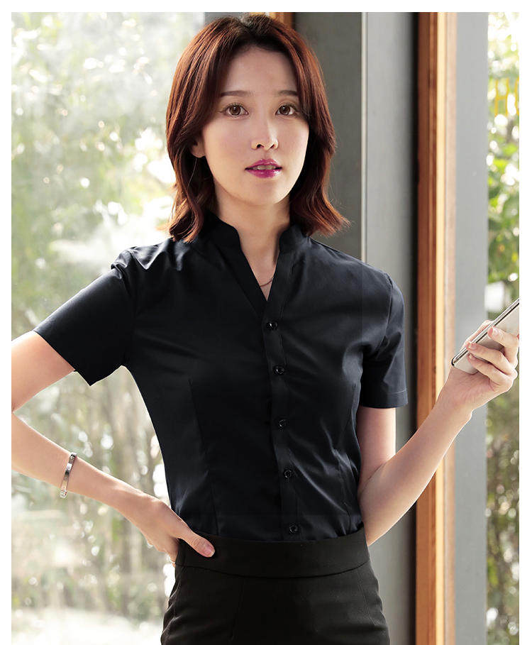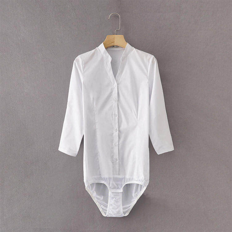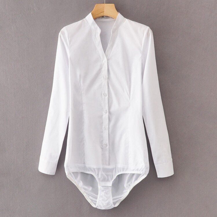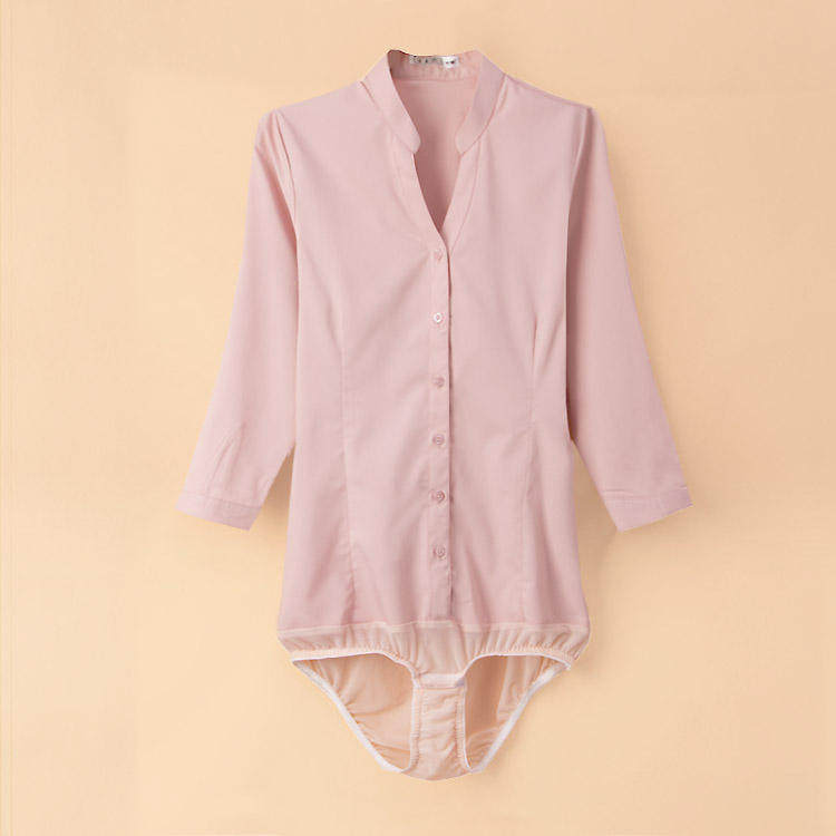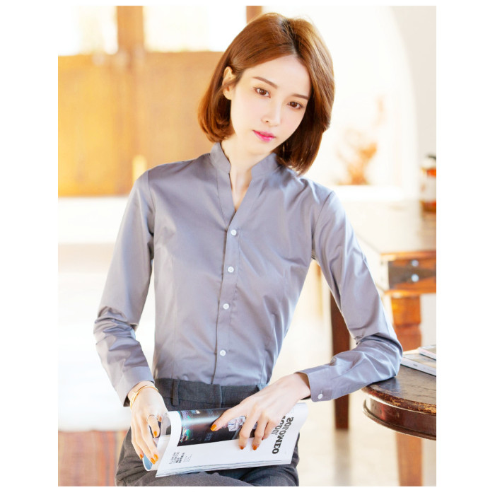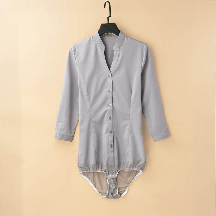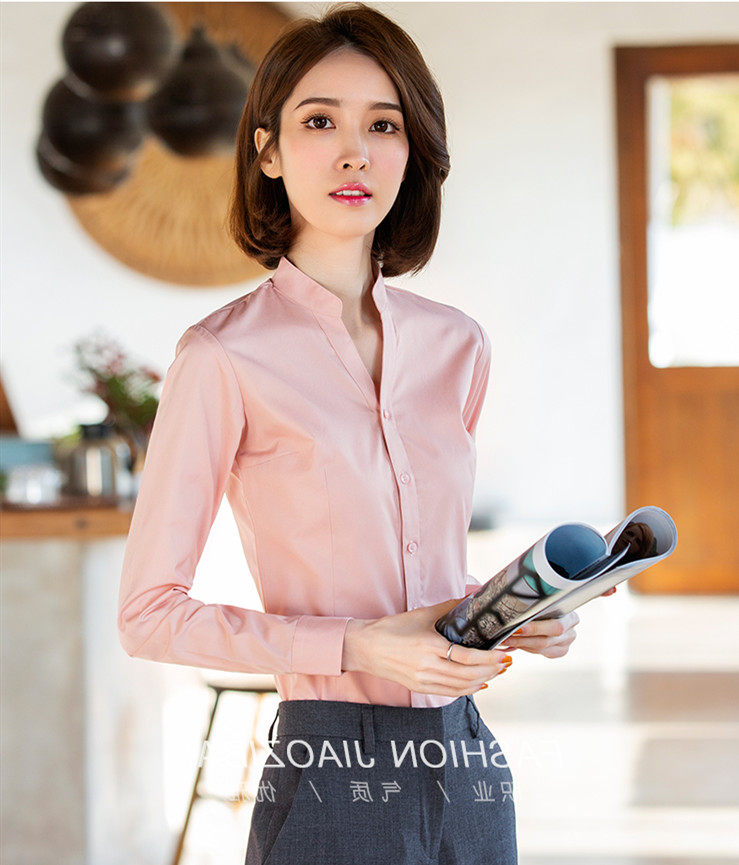 高級長袖連體襯衫女V立領職業工作裝連褲襯衣彈力公務員教師面試