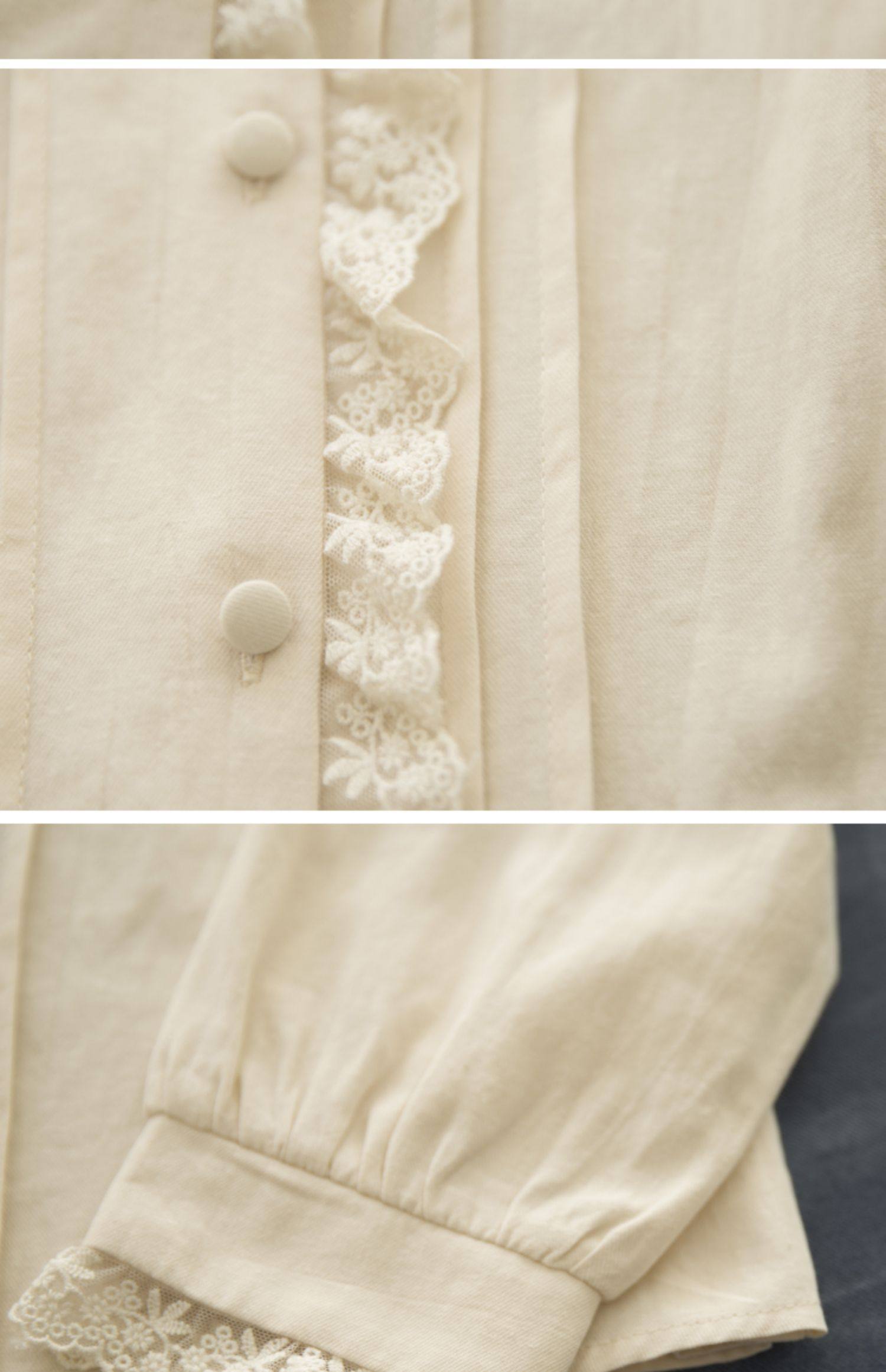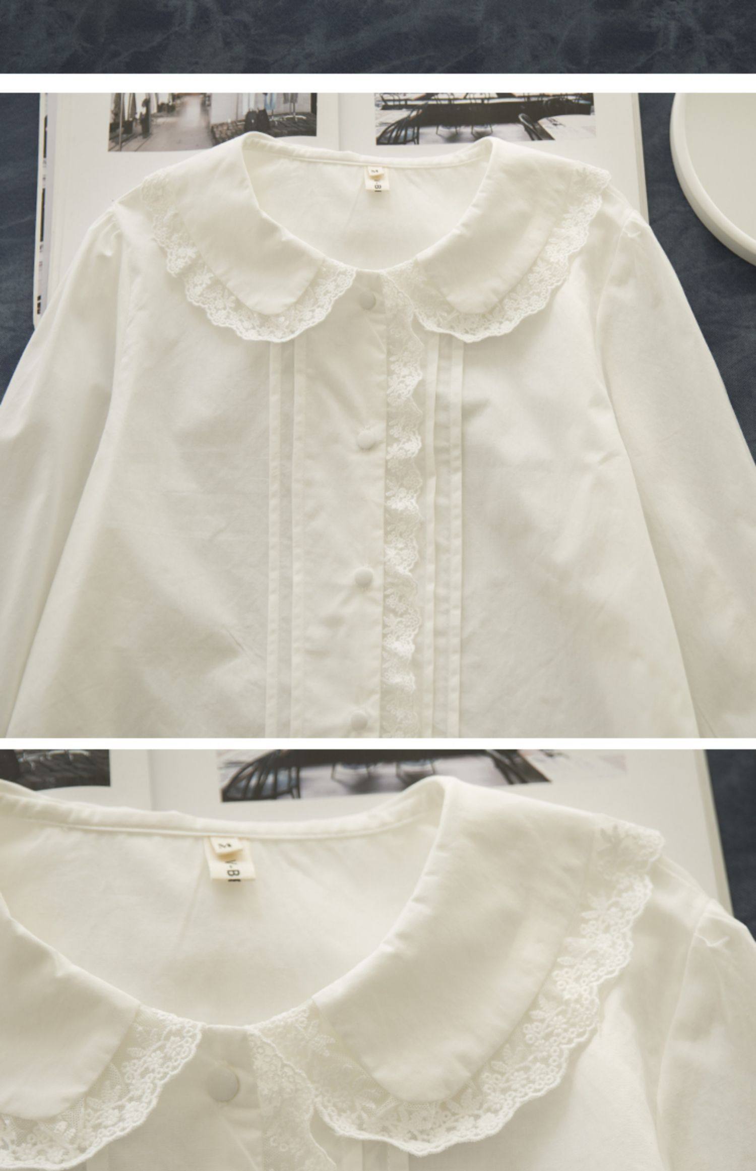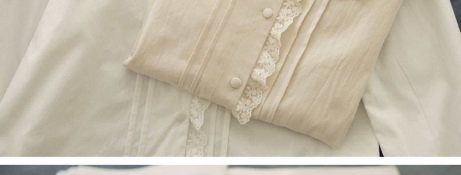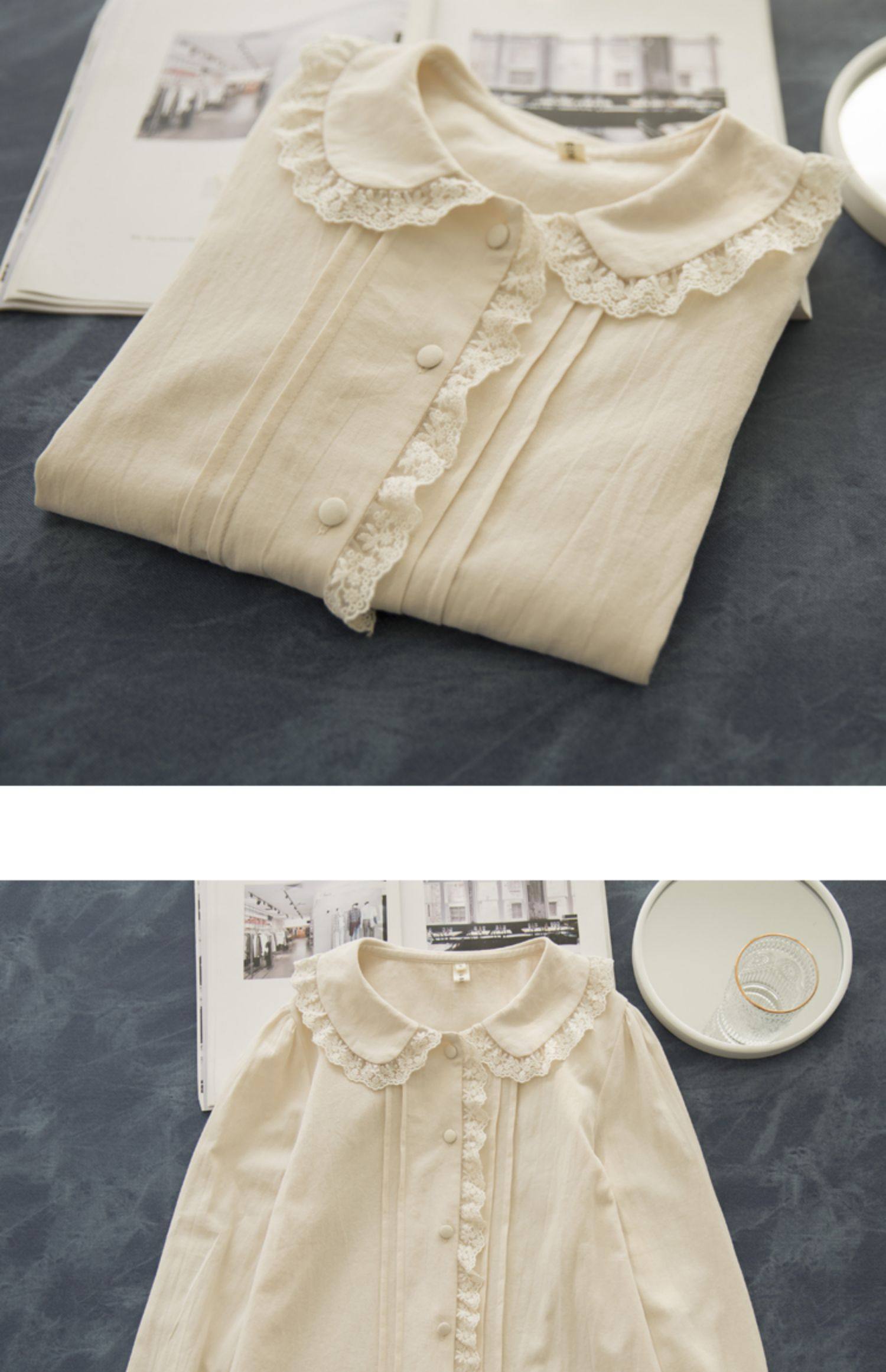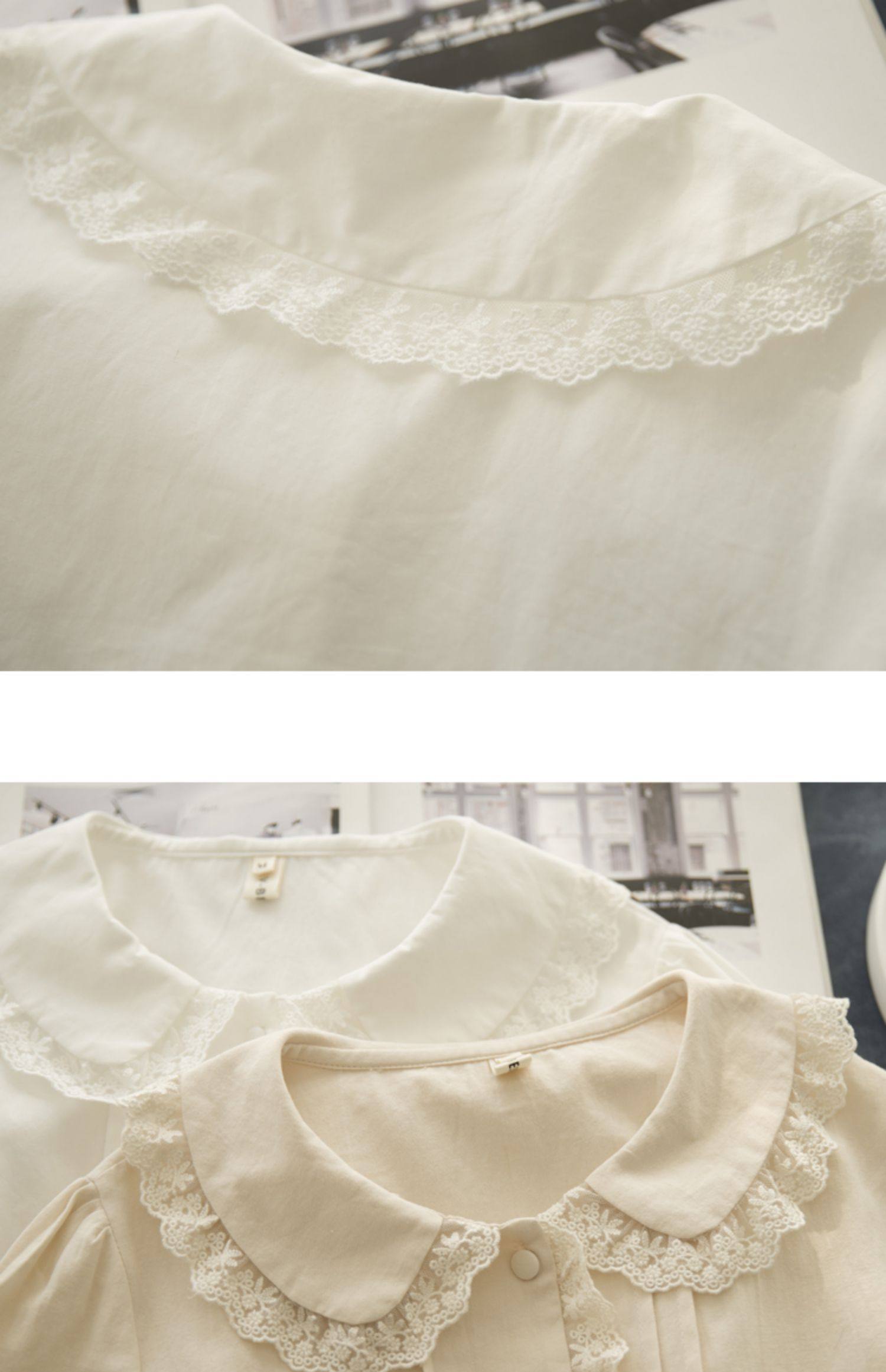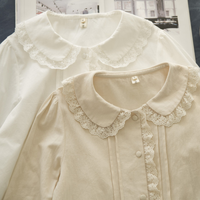 半糖松餅 春法式復古韓版甜美蕾絲花邊領百搭長袖純色內搭襯衫女