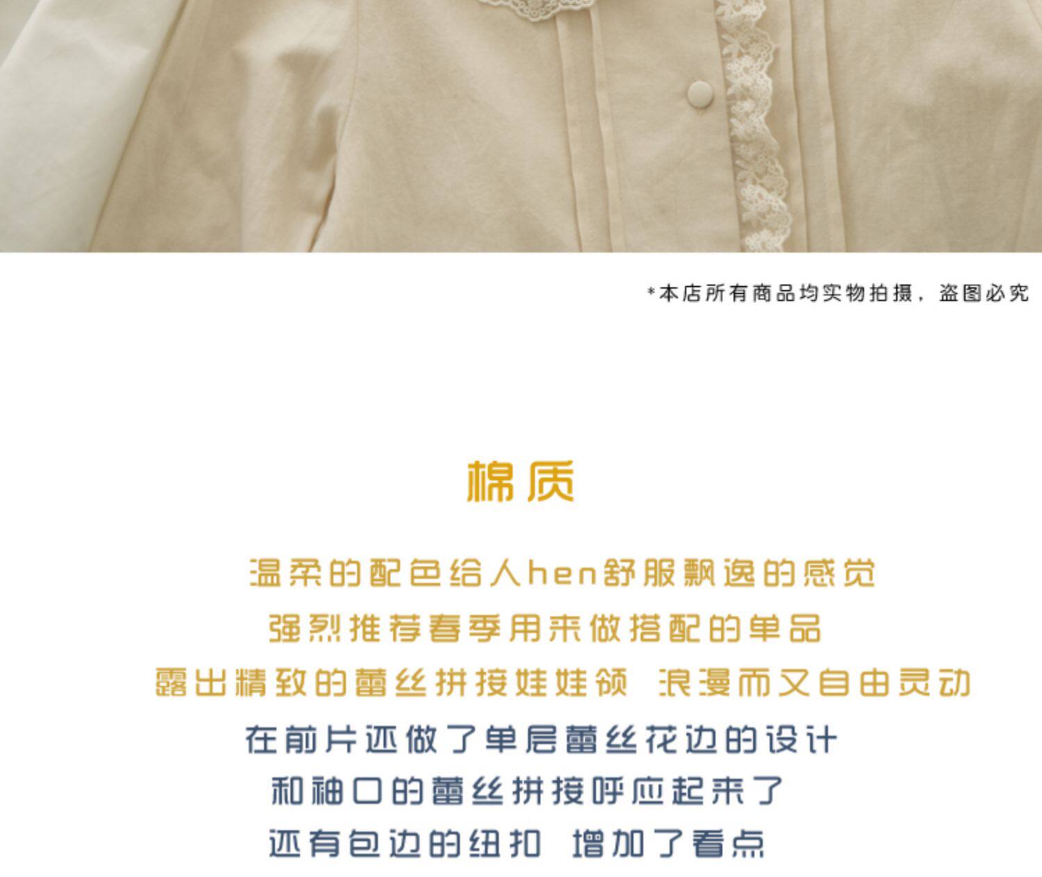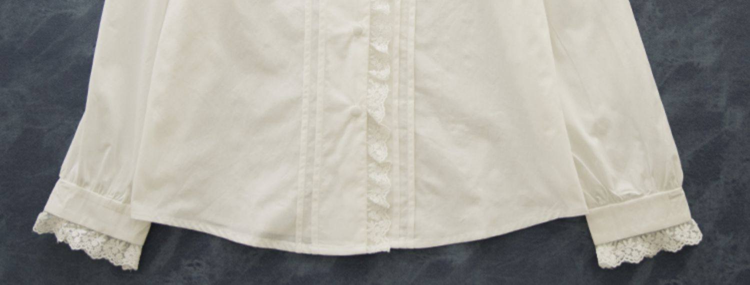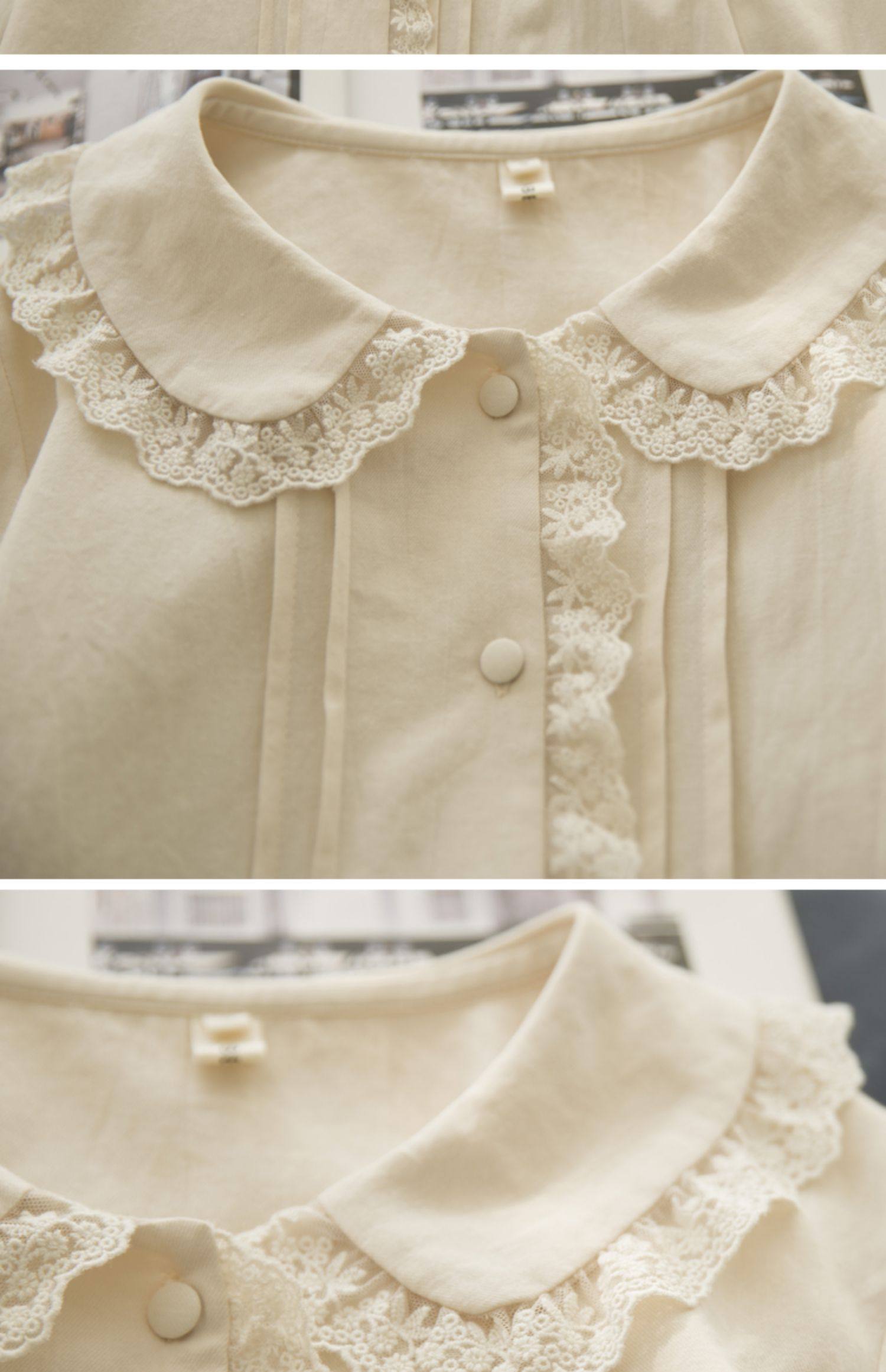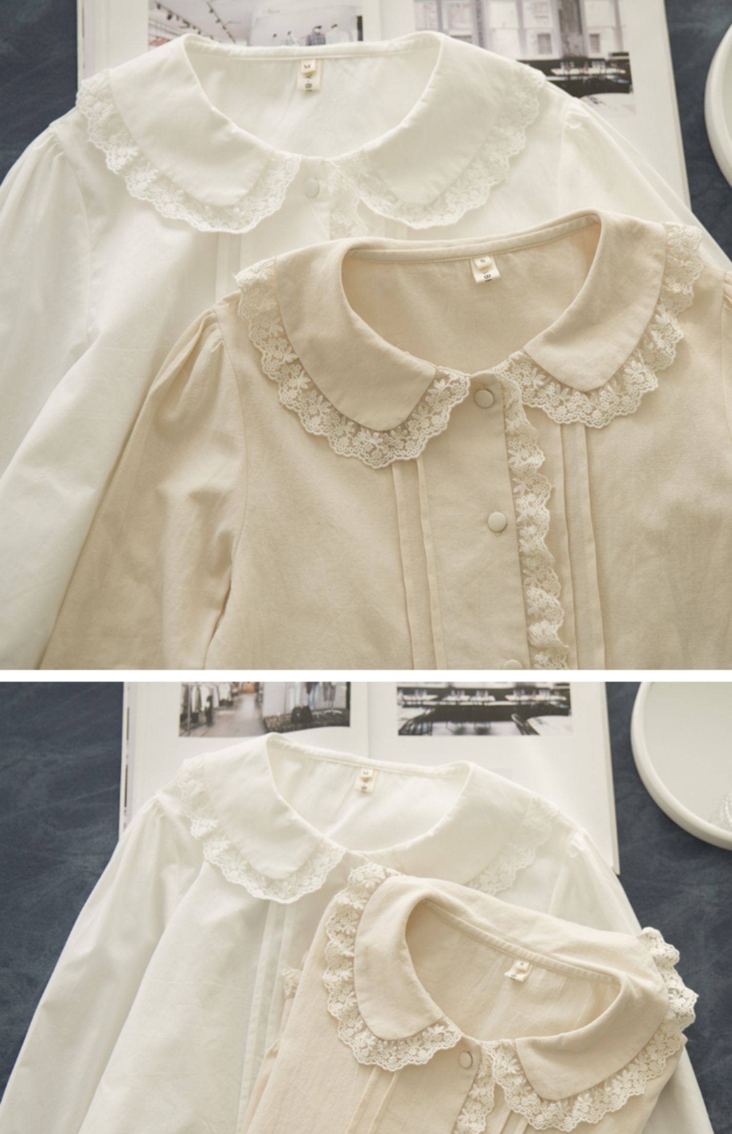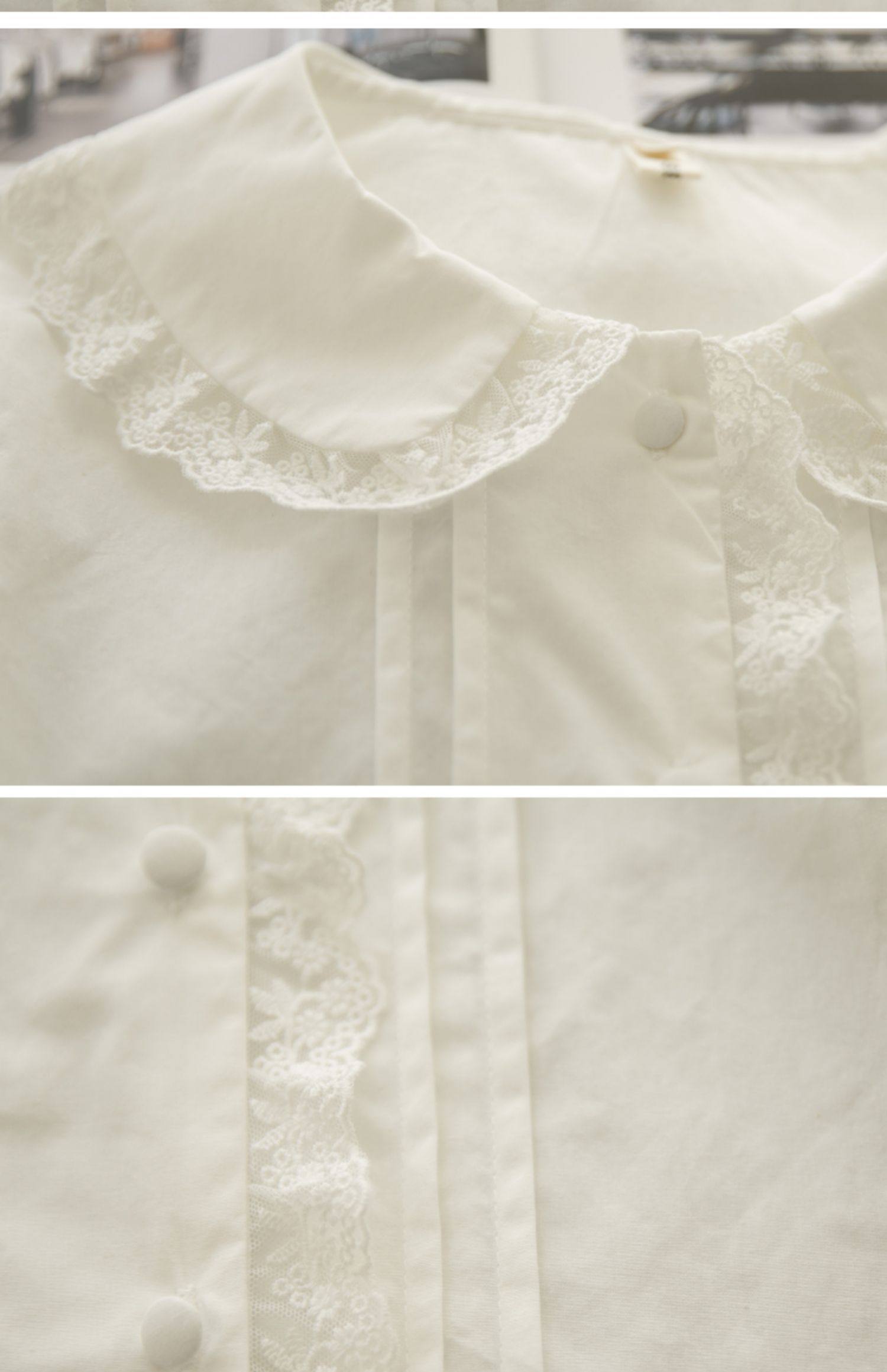 半糖松餅 春法式復古韓版甜美蕾絲花邊領百搭長袖純色內搭襯衫女