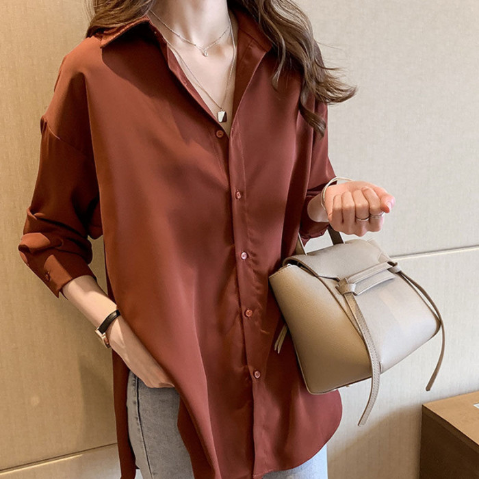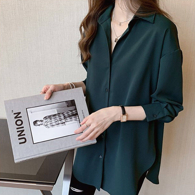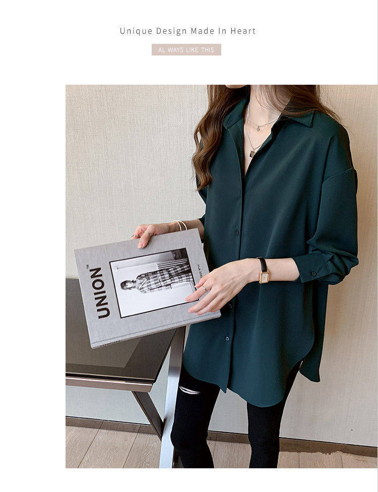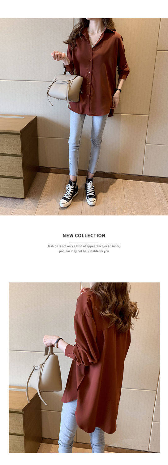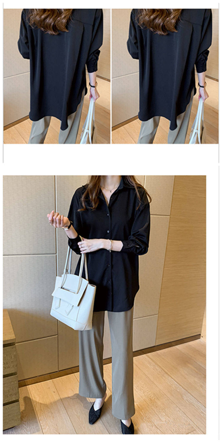 mm寬鬆中長款上衣遮肉打底襯衣大碼職業裝長袖雪紡襯衫女春秋裝胖