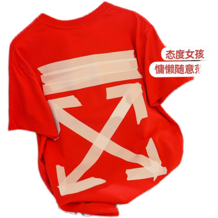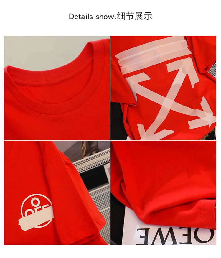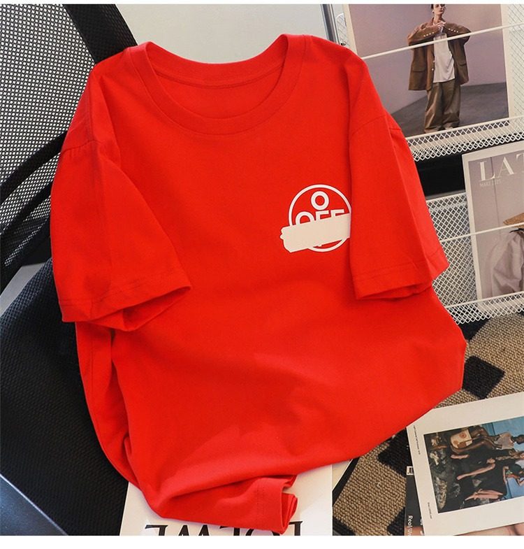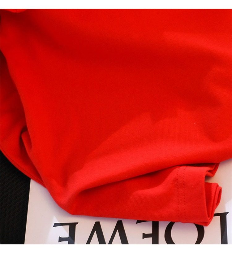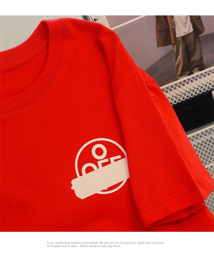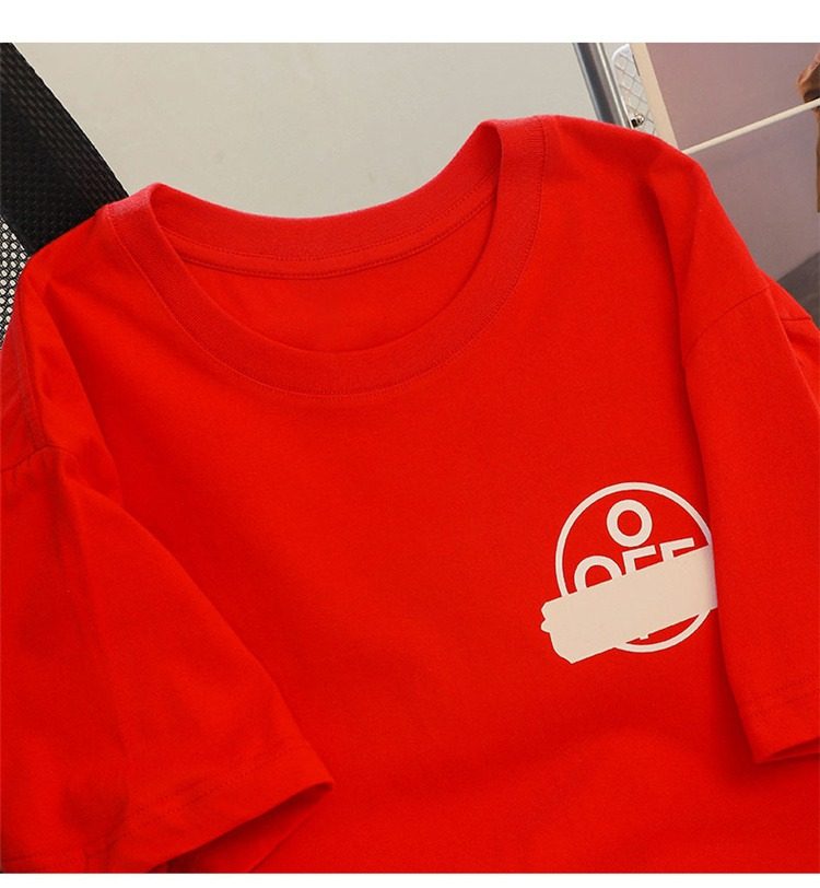 撿漏2025年夏季新款紅色元氣短袖T恤男女學生潮流寬鬆圓領情侶ins