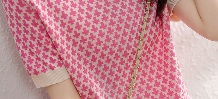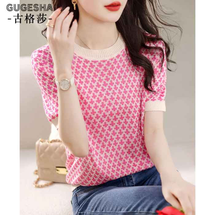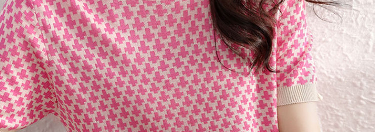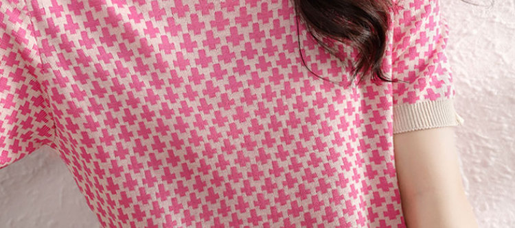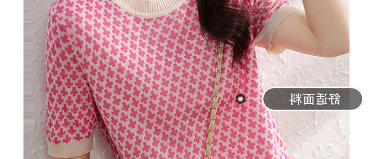小香風粉色短袖針織T恤女夏季韓版甜美淑女撞色顯瘦洋氣百搭上衣