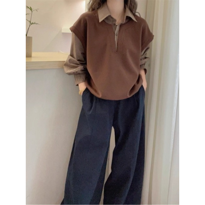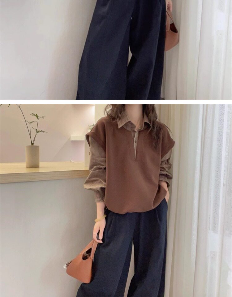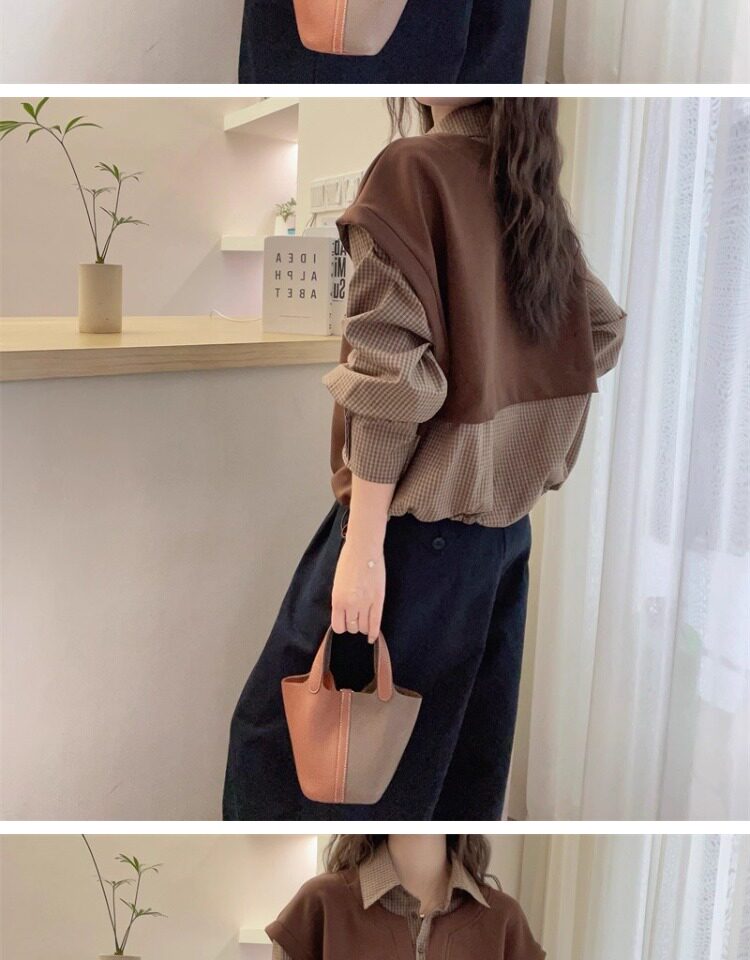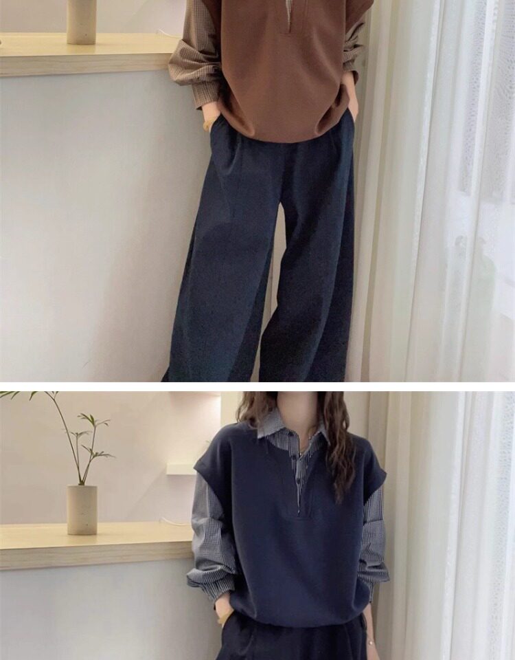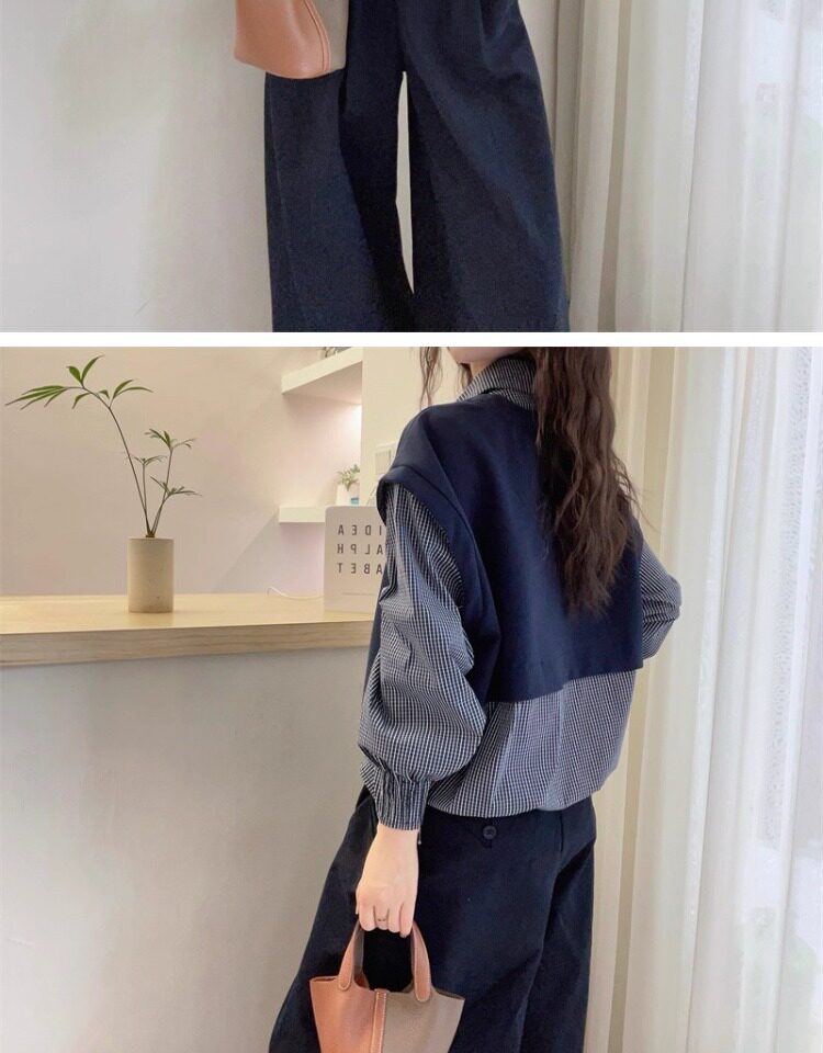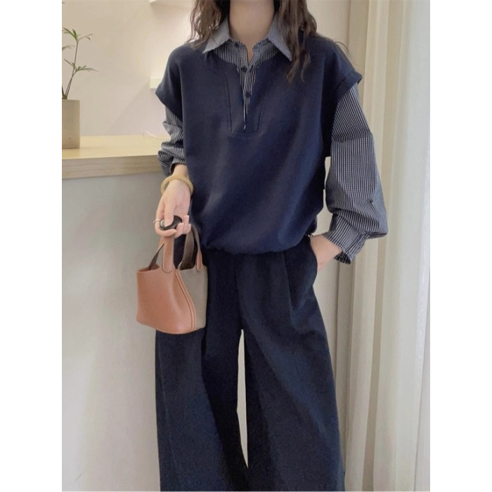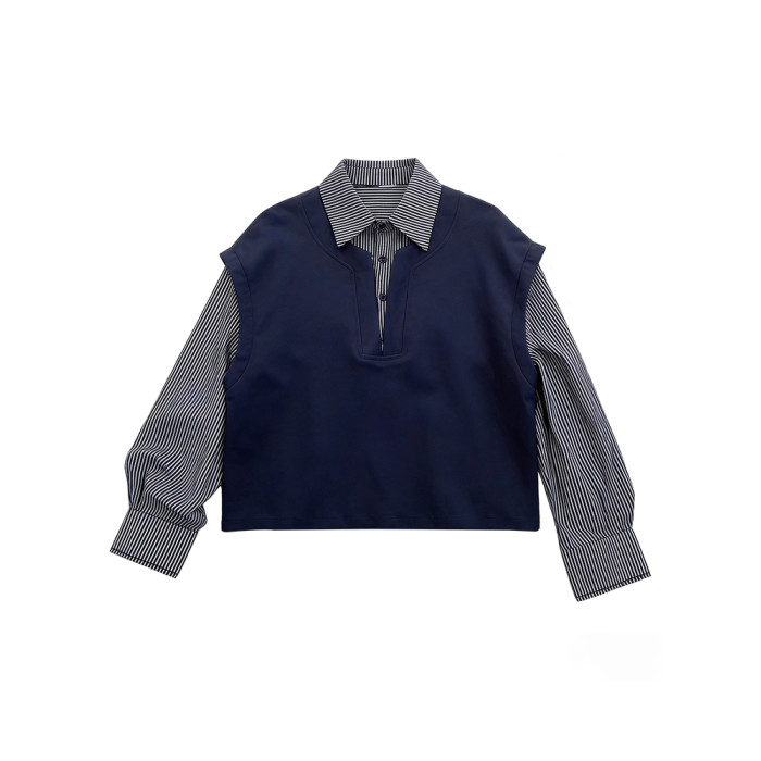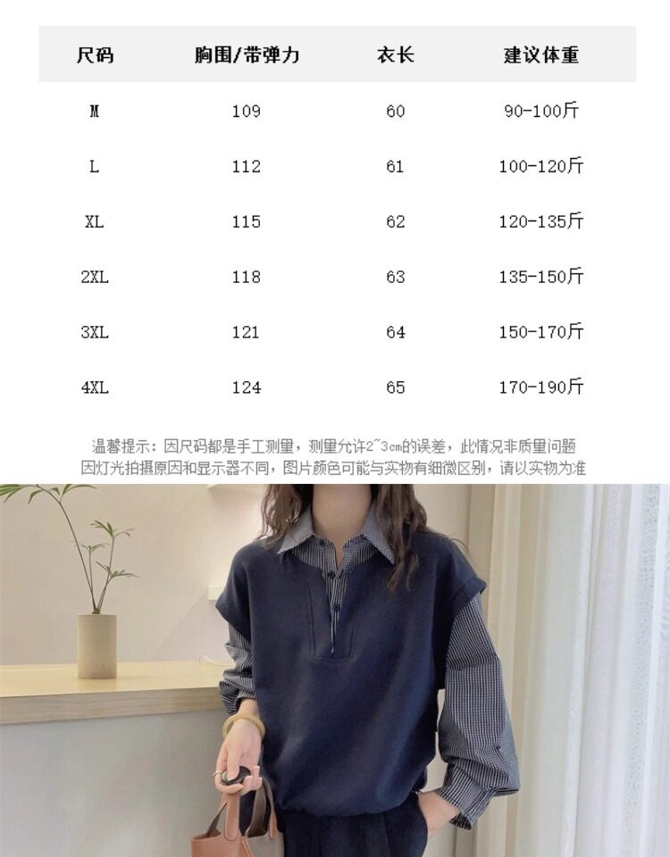 大碼假兩件條紋襯衫女長袖襯衣春季微胖mm遮肉顯瘦設計感拼接上衣