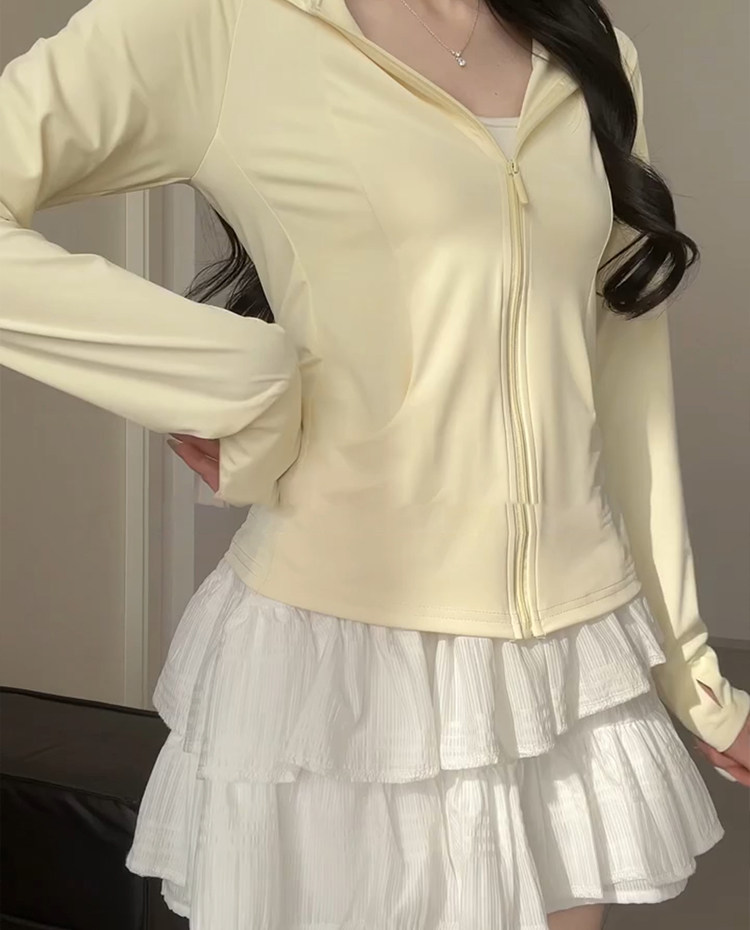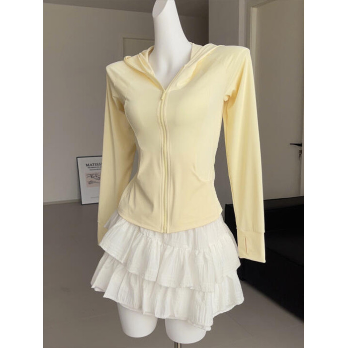 黃色修身防曬衣女2025新款夏季冰絲薄款緊身顯瘦短款運動瑜珈外套