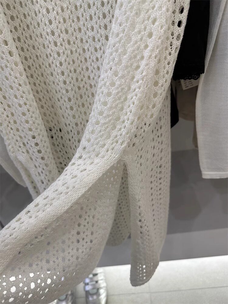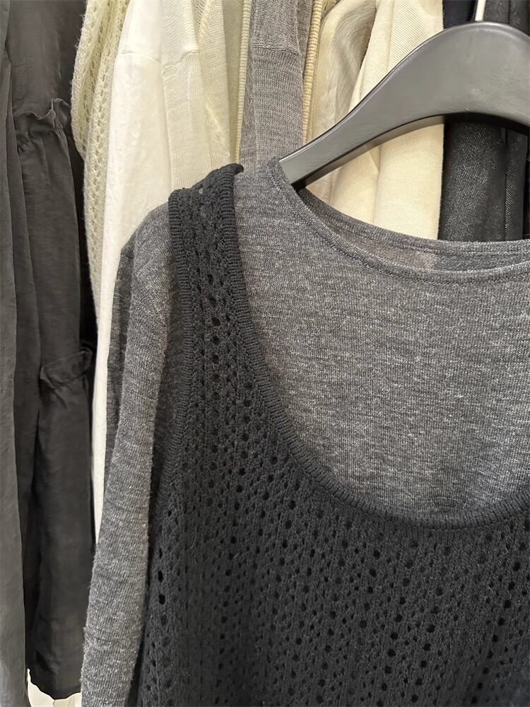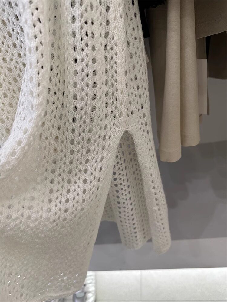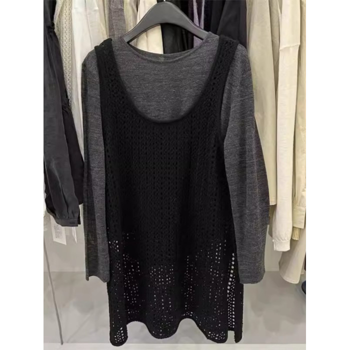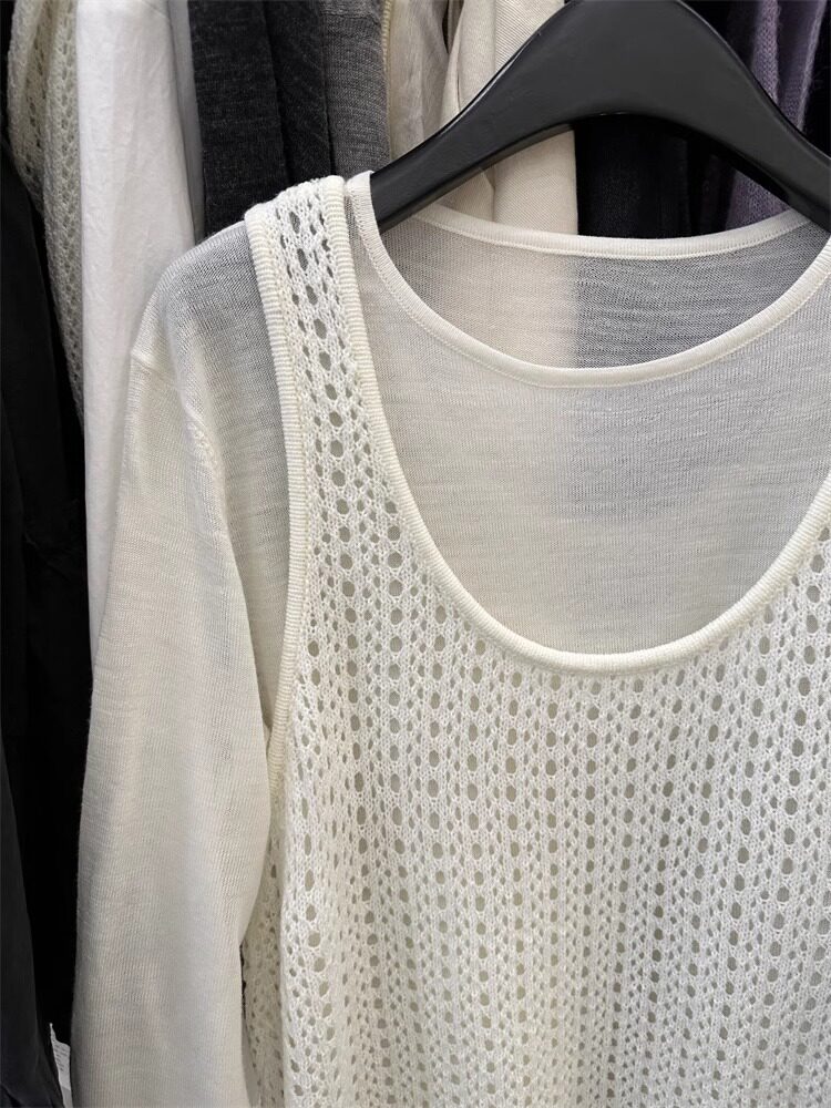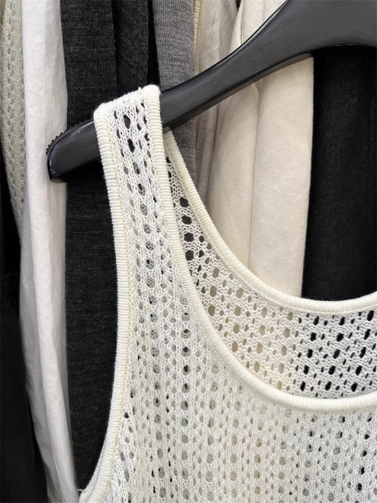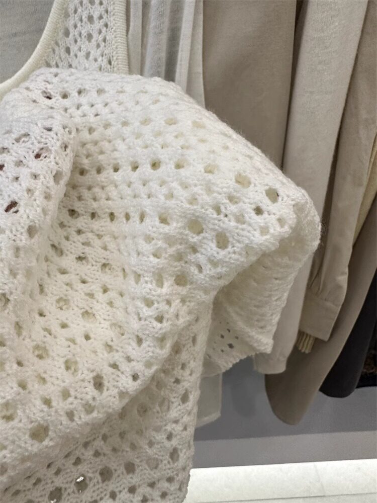 韓國東大門新款白色u領鏤空針織背心裙女春季中長款曡穿罩衫上衣