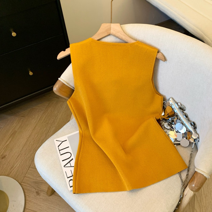 專櫃撤廻剪標老錢風無袖西裝馬甲女秋季新款氣質時髦修身顯瘦上衣