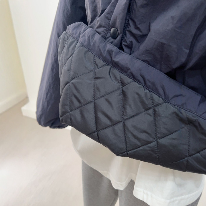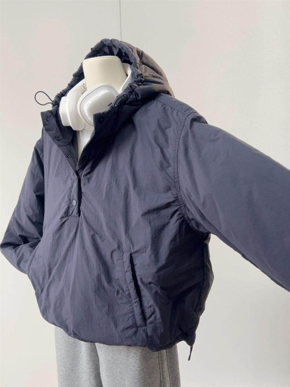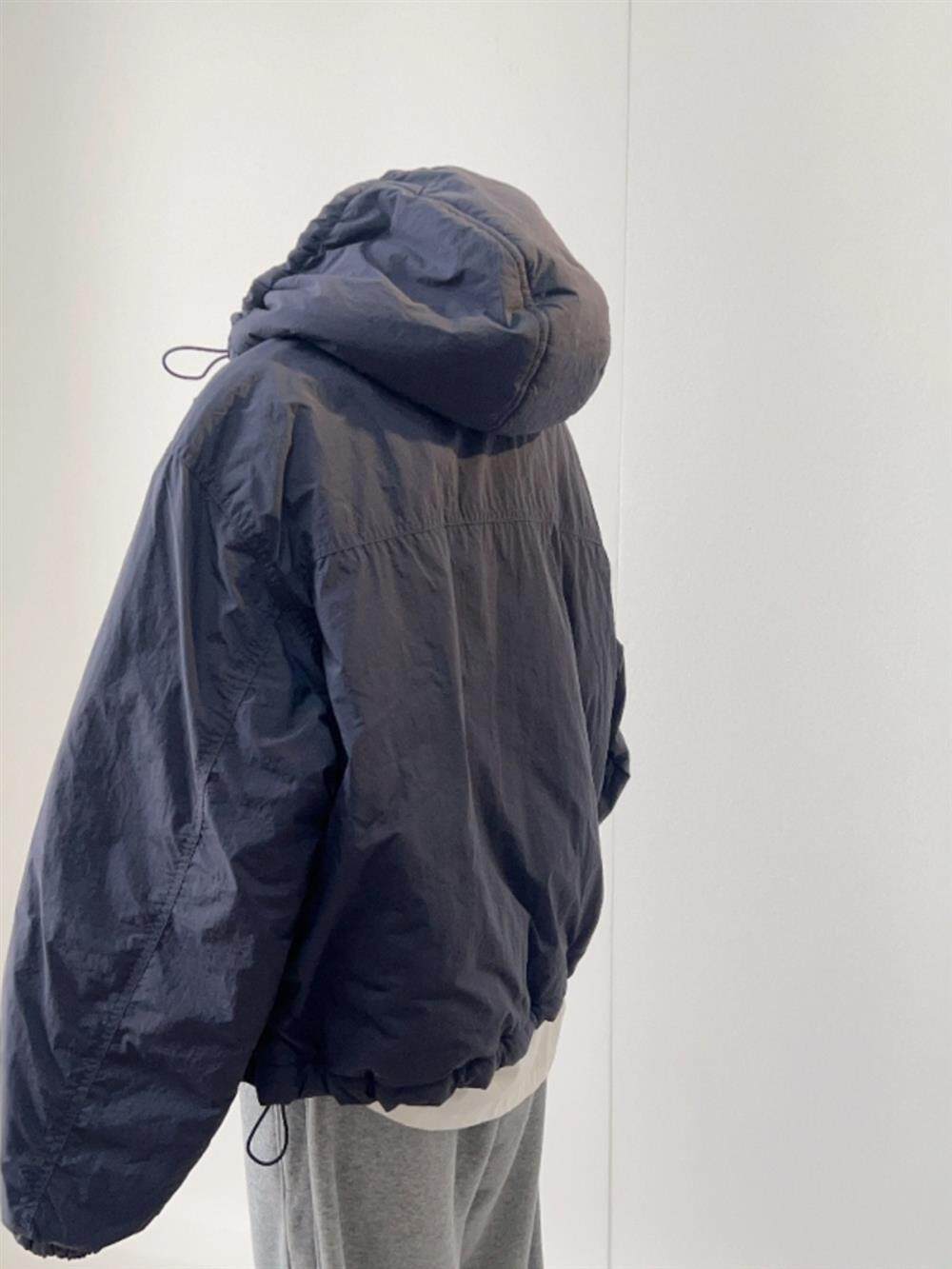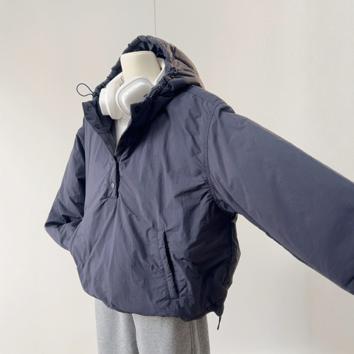 原色CHAO級推薦!韓系藏藍色連帽棉服女2024新款寬鬆百搭沖鋒衣