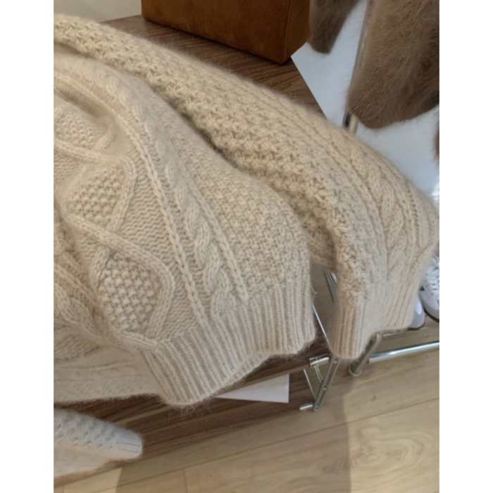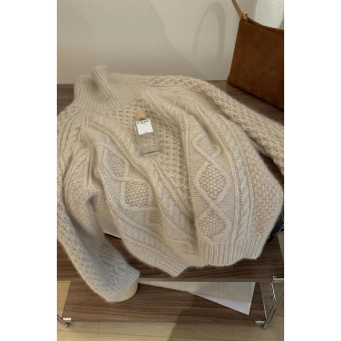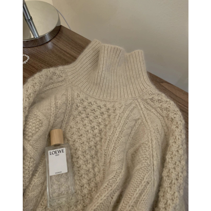 法式高領粗毛線浣熊絨毛衣女2024高級感麻花針織上衣羊毛打底衫冬