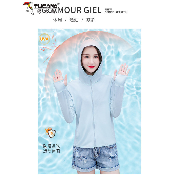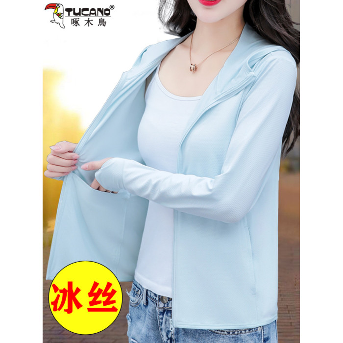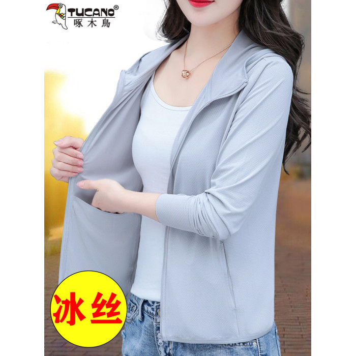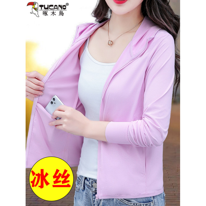 啄木鳥夏季冰絲防曬衣女2025新款薄款透氣戶外防紫外線涼感防曬服