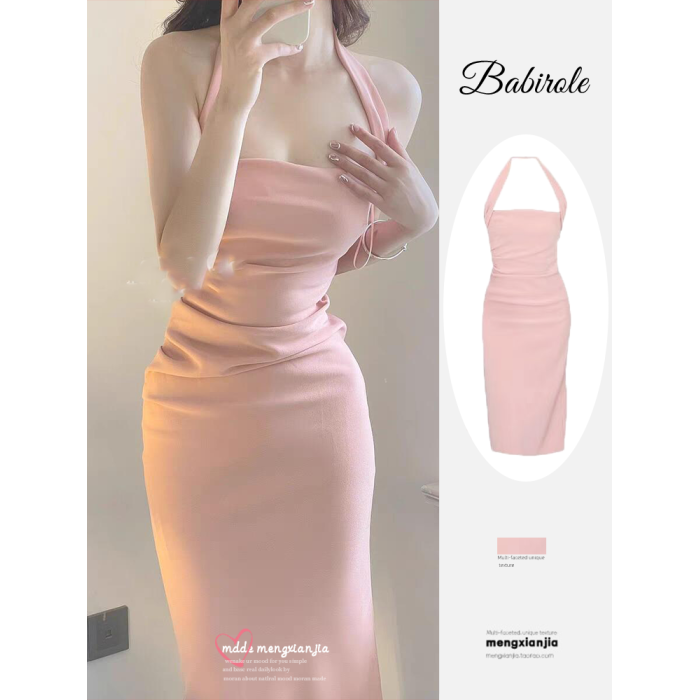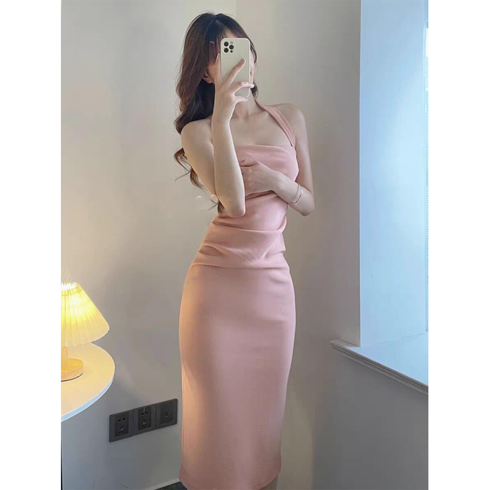 歐洲站高級掛脖吊帶連衣裙2025新款女夏季收腰修身性感抹胸包臀裙