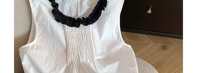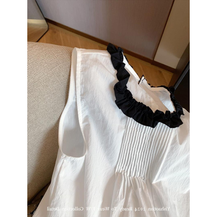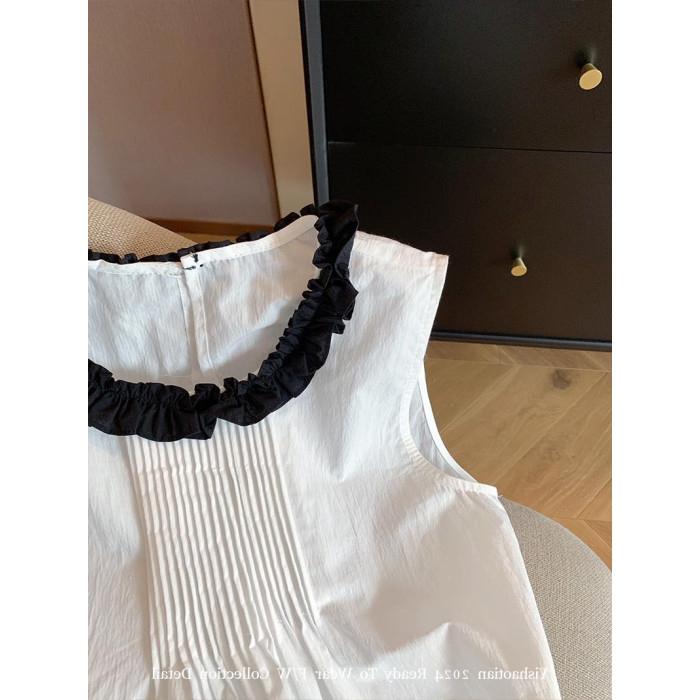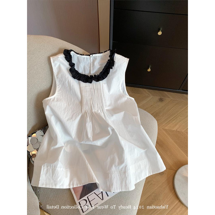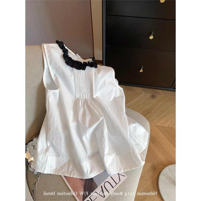 專櫃撤廻剪標法式壓褶荷葉邊無袖襯衫女早秋新款時尚百搭氣質背心