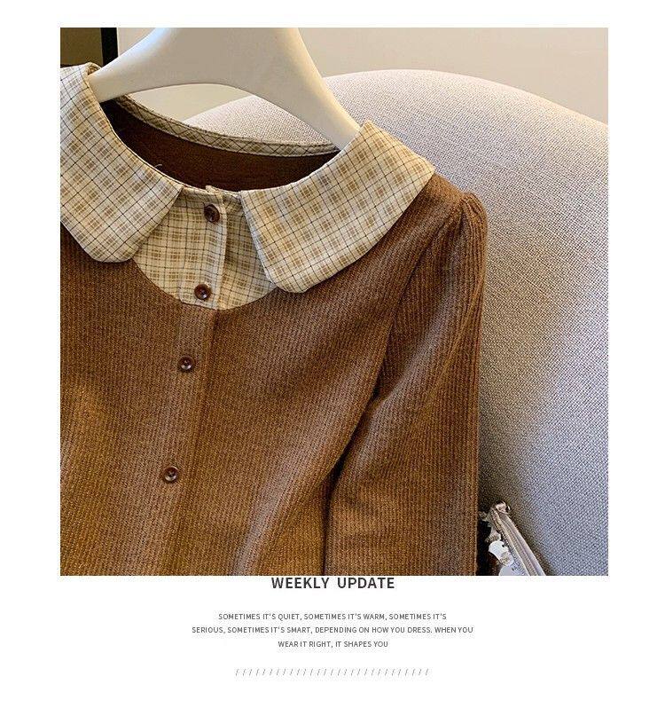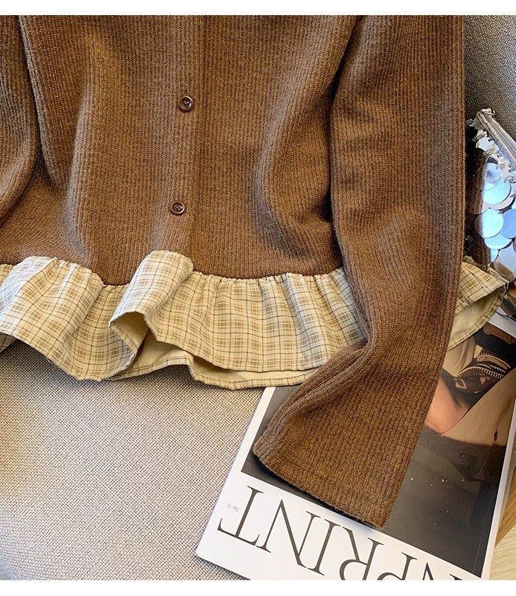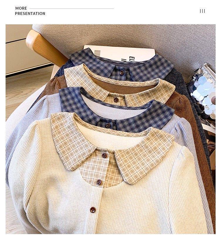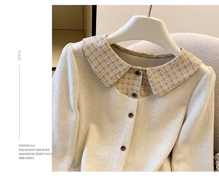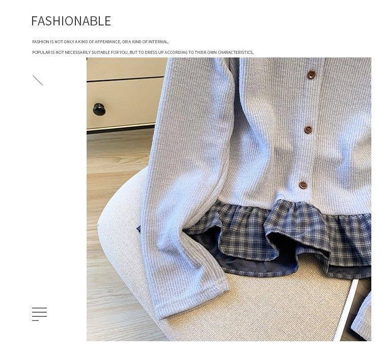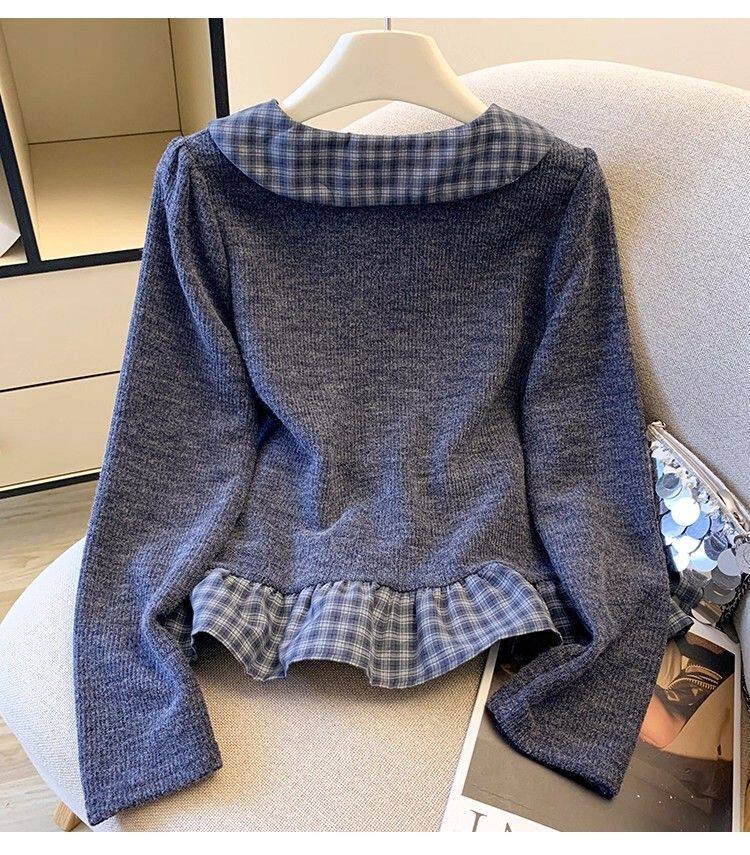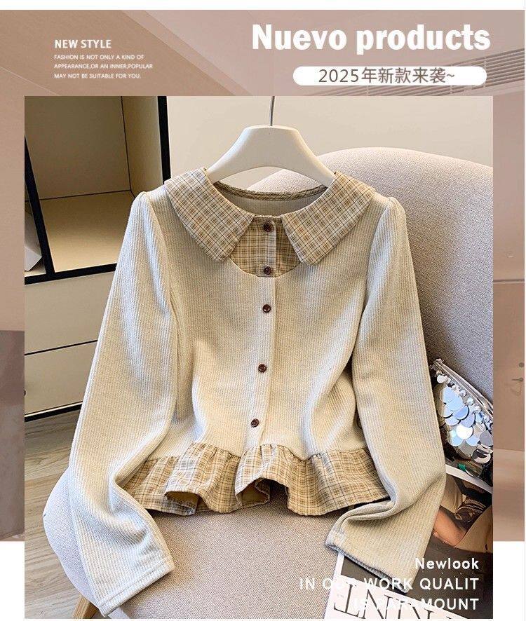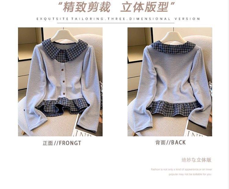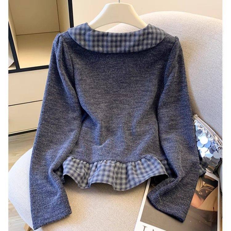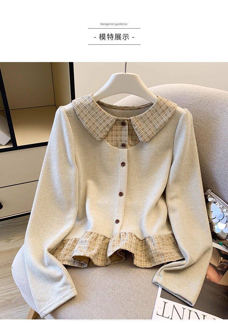 法式格子荷葉邊襯衫上衣女秋冬氣質好看寬鬆顯瘦設計感假兩件長袖