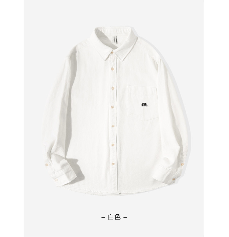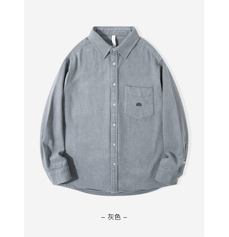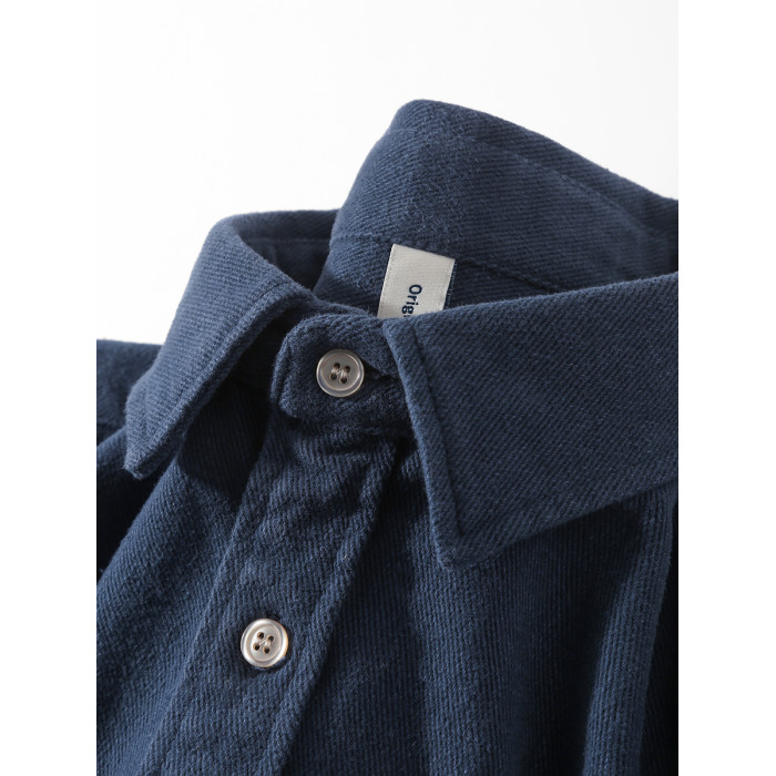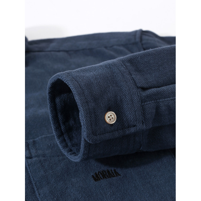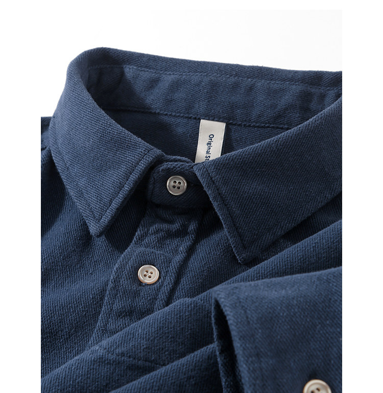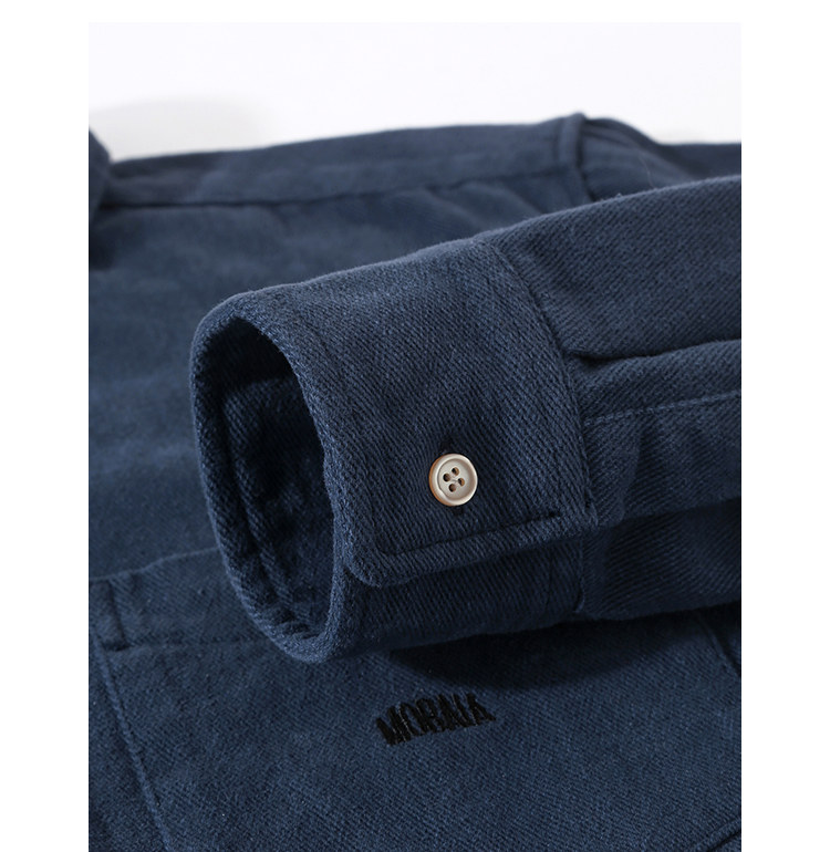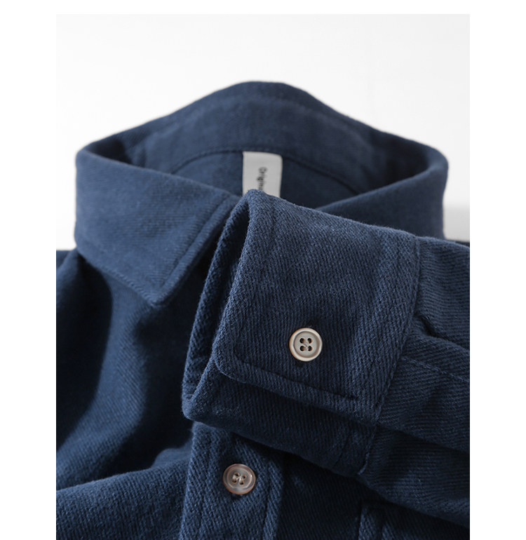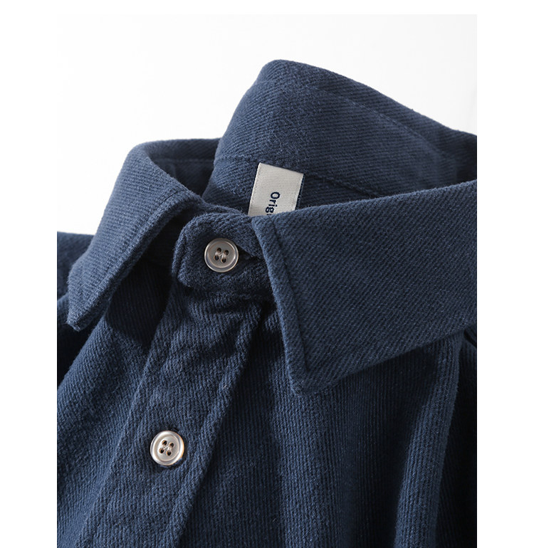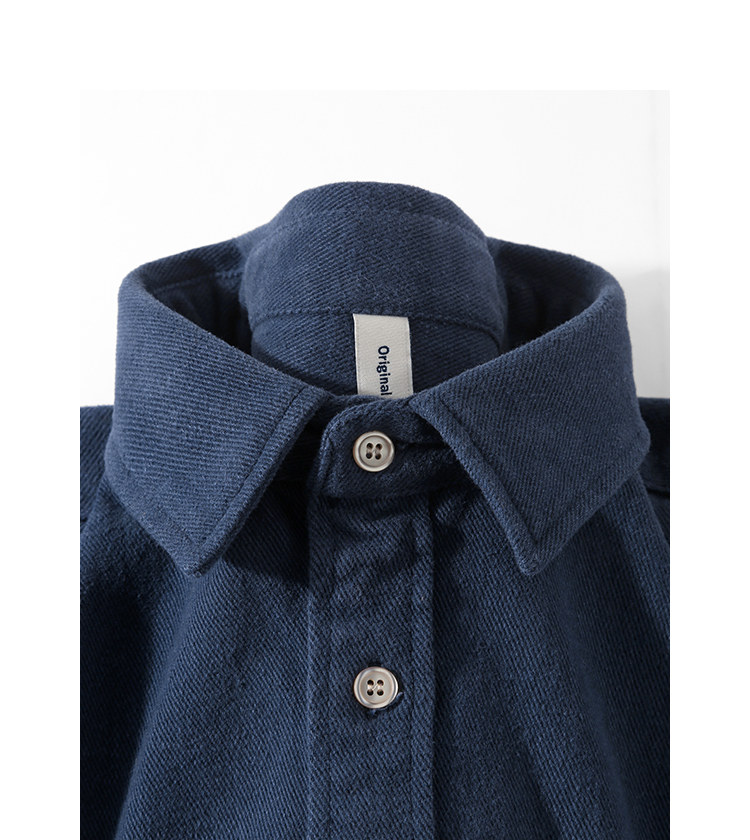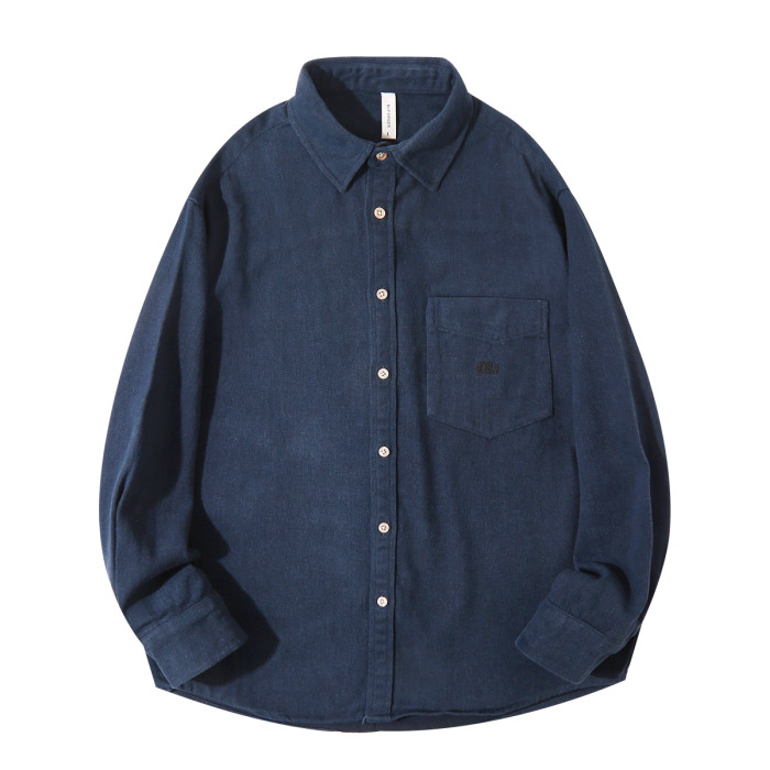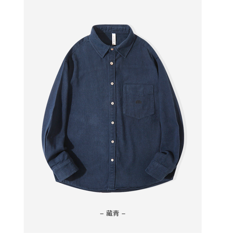 日系復古藏青色!重磅純棉設計感美式刺綉長袖襯衫女簡約休閒上衣