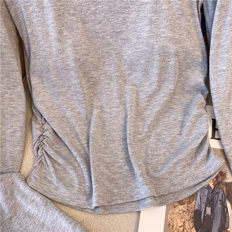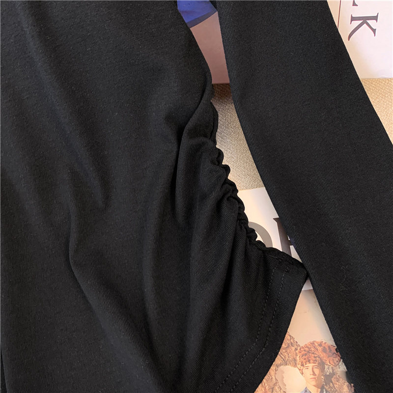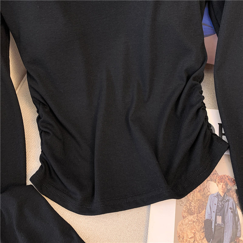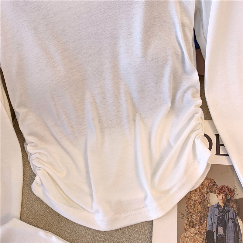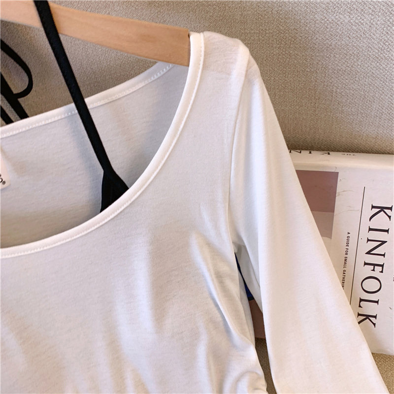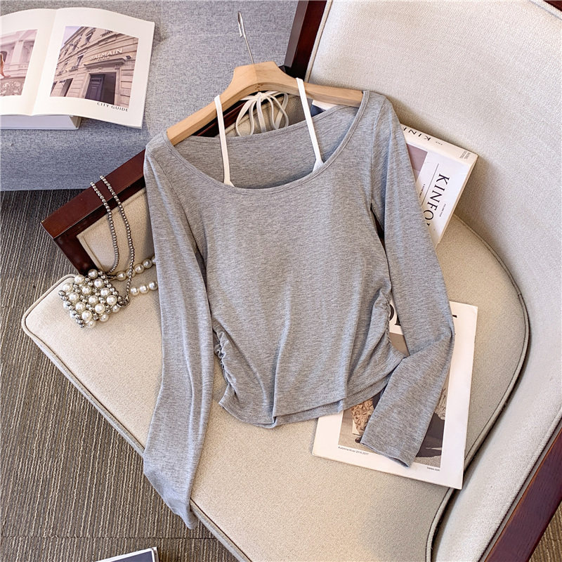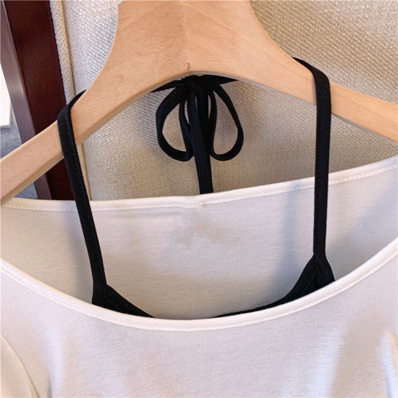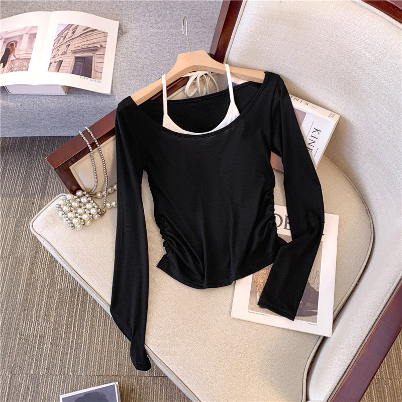 專櫃撤廻剪標甜辣妹掛脖長袖T恤女2025新款假兩件帶胸墊收腰上衣
