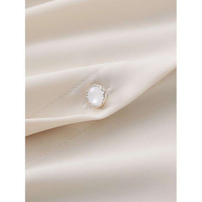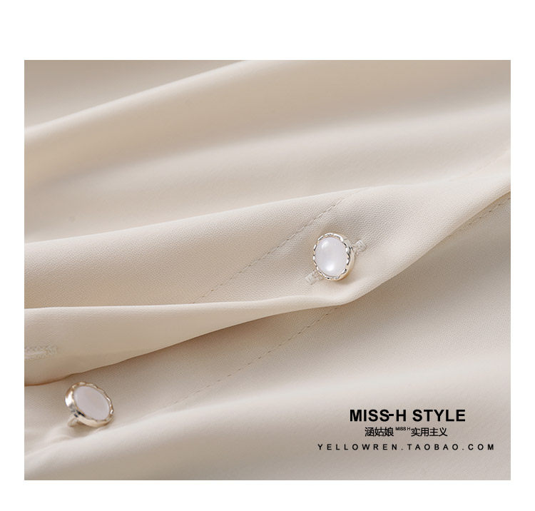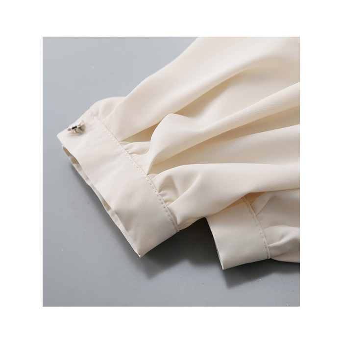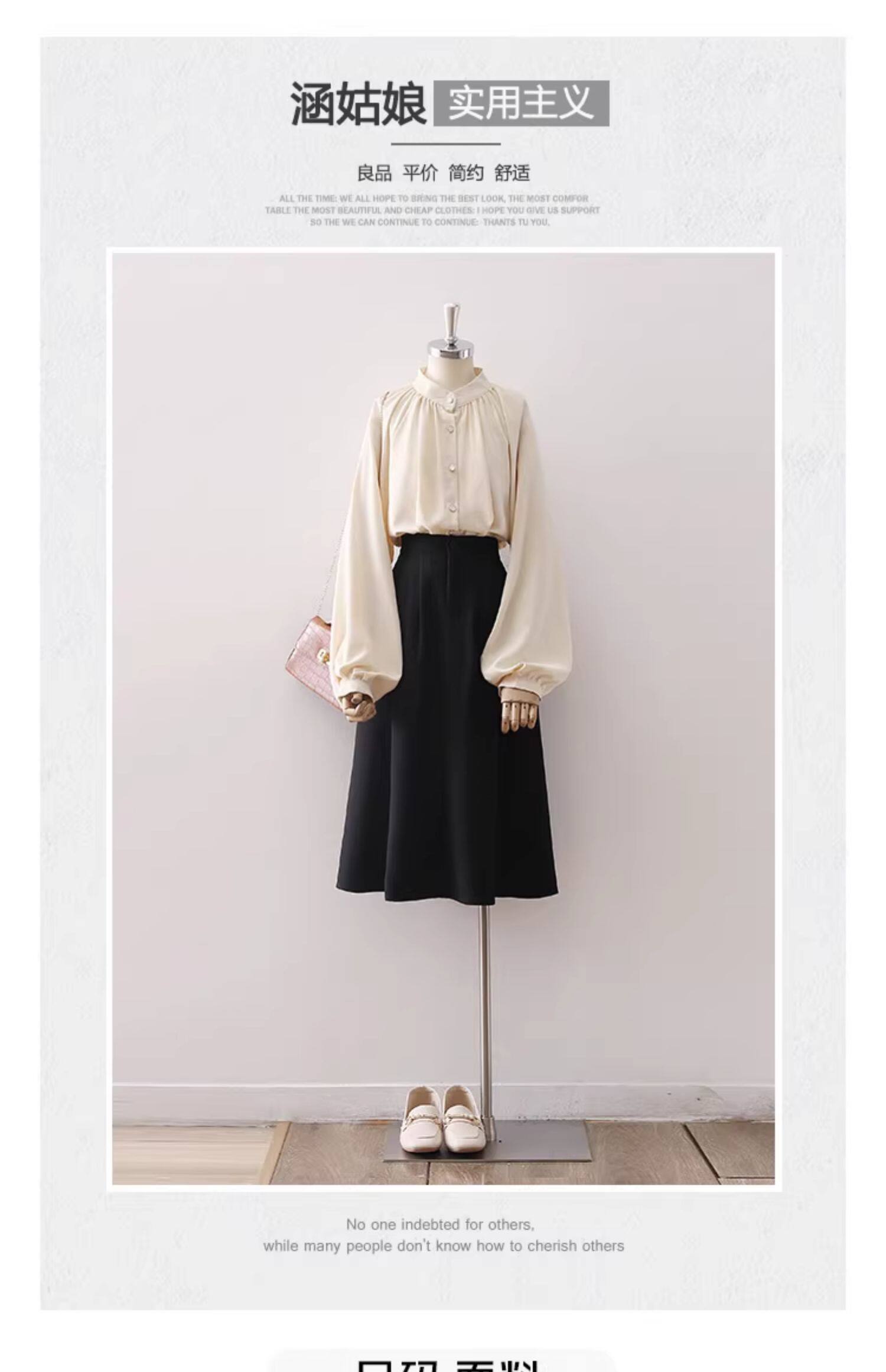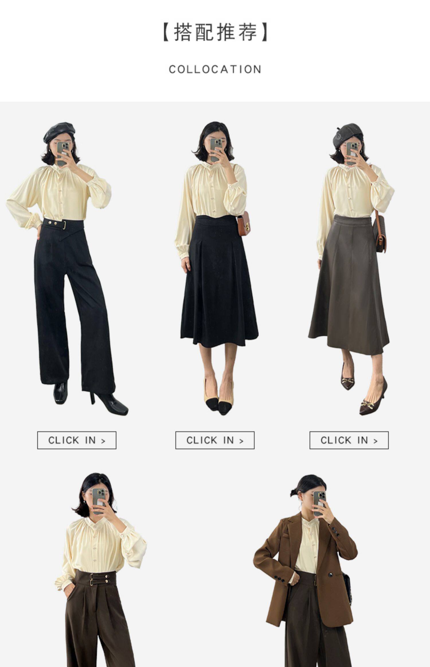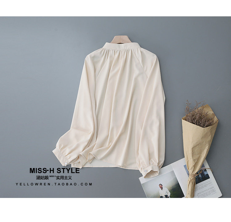 復古法式杏色立領燈籠袖緞面襯衫女2025春秋新款垂墜感小衆上衣