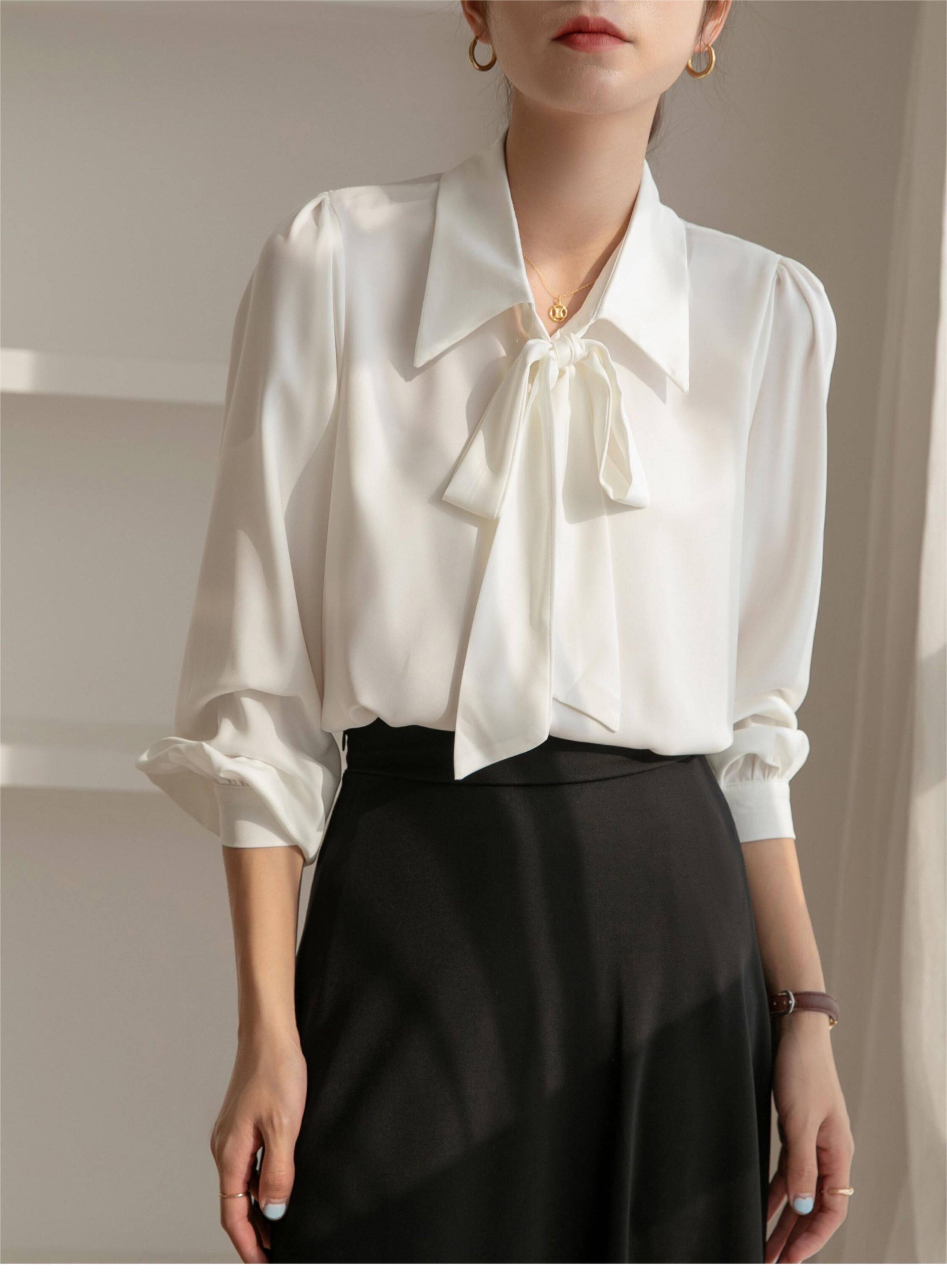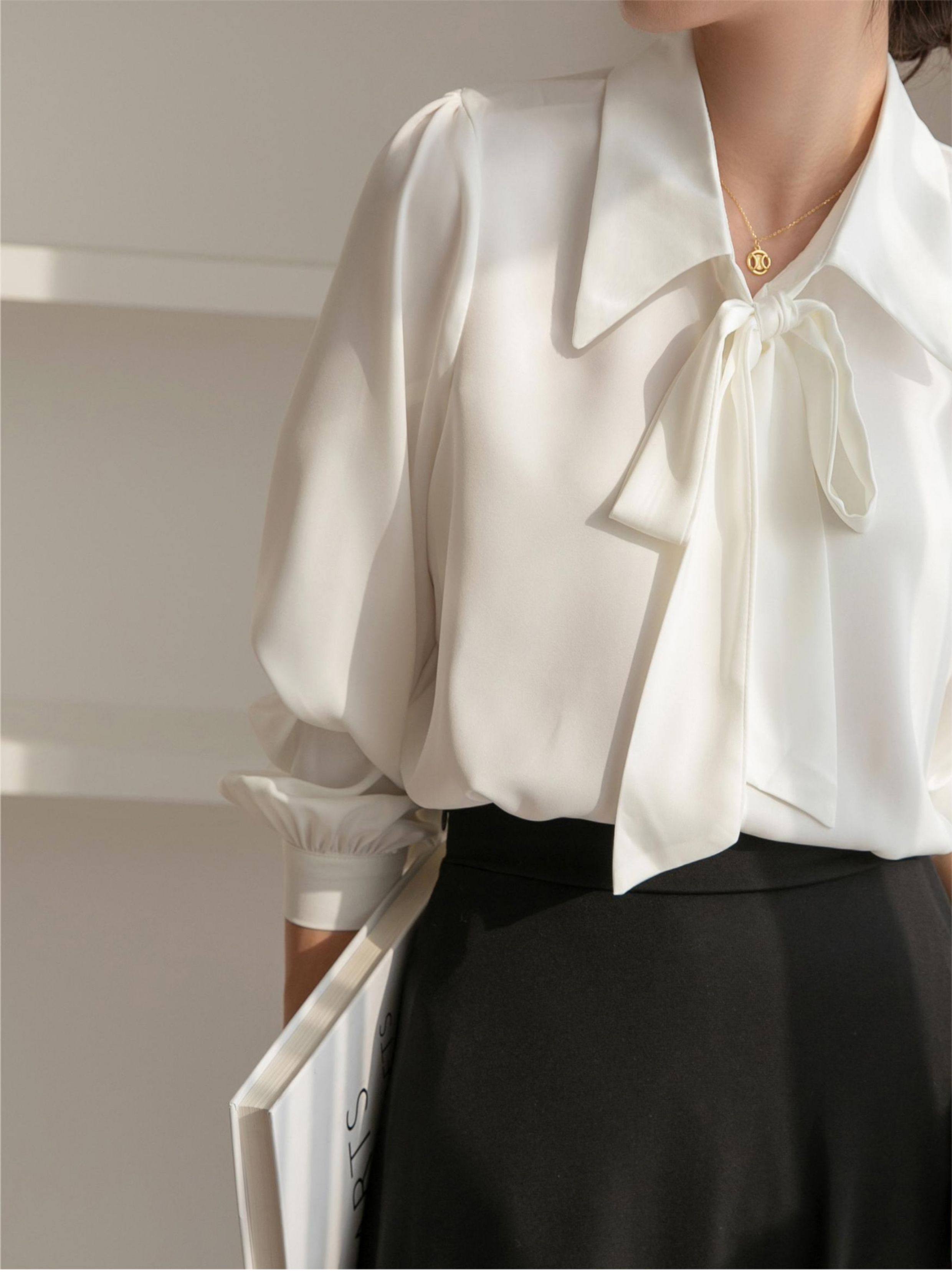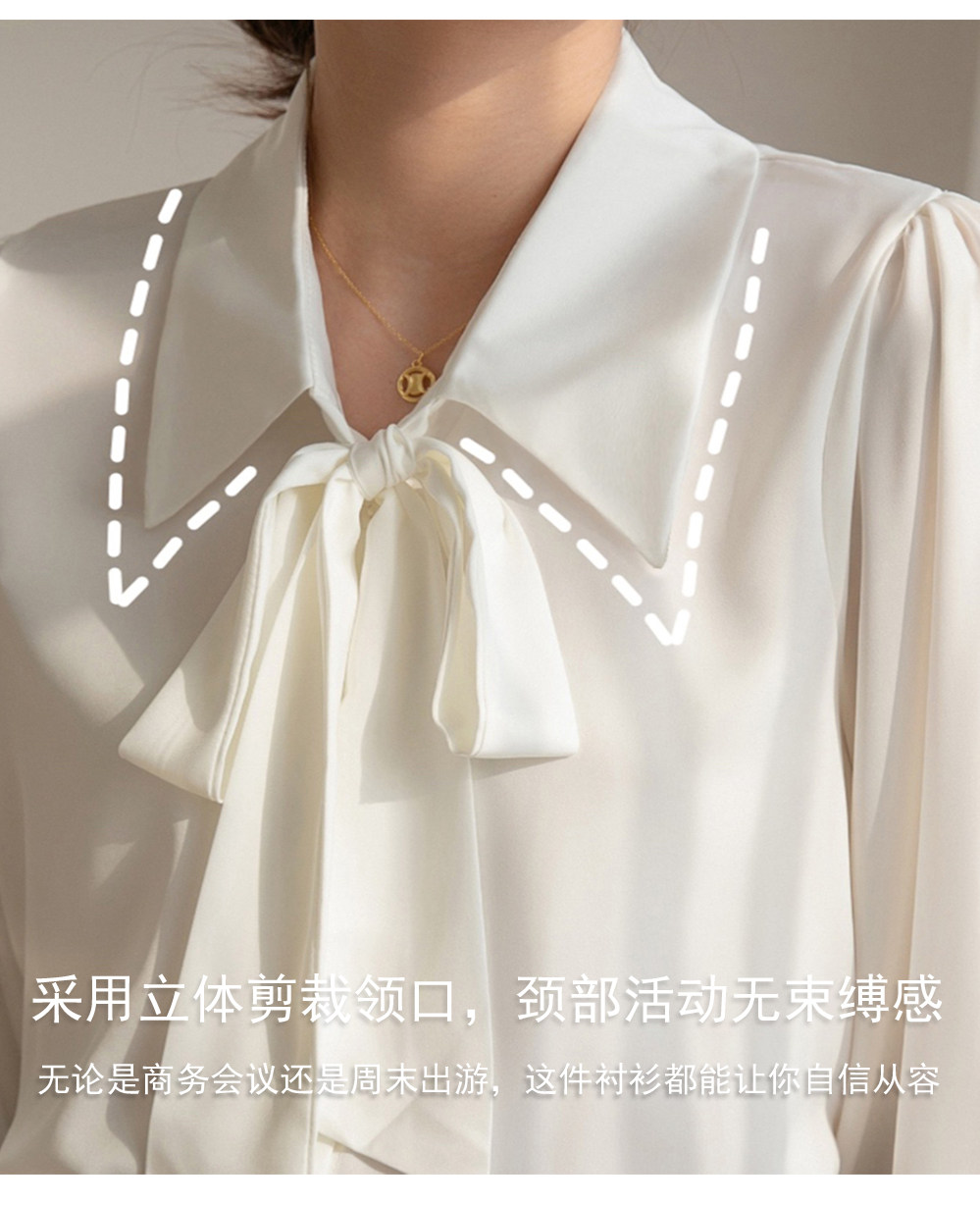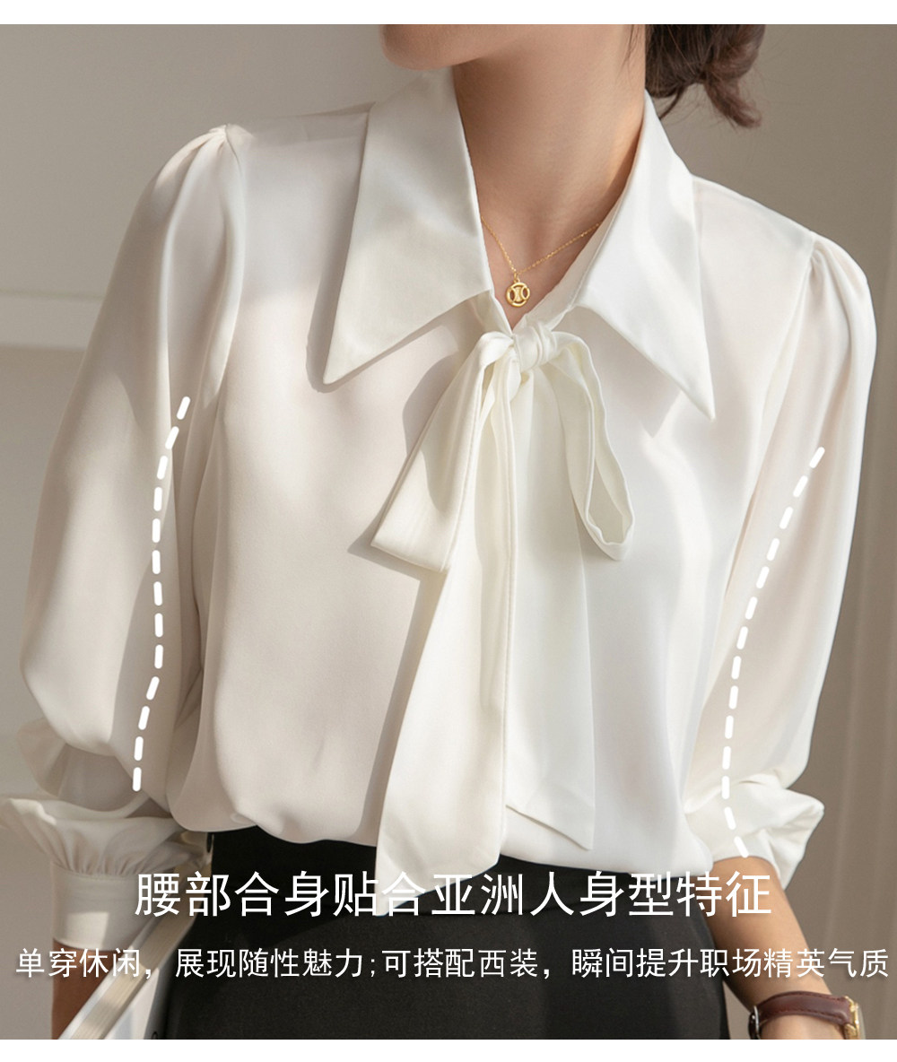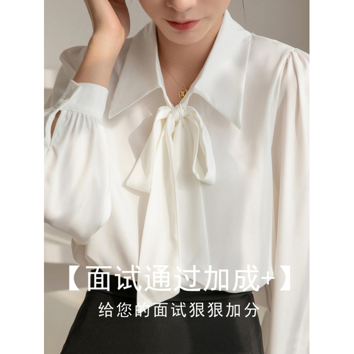 雪紡蝴蝶結襯衫女輕職場高級感長袖職業正裝面試白色襯衣上衣通勤