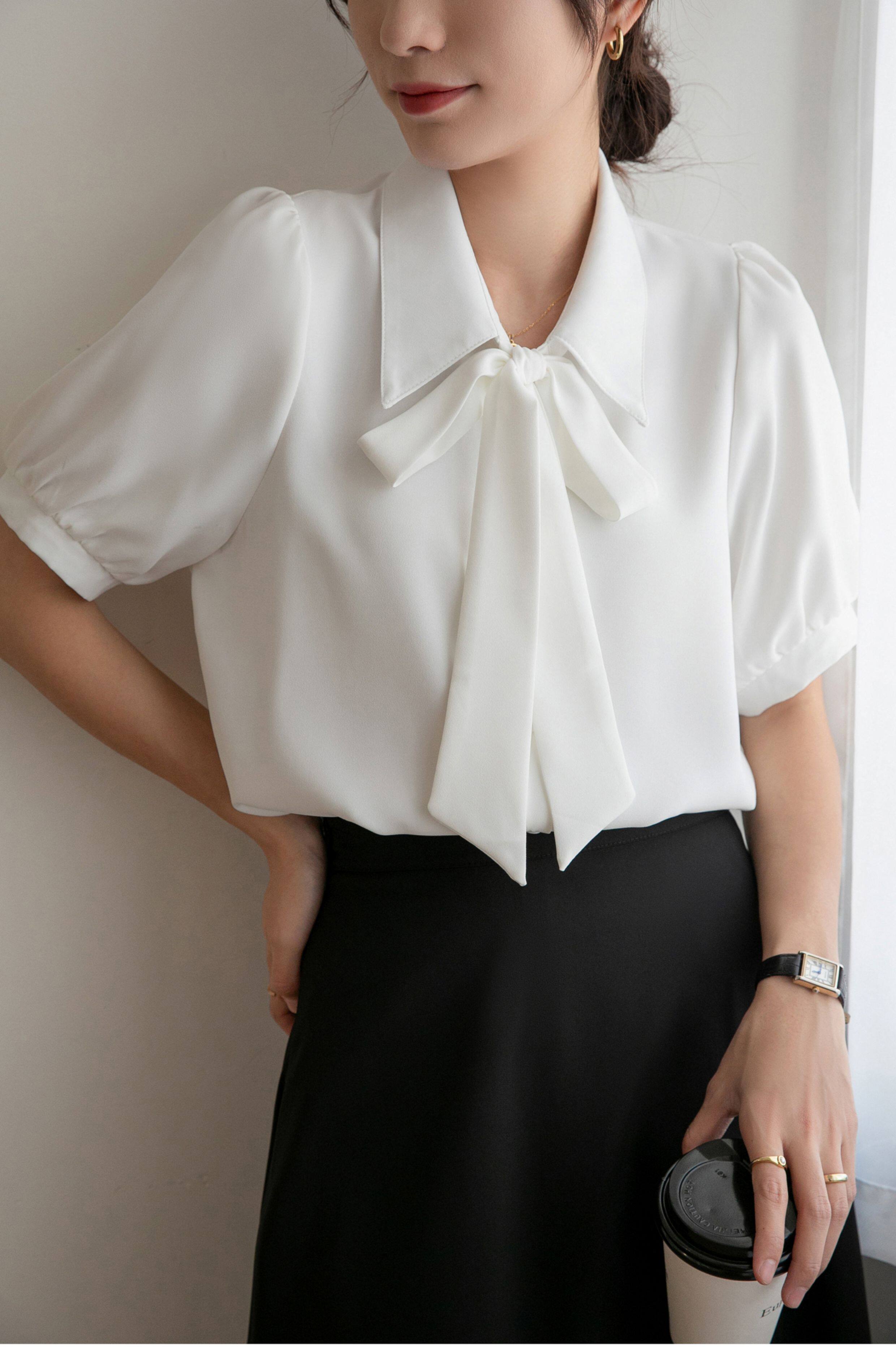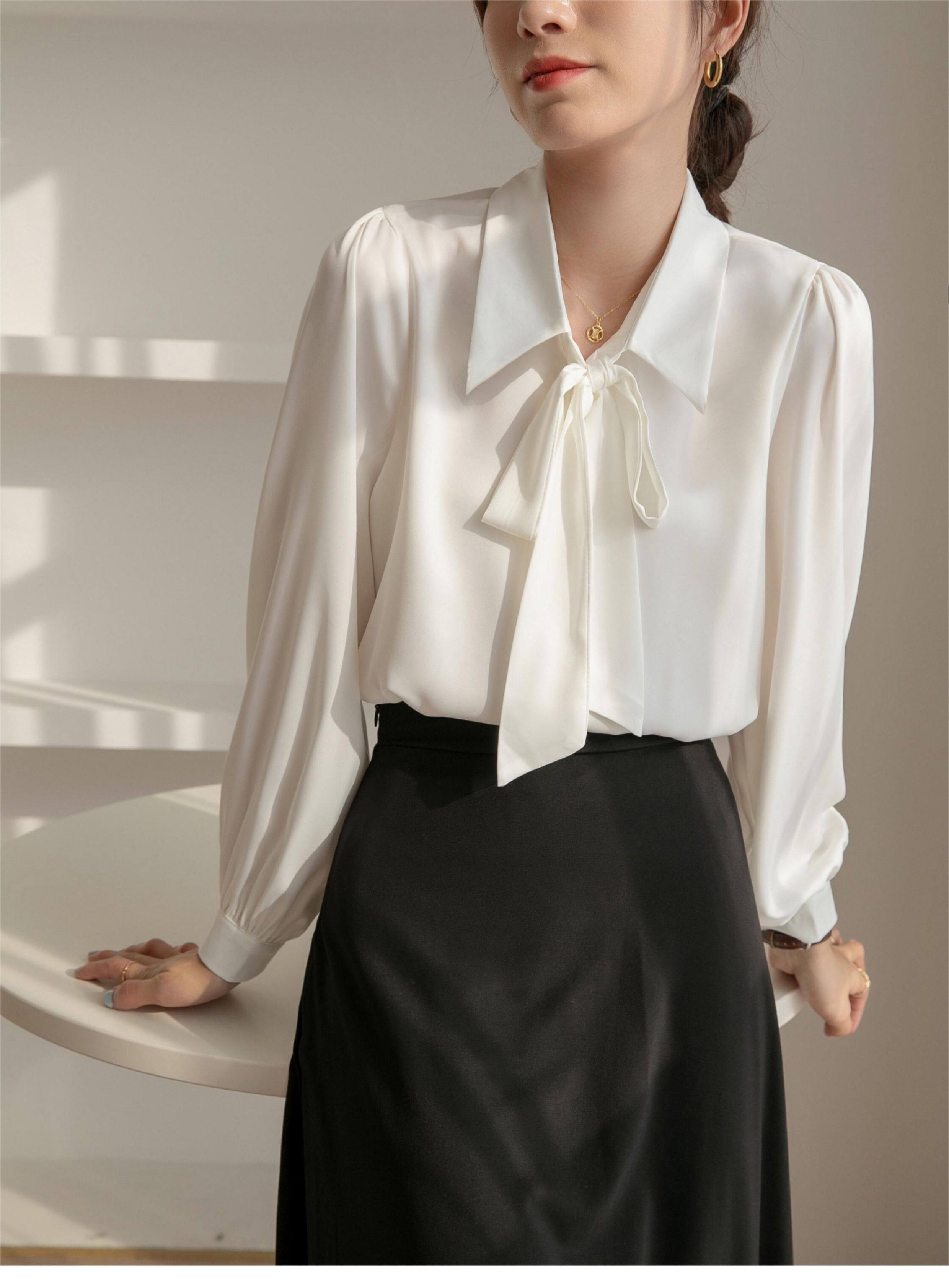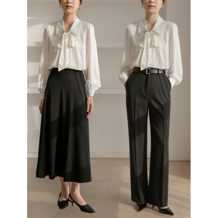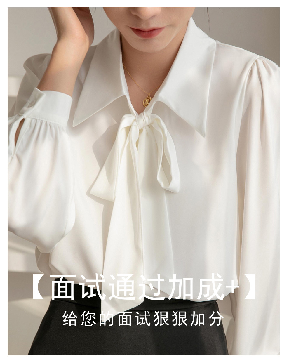 雪紡蝴蝶結襯衫女輕職場高級感長袖職業正裝面試白色襯衣上衣通勤