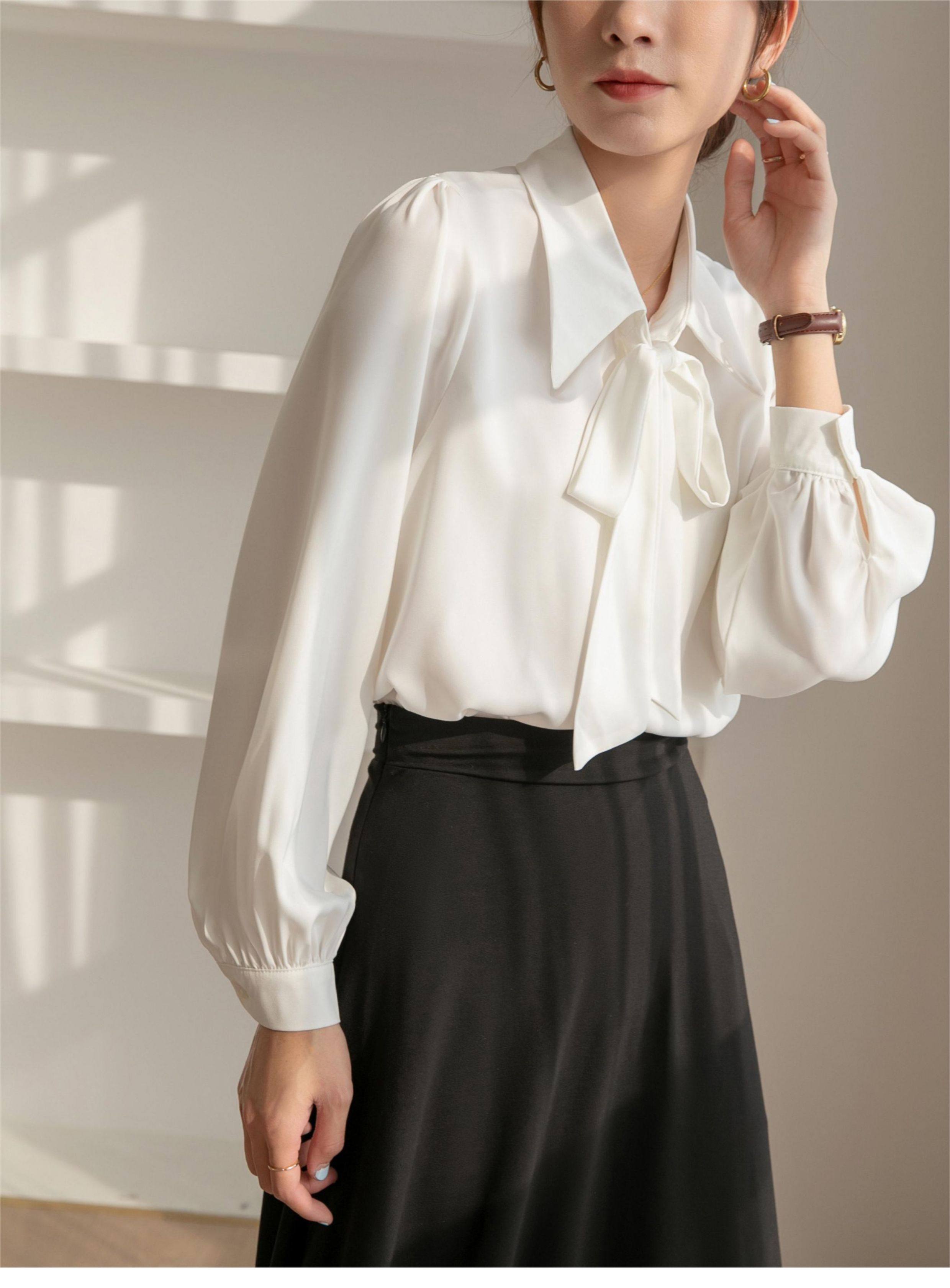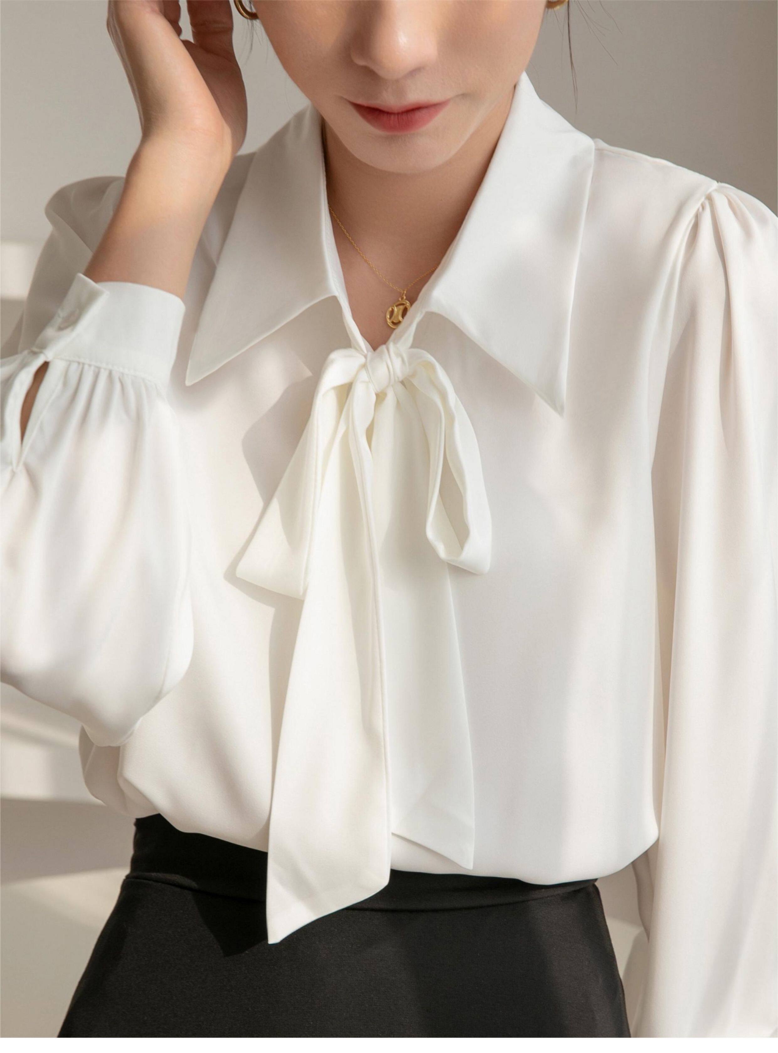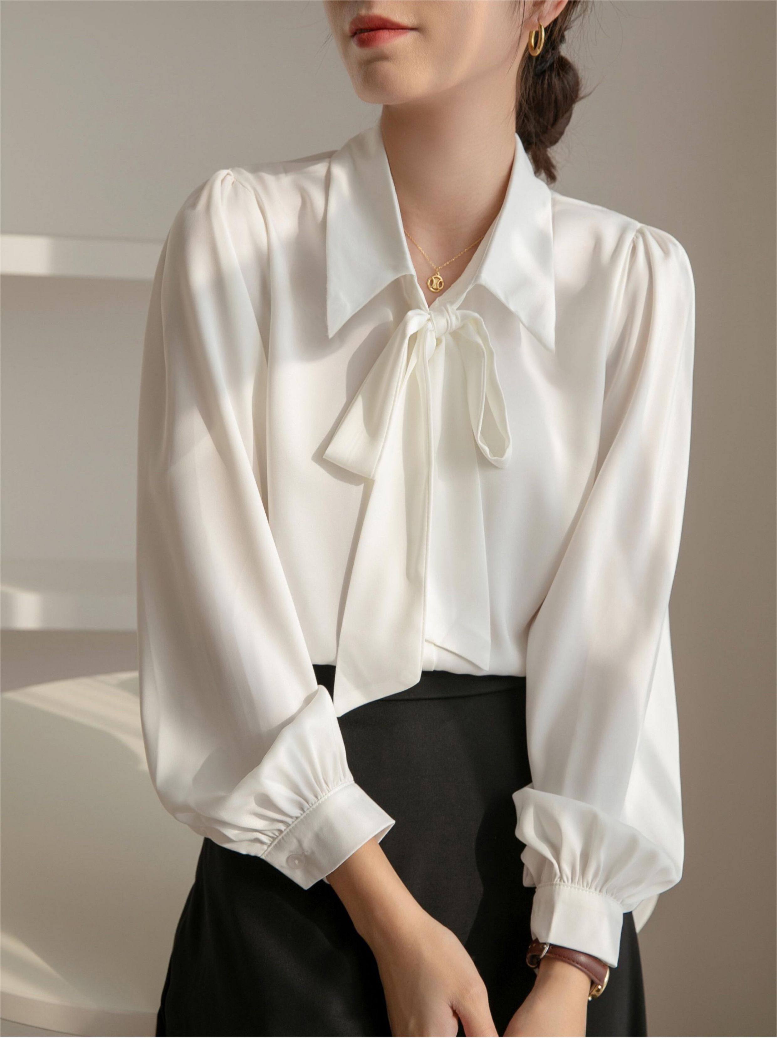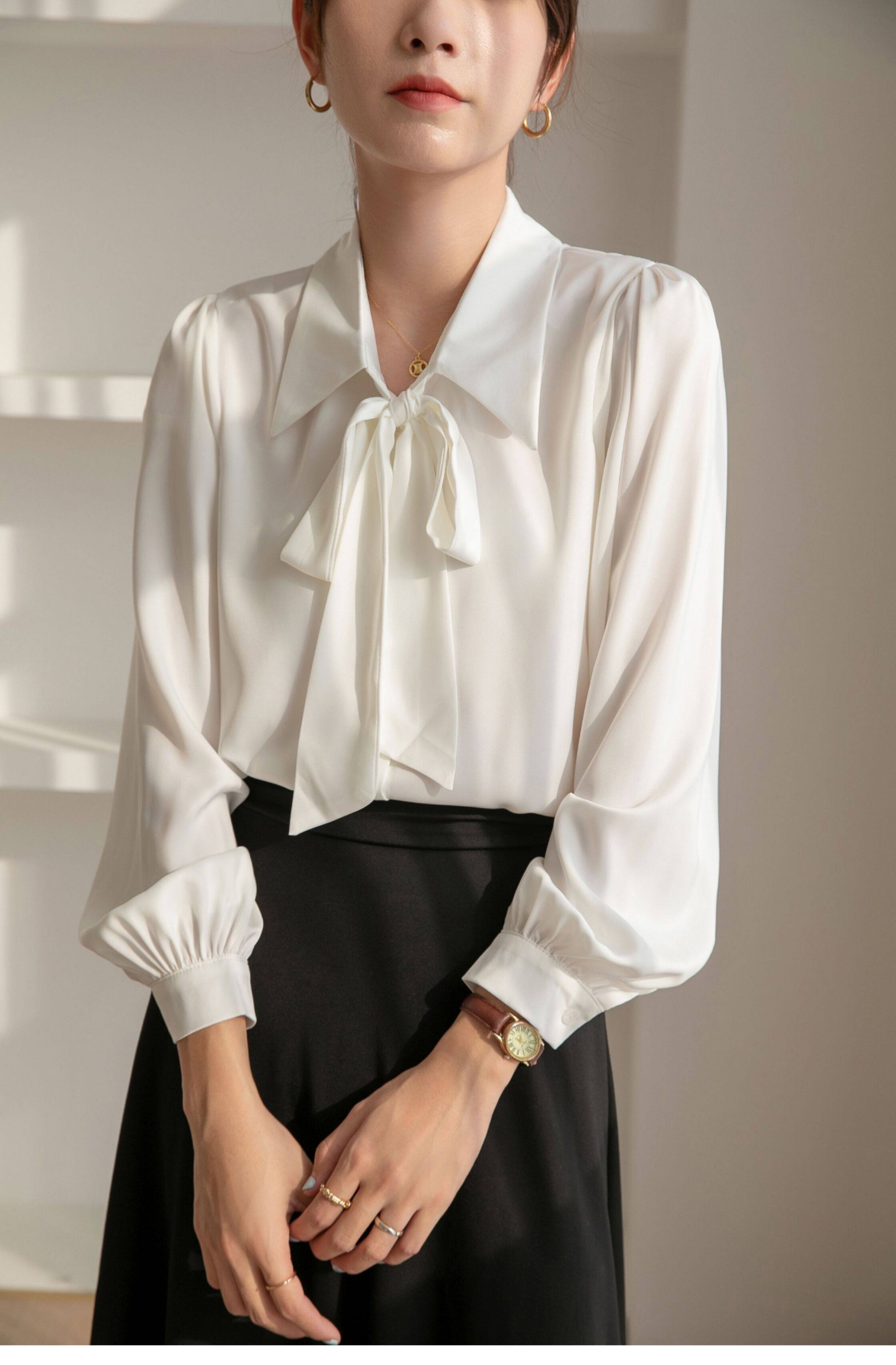 雪紡蝴蝶結襯衫女輕職場高級感長袖職業正裝面試白色襯衣上衣通勤